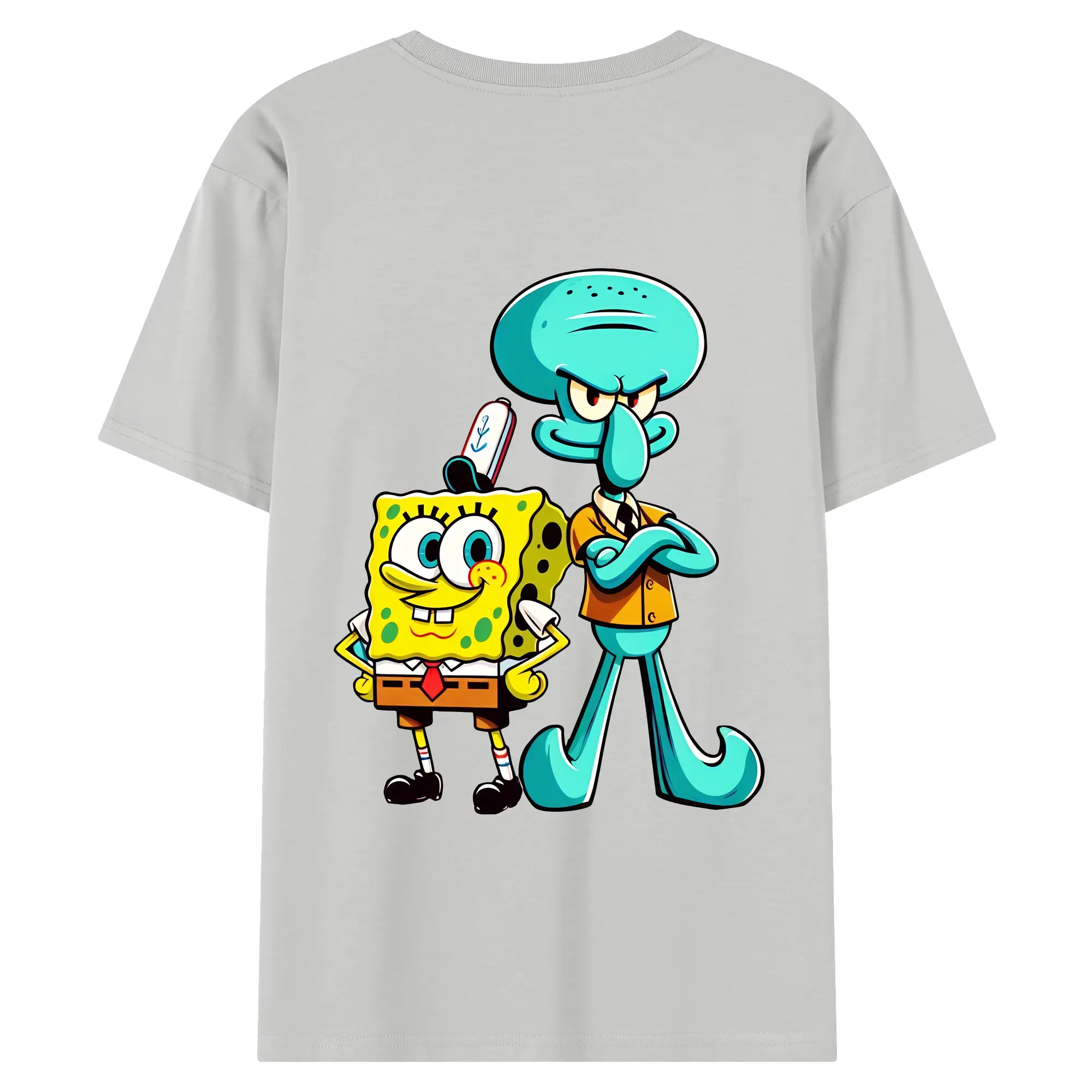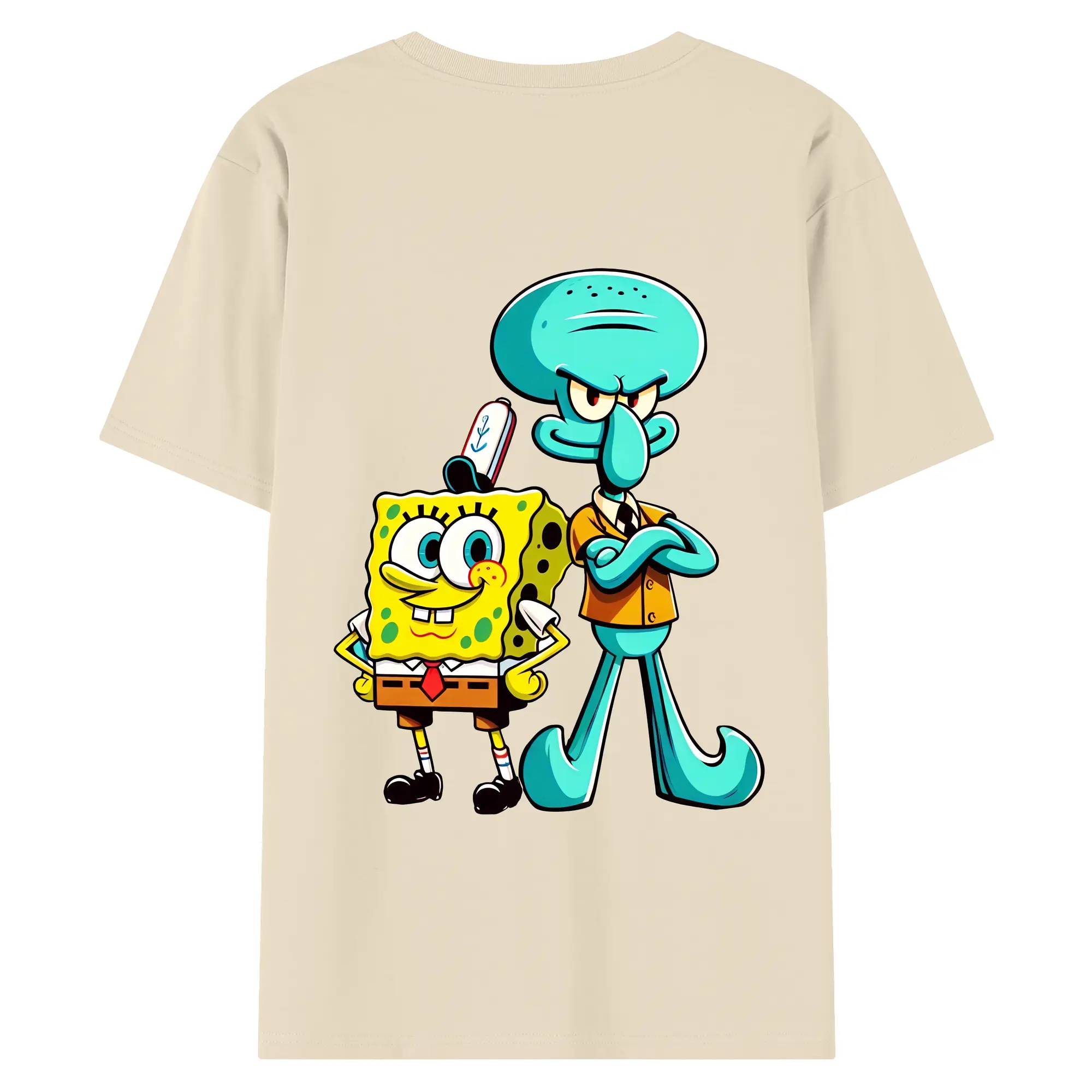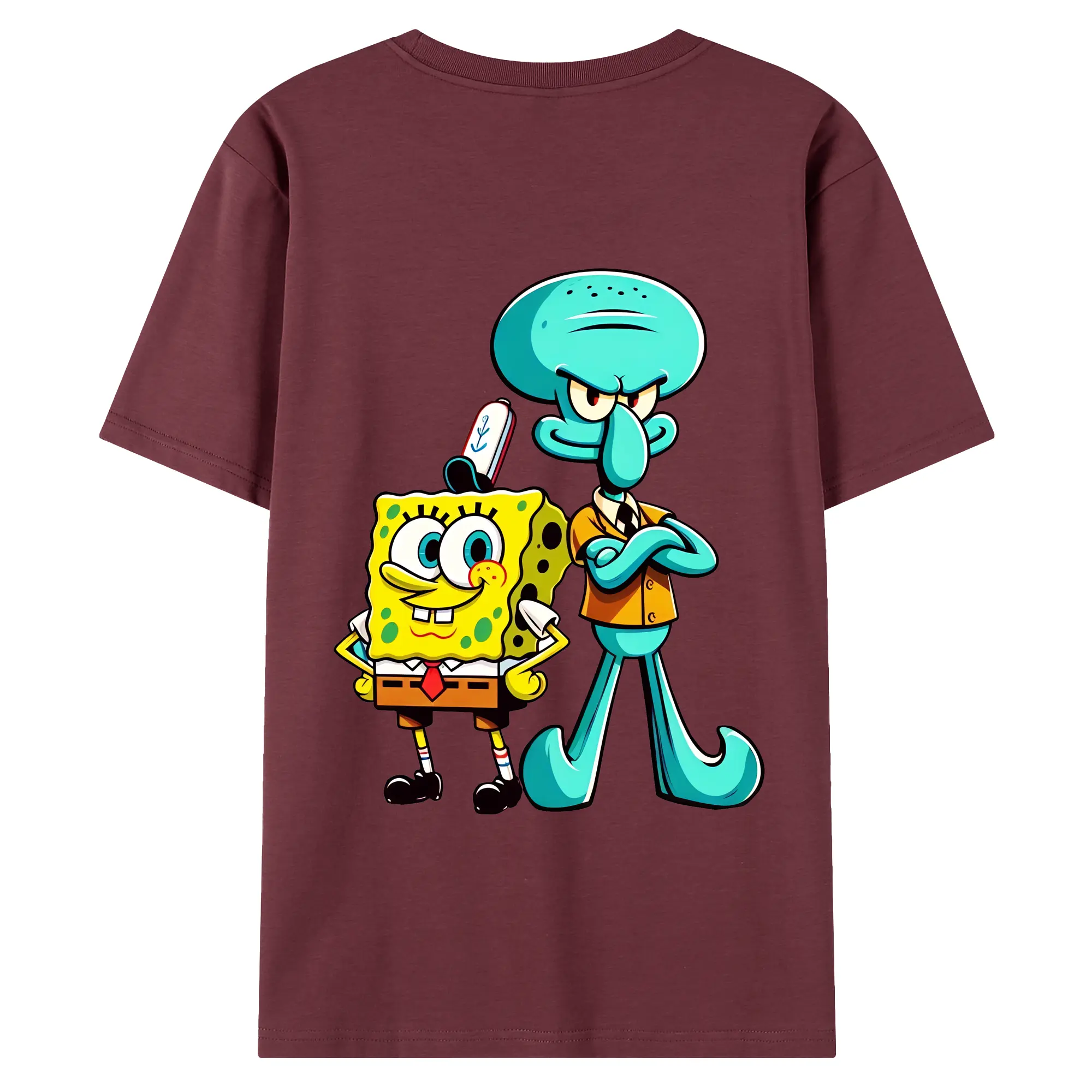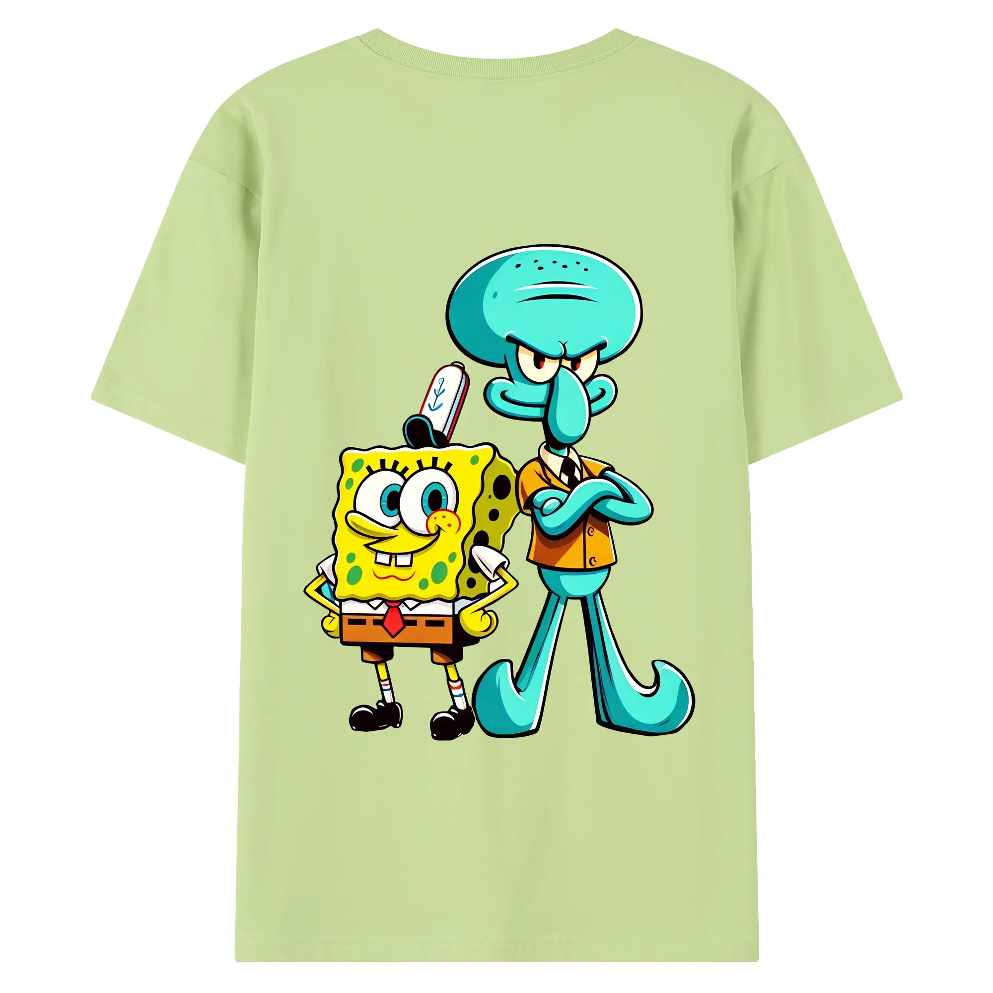 スポンジボブ グッズ イカルド - 綿100% ヴィンテージ風 半袖Tシャツ ・ 背面プリント ・ 柔らか肌触り ・ 通気性 快適 ・ スポーツ カジュアル 外出用