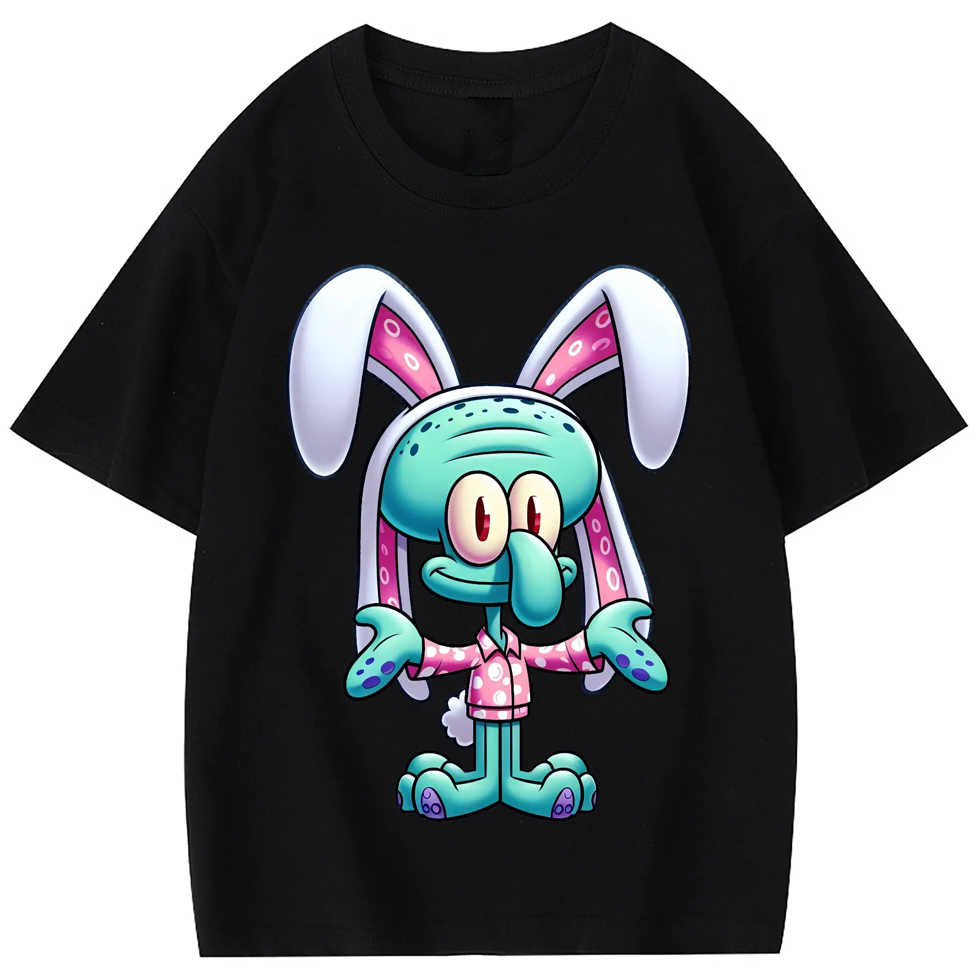 スポンジボブ グッズ イカルド - 綿100% 半袖Tシャツ ・ バックプリント ・ 快適 通気性 ・ 日常使い 散歩 スポーツ用