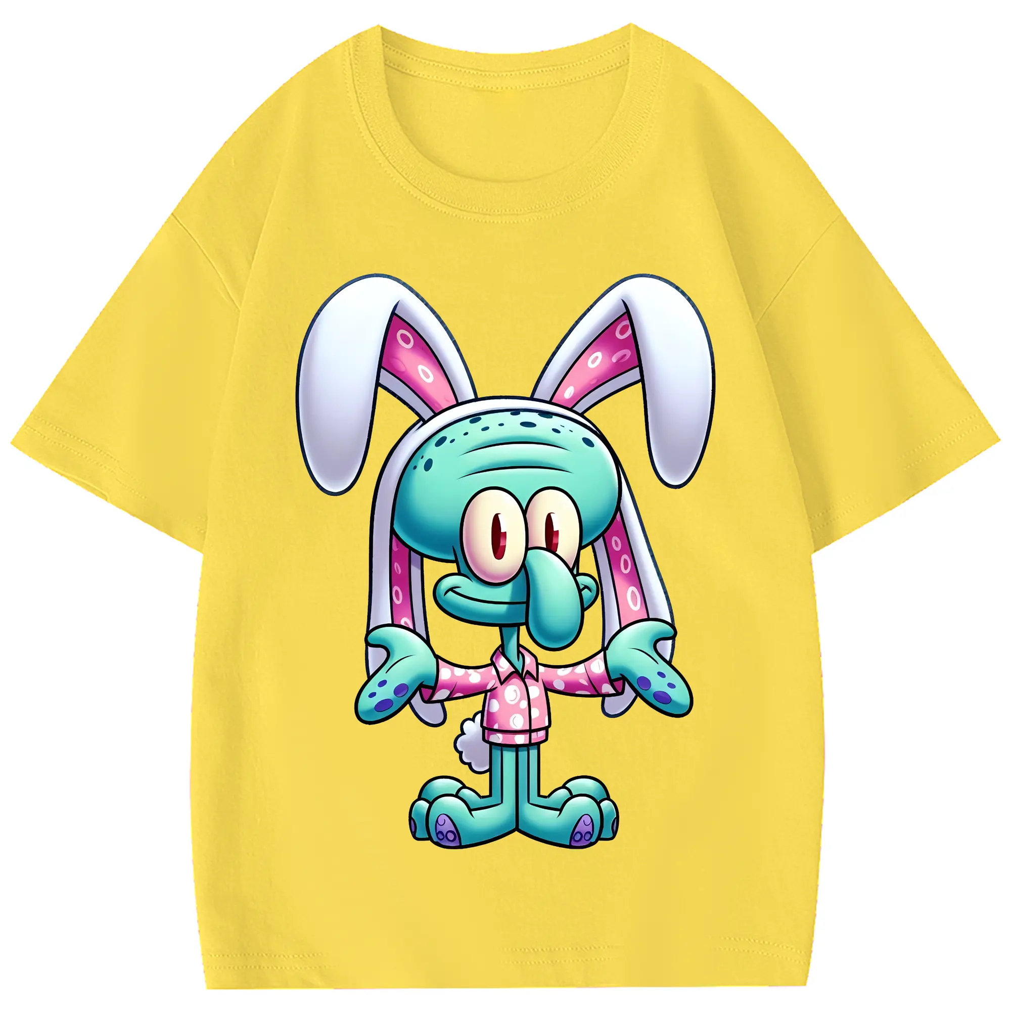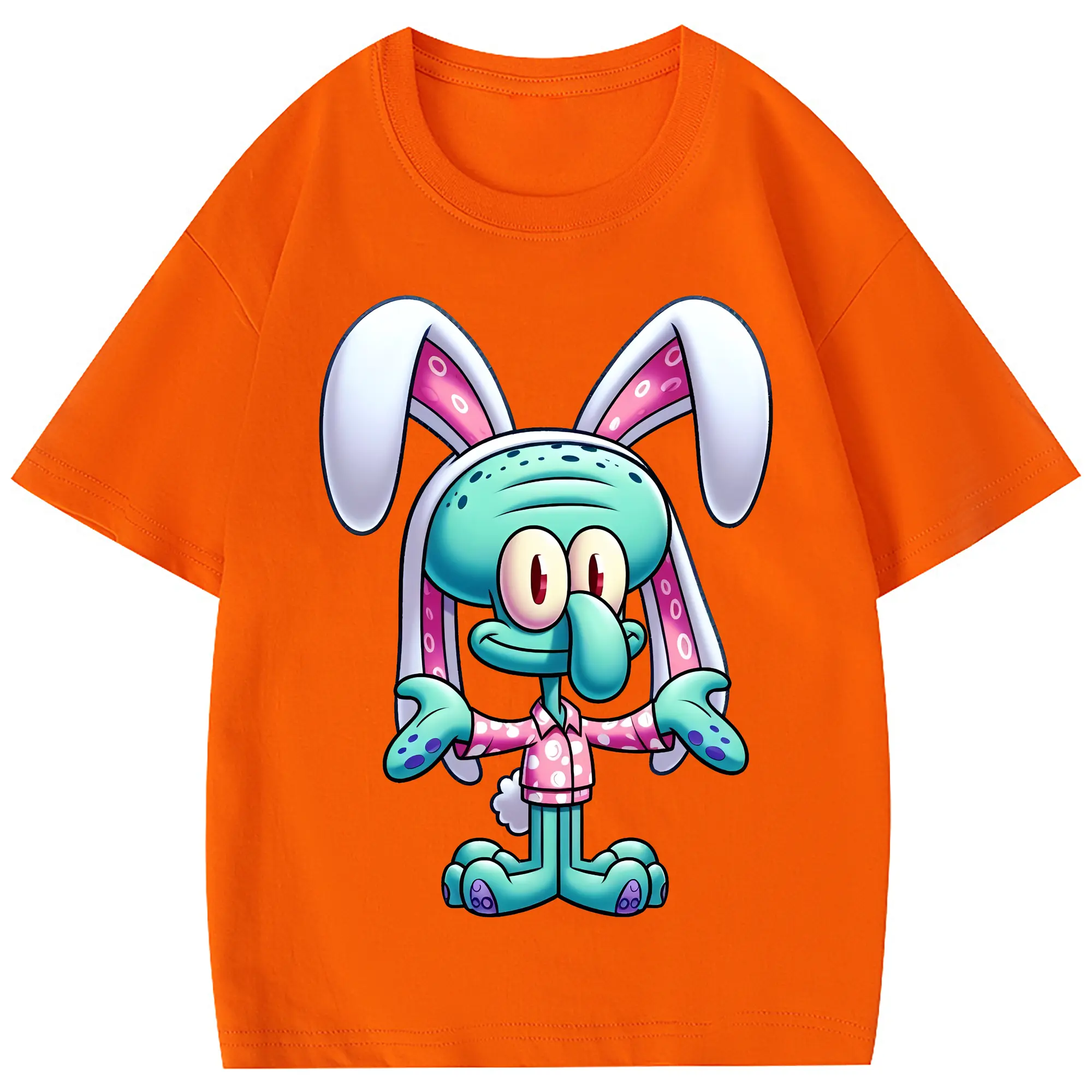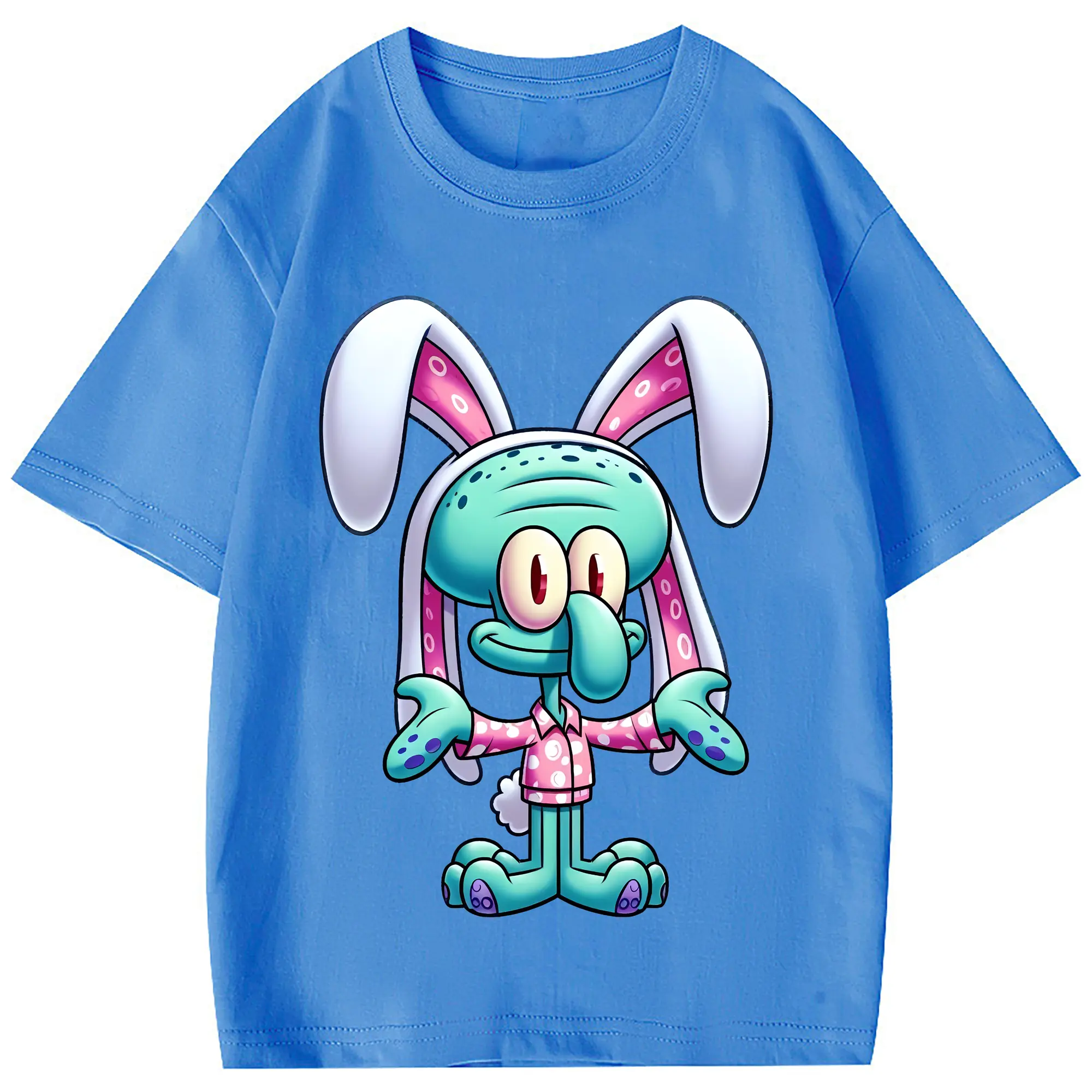 スポンジボブ グッズ イカルド - 綿100% 半袖Tシャツ ・ フロントプリント ・ 快適 通気性 ・ 日常使い 散歩 スポーツ用