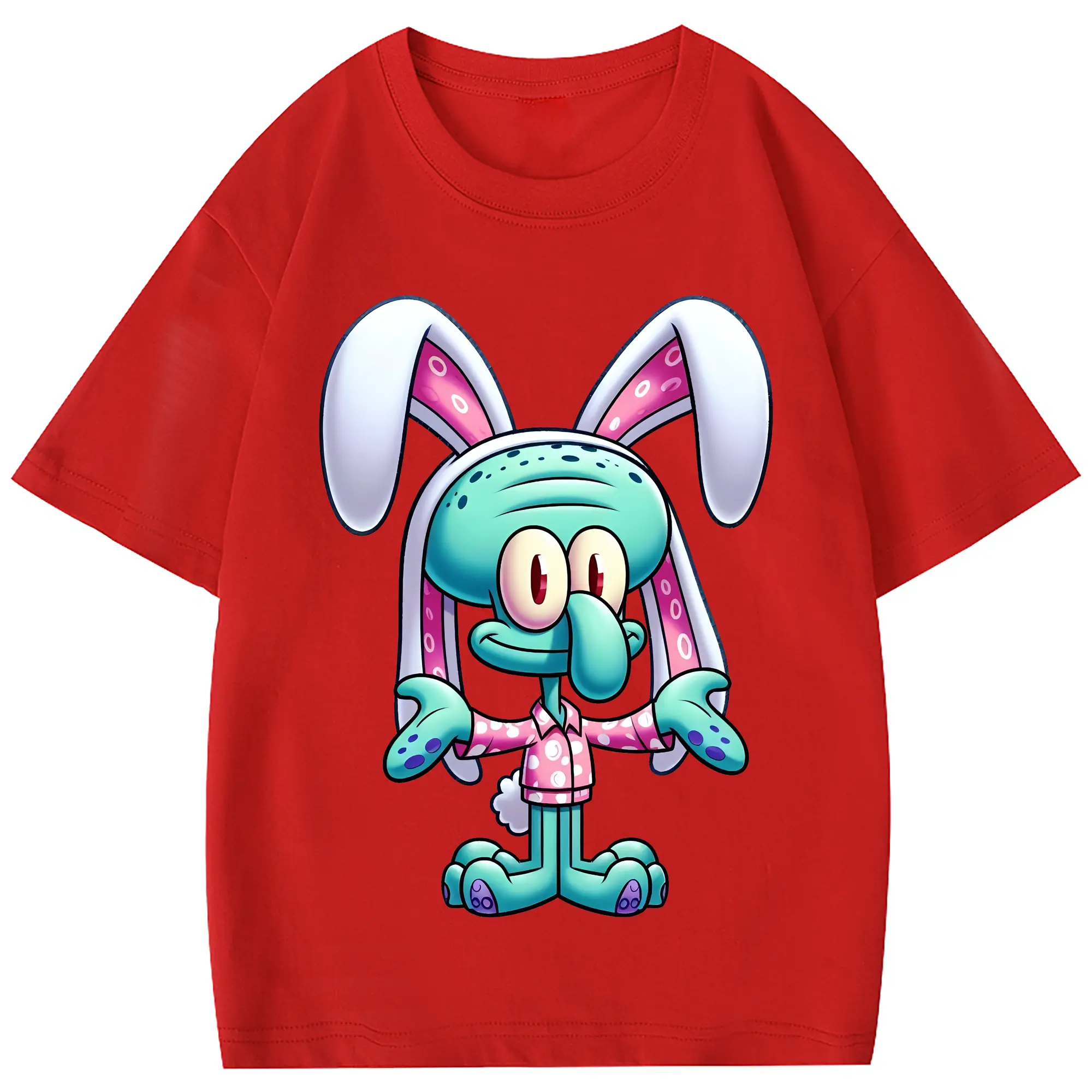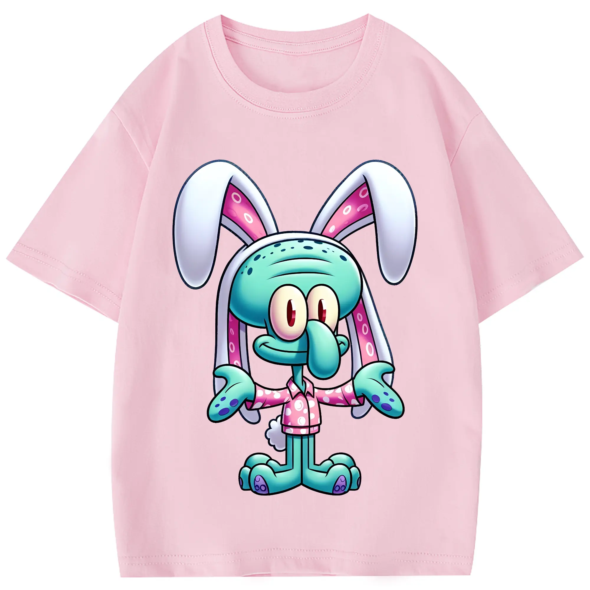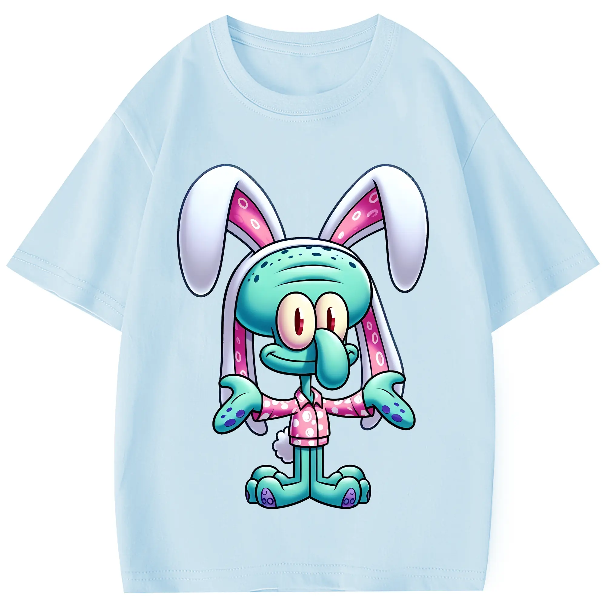 スポンジボブ グッズ イカルド - 綿100% 半袖Tシャツ ・ フロントプリント ・ 快適 通気性 ・ 日常使い 散歩 スポーツ用