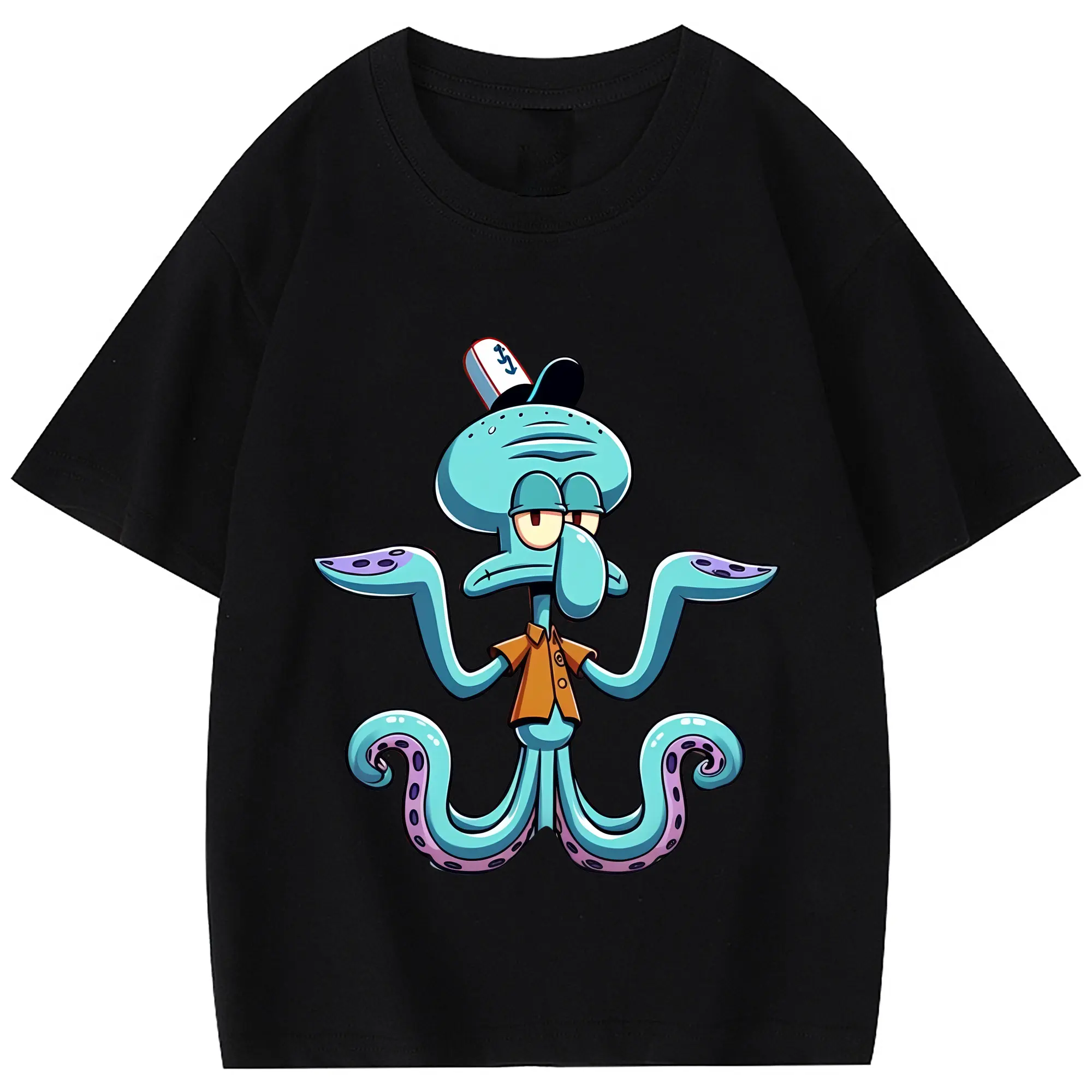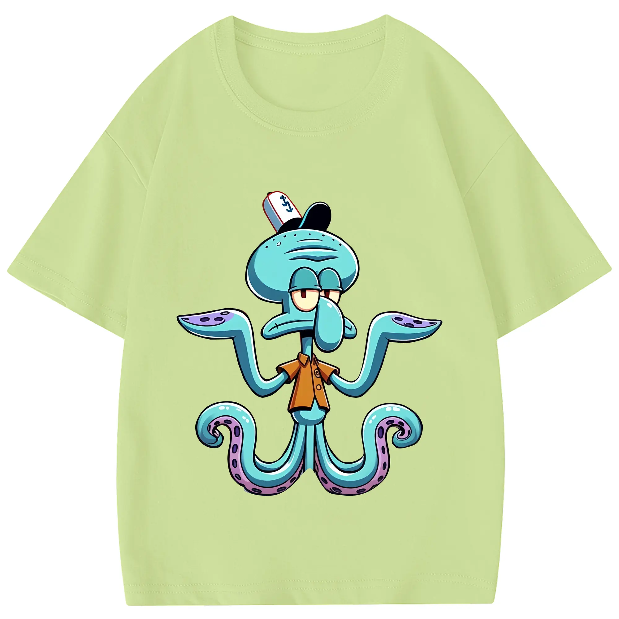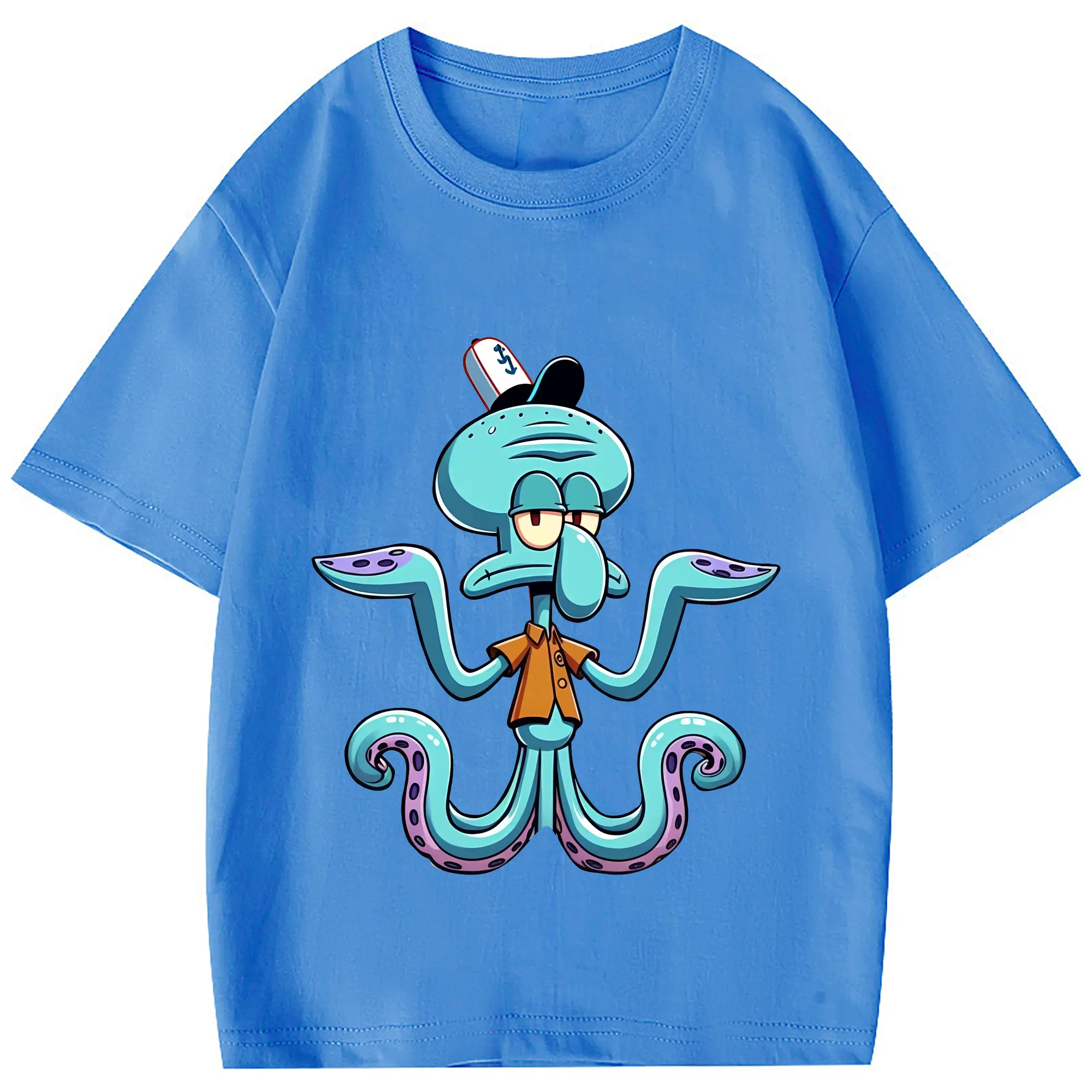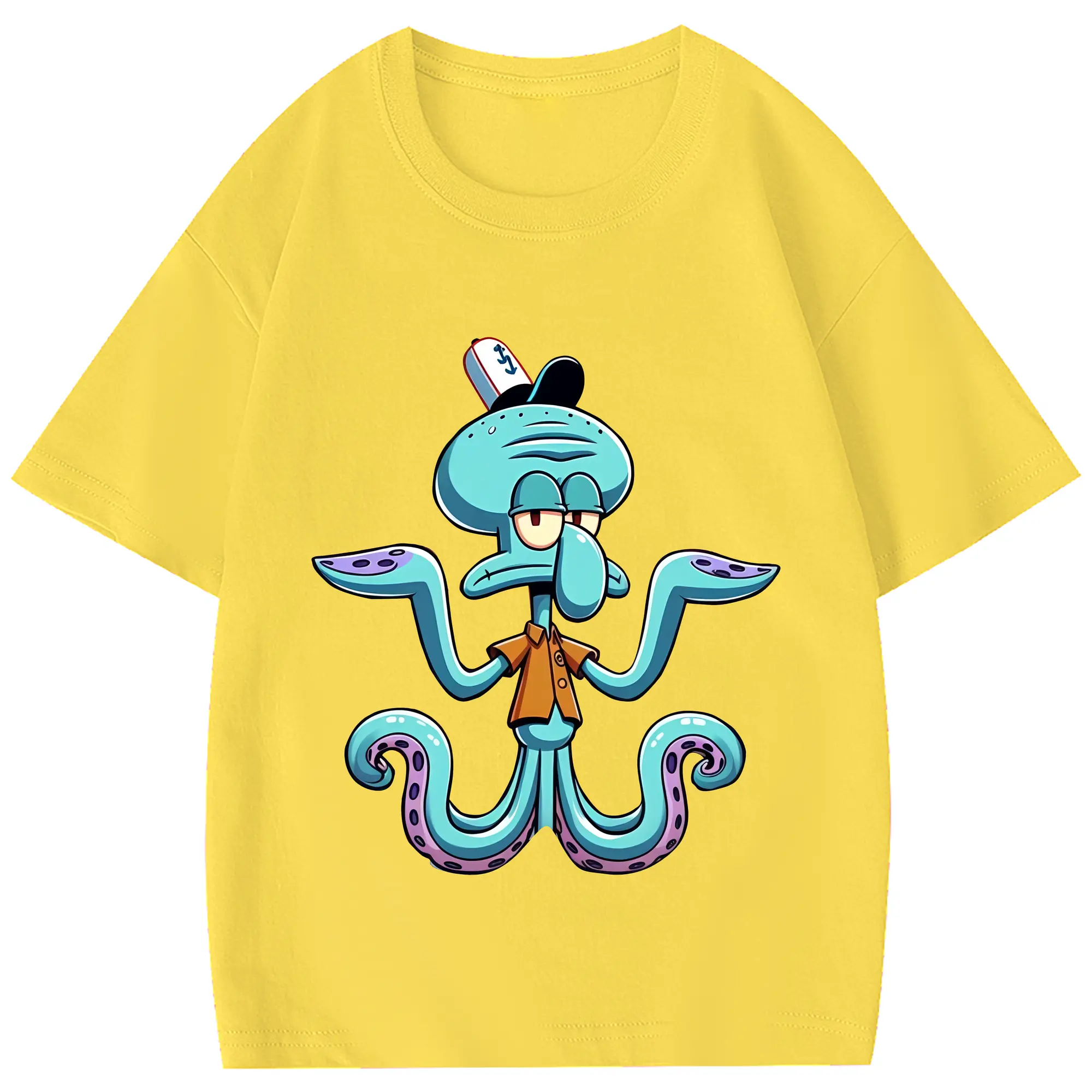 スポンジボブ グッズ イカルド - 綿100% 半袖Tシャツ ・ フロントプリント ・ 快適 通気性 ・ 日常使い 散歩 スポーツ用