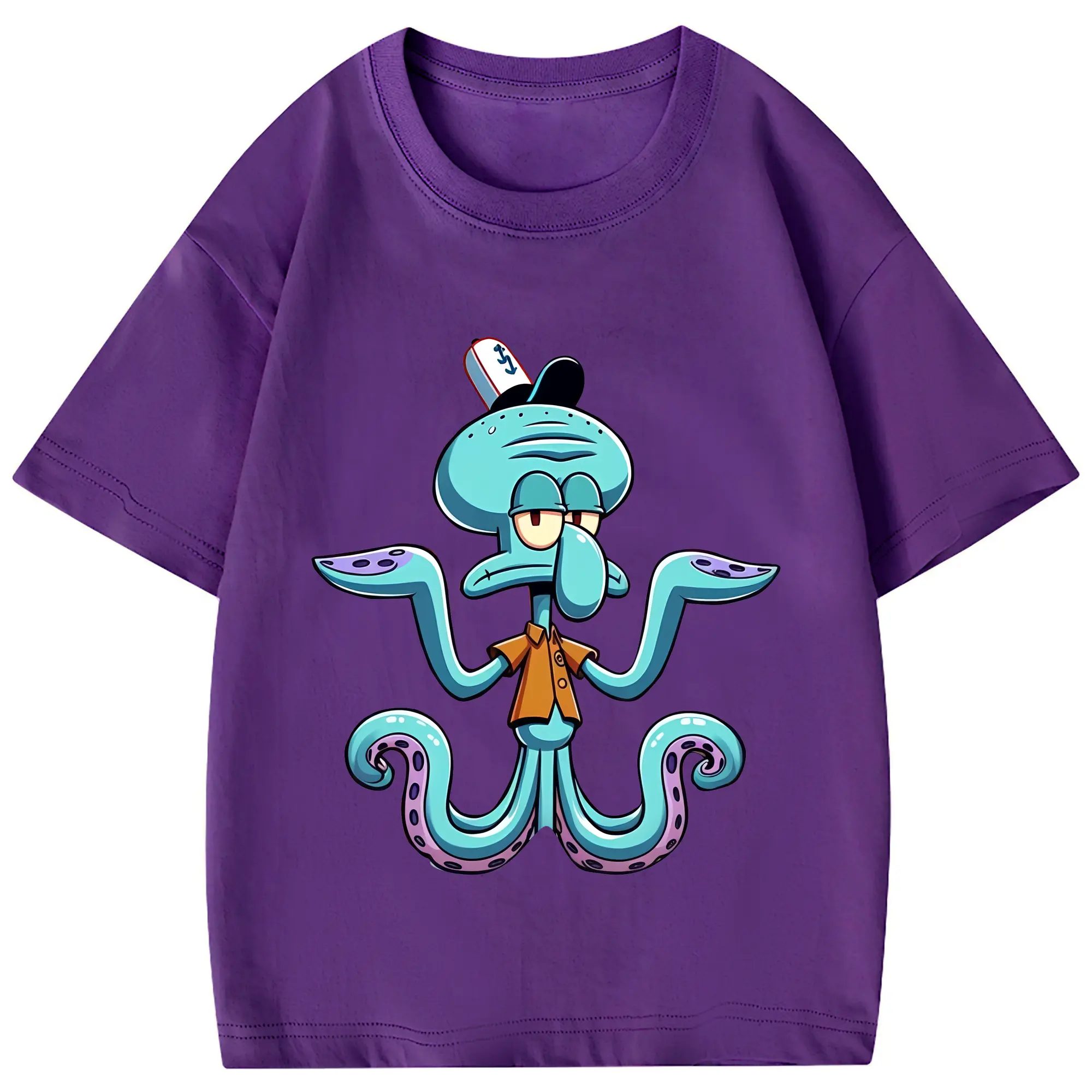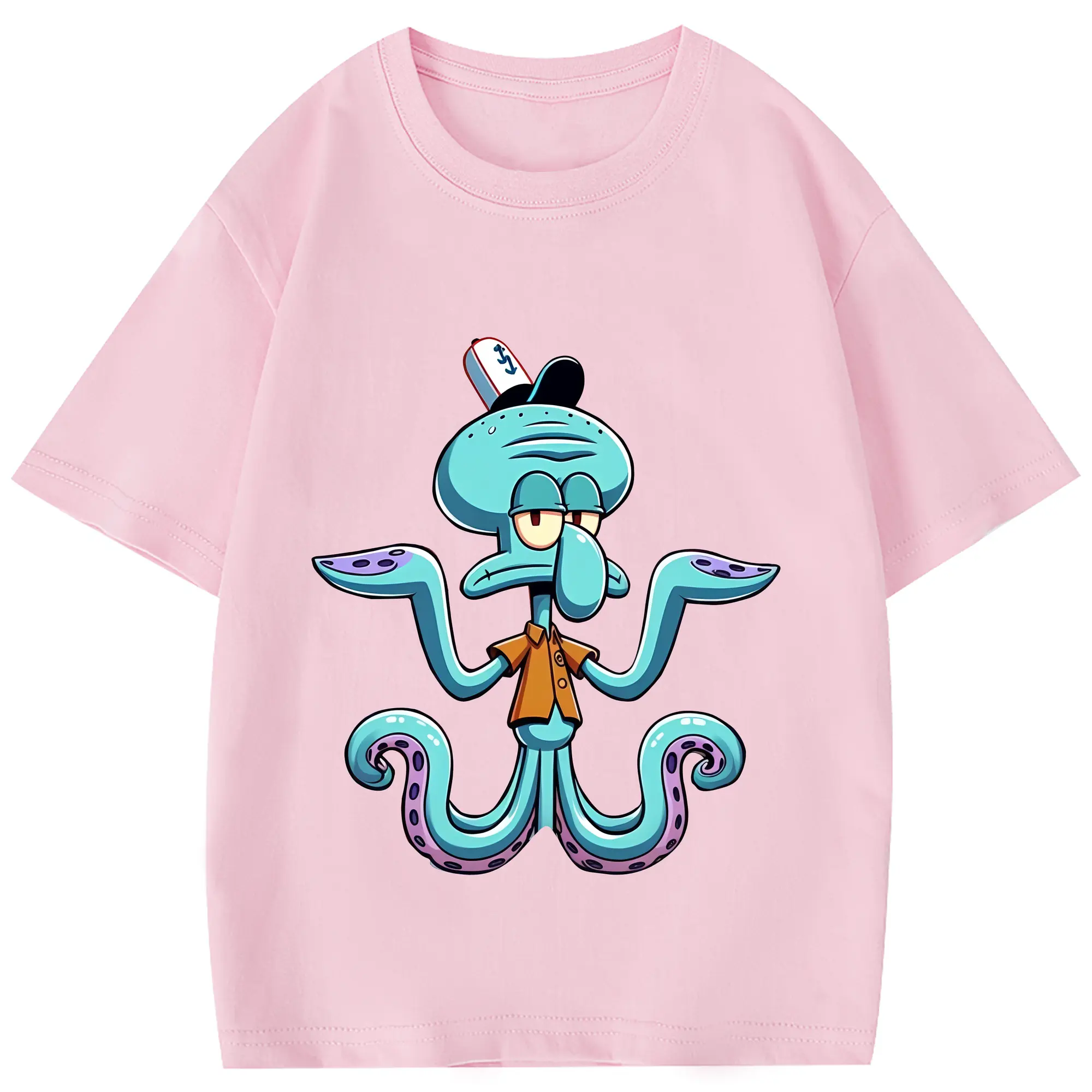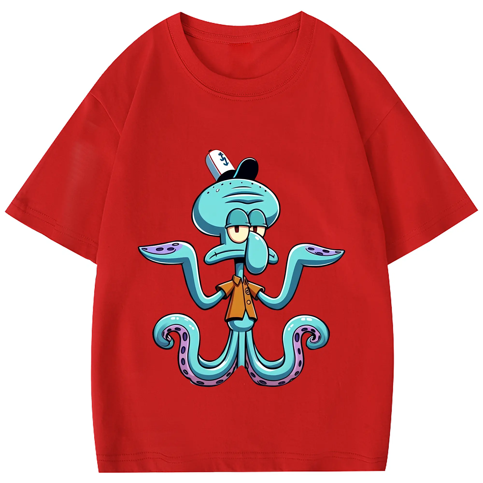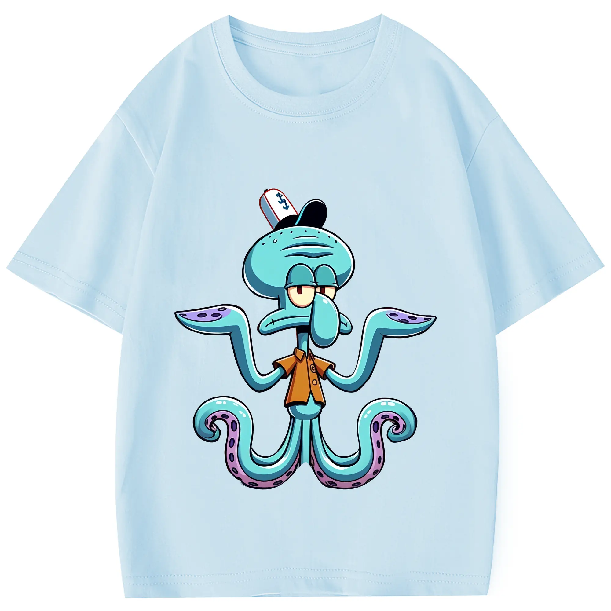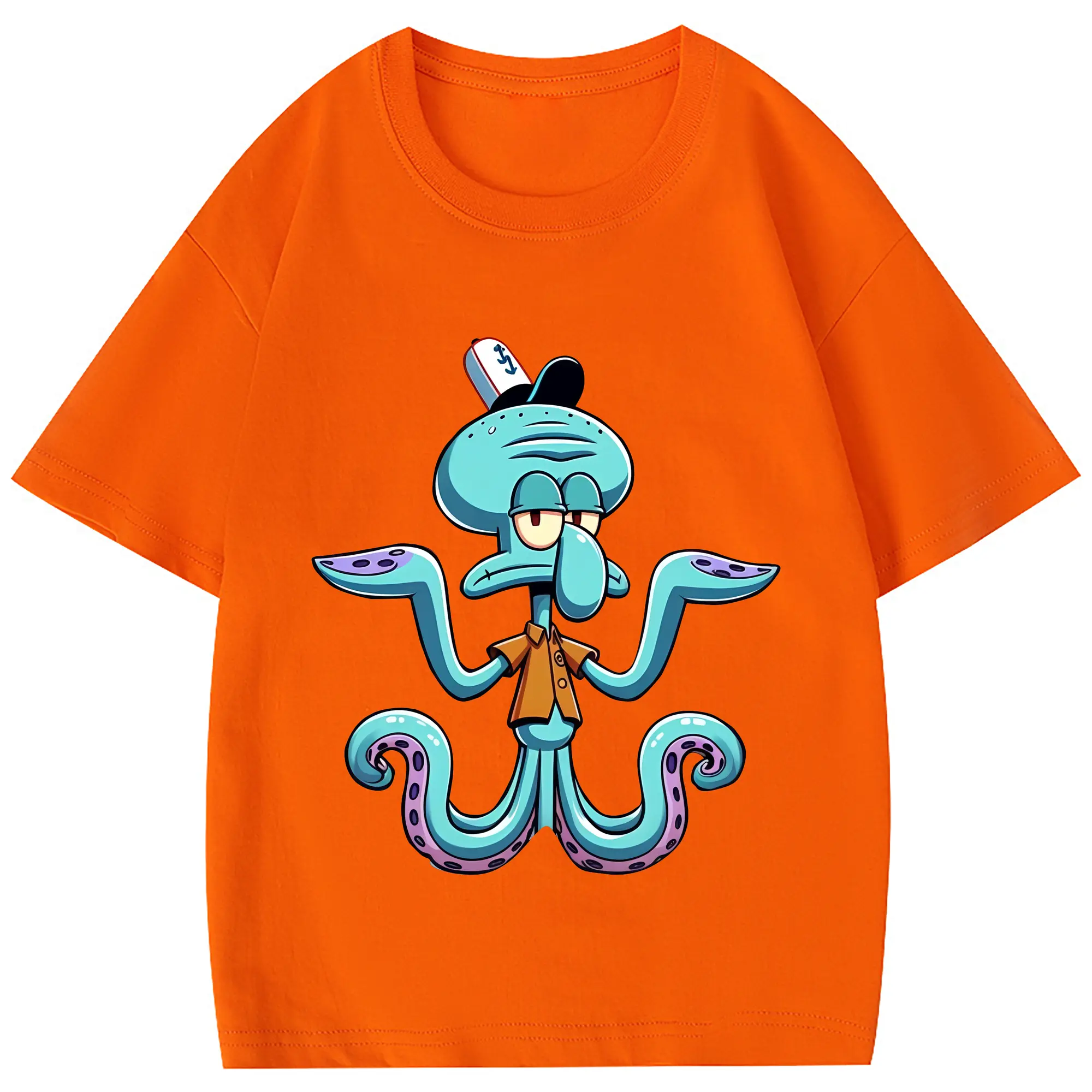 スポンジボブ グッズ イカルド - 綿100% 半袖Tシャツ ・ フロントプリント ・ 快適 通気性 ・ 日常使い 散歩 スポーツ用