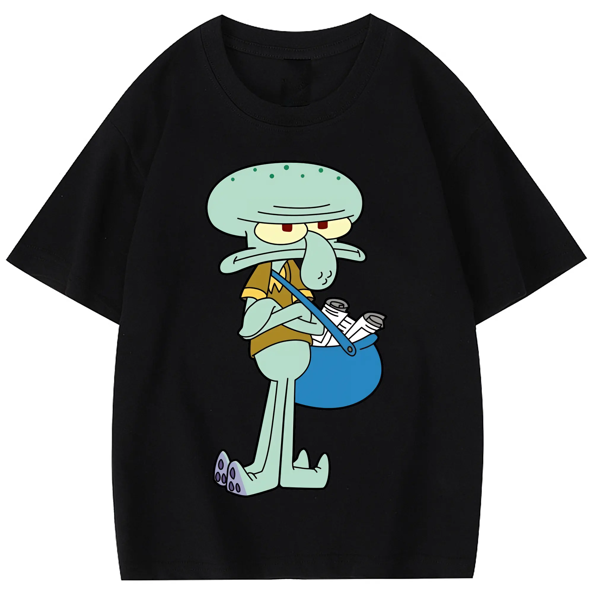 スポンジボブ グッズ イカルド - 綿100% 半袖Tシャツ ・ バックプリント ・ 快適 通気性 ・ 日常使い 散歩 スポーツ用