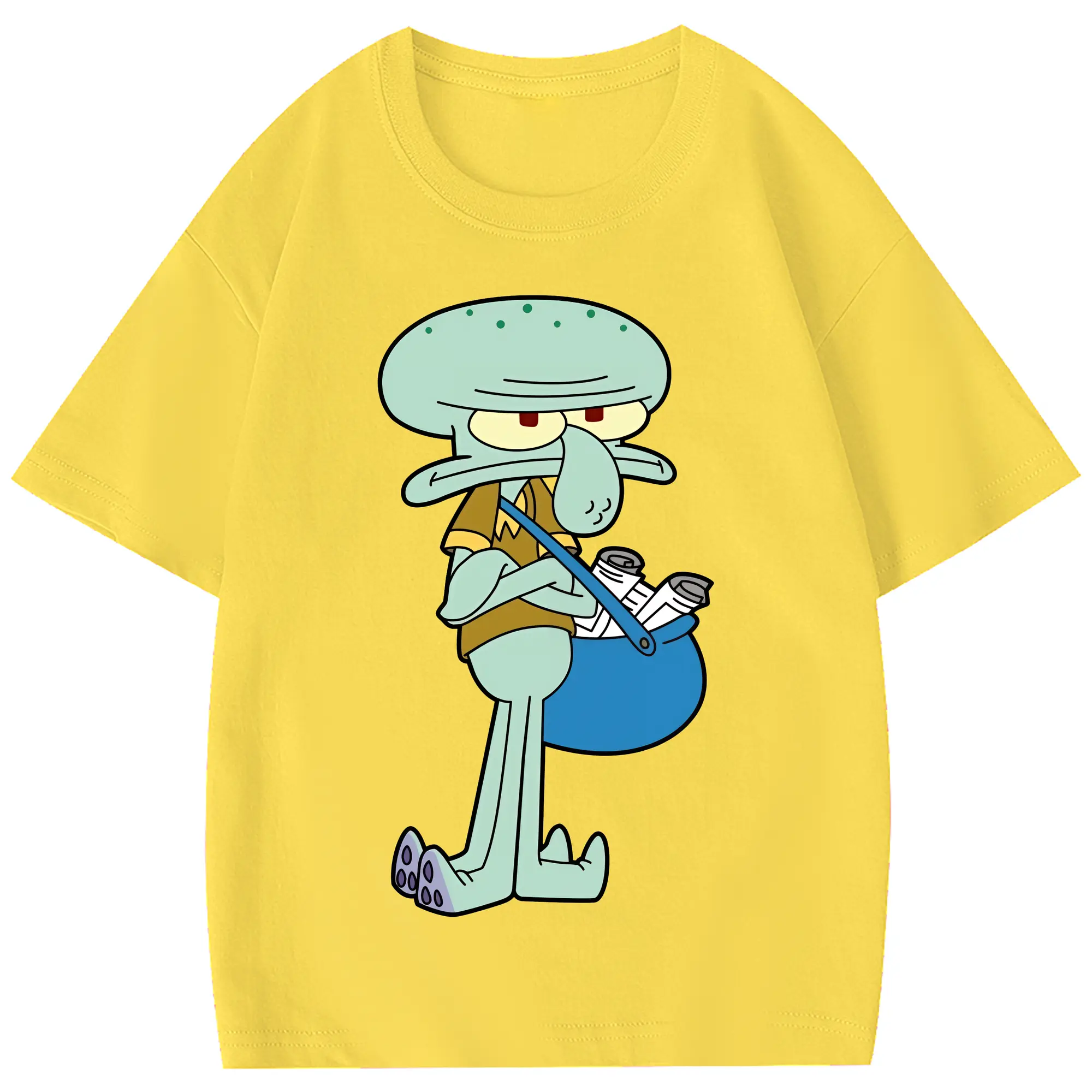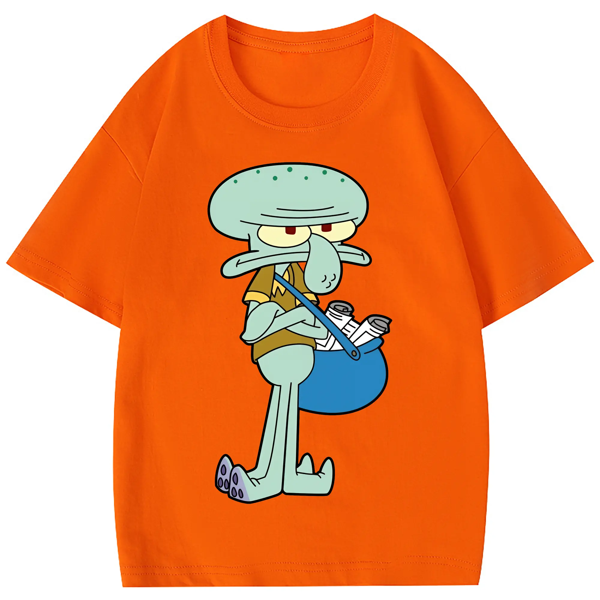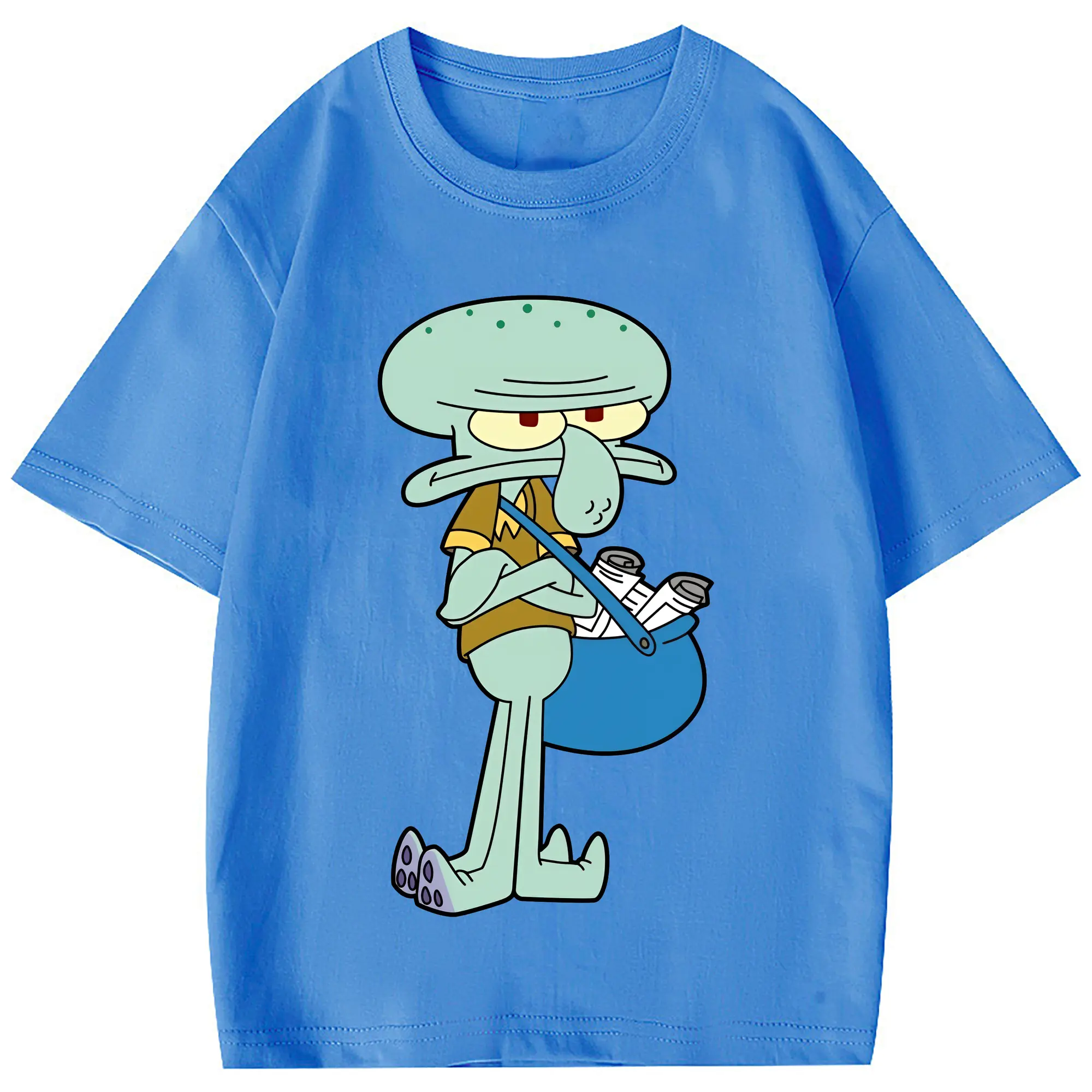 スポンジボブ グッズ イカルド - 綿100% 半袖Tシャツ ・ フロントプリント ・ 快適 通気性 ・ 日常使い 散歩 スポーツ用