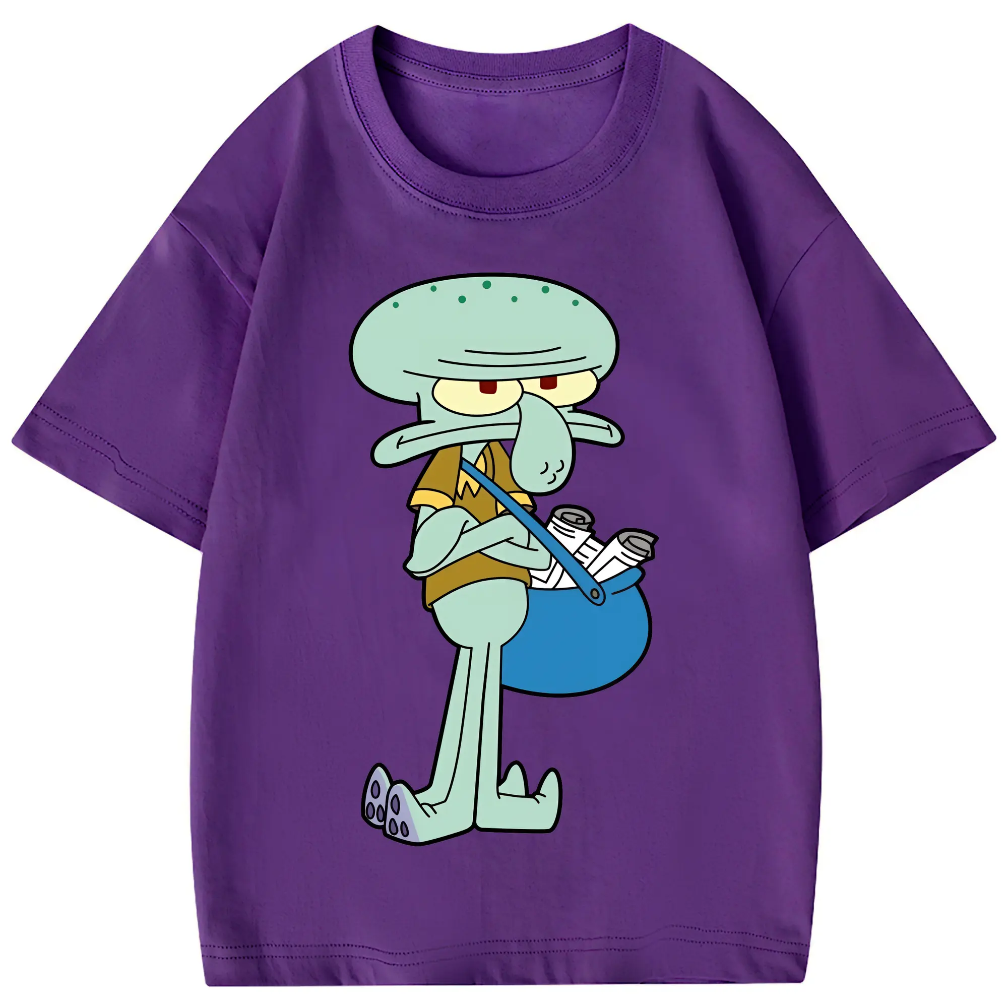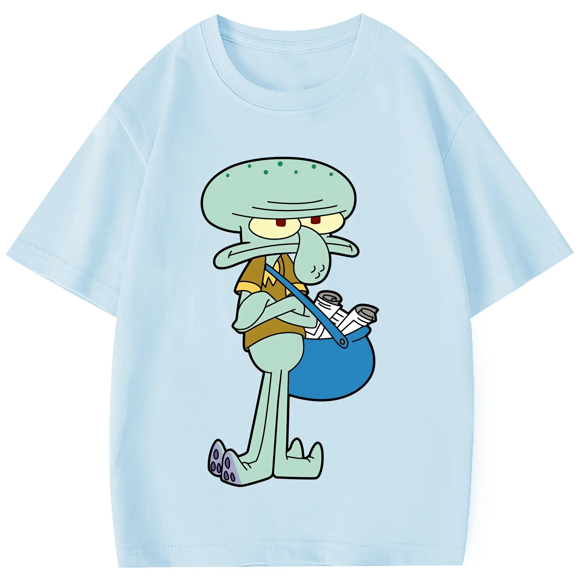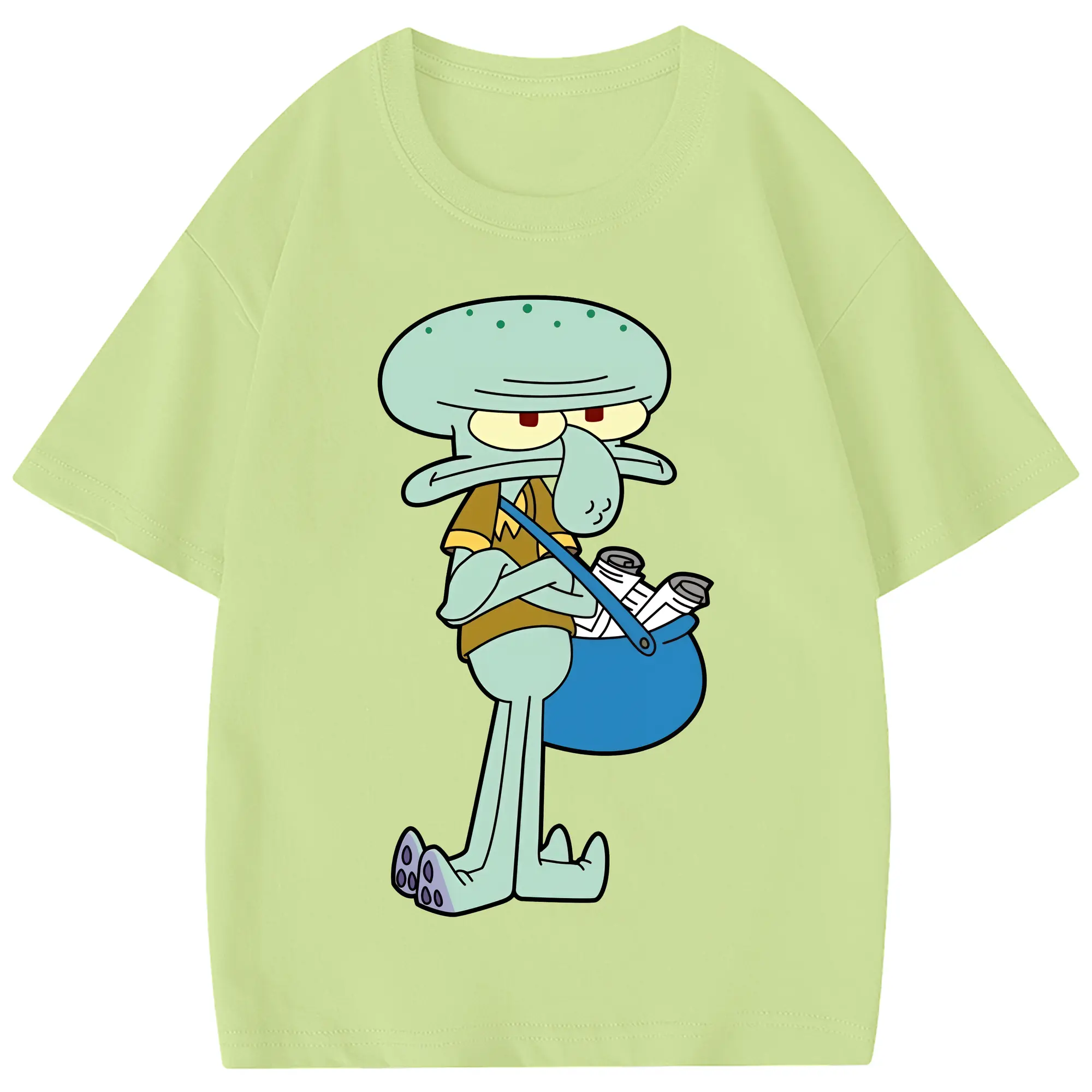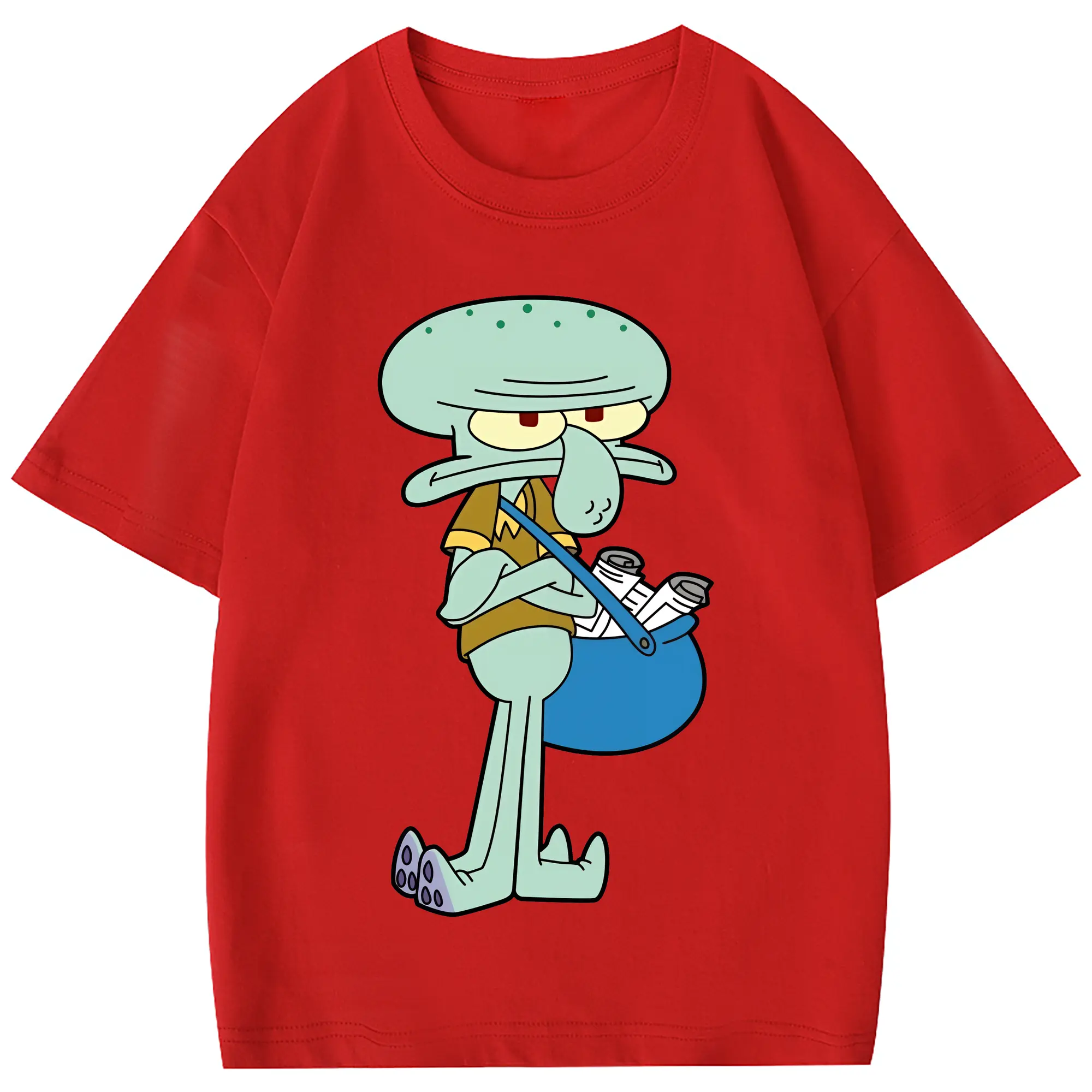 スポンジボブ グッズ イカルド - 綿100% 半袖Tシャツ ・ フロントプリント ・ 快適 通気性 ・ 日常使い 散歩 スポーツ用
