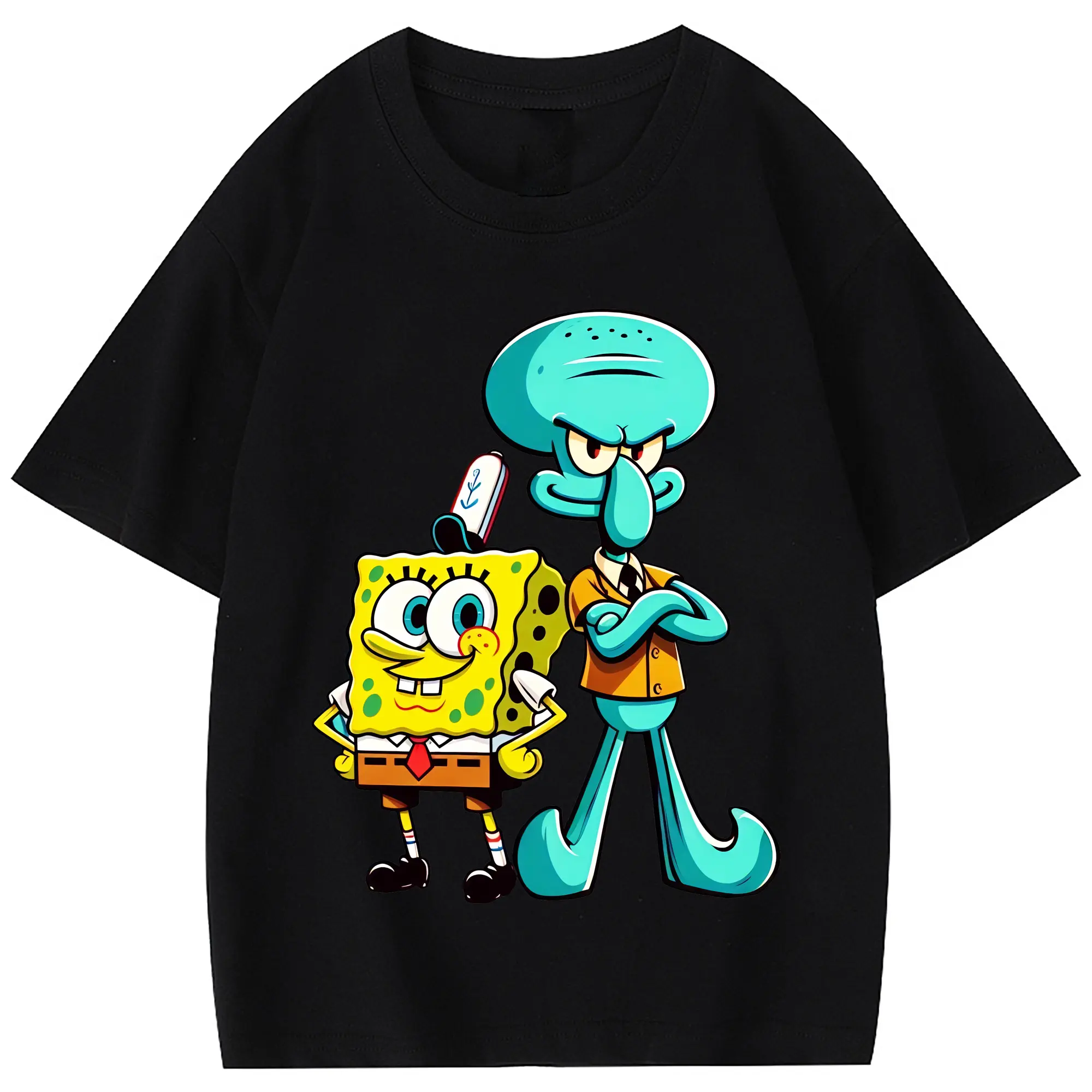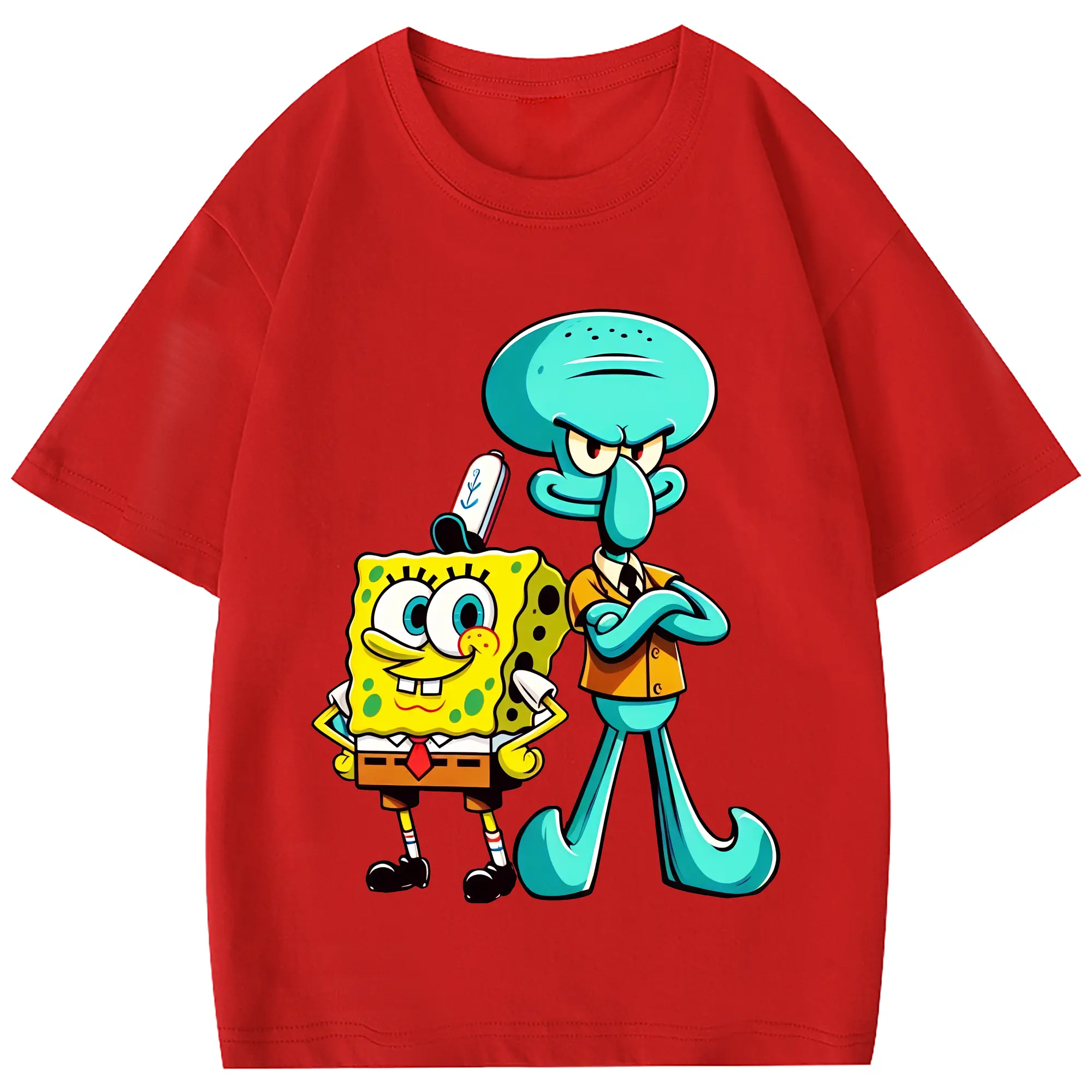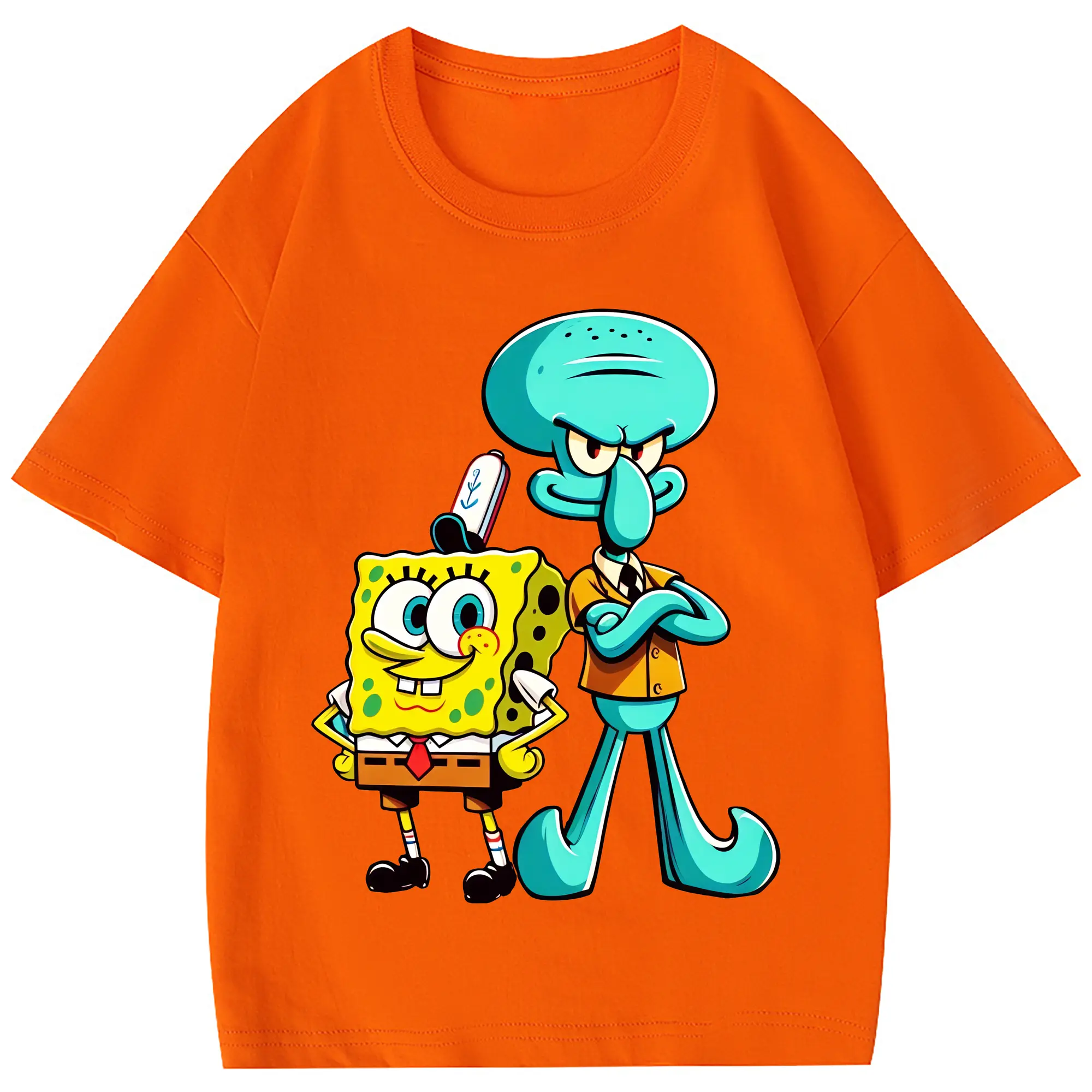 スポンジボブ グッズ イカルド - 綿100% 半袖Tシャツ ・ バックプリント ・ 快適 通気性 ・ 日常使い 散歩 スポーツ用