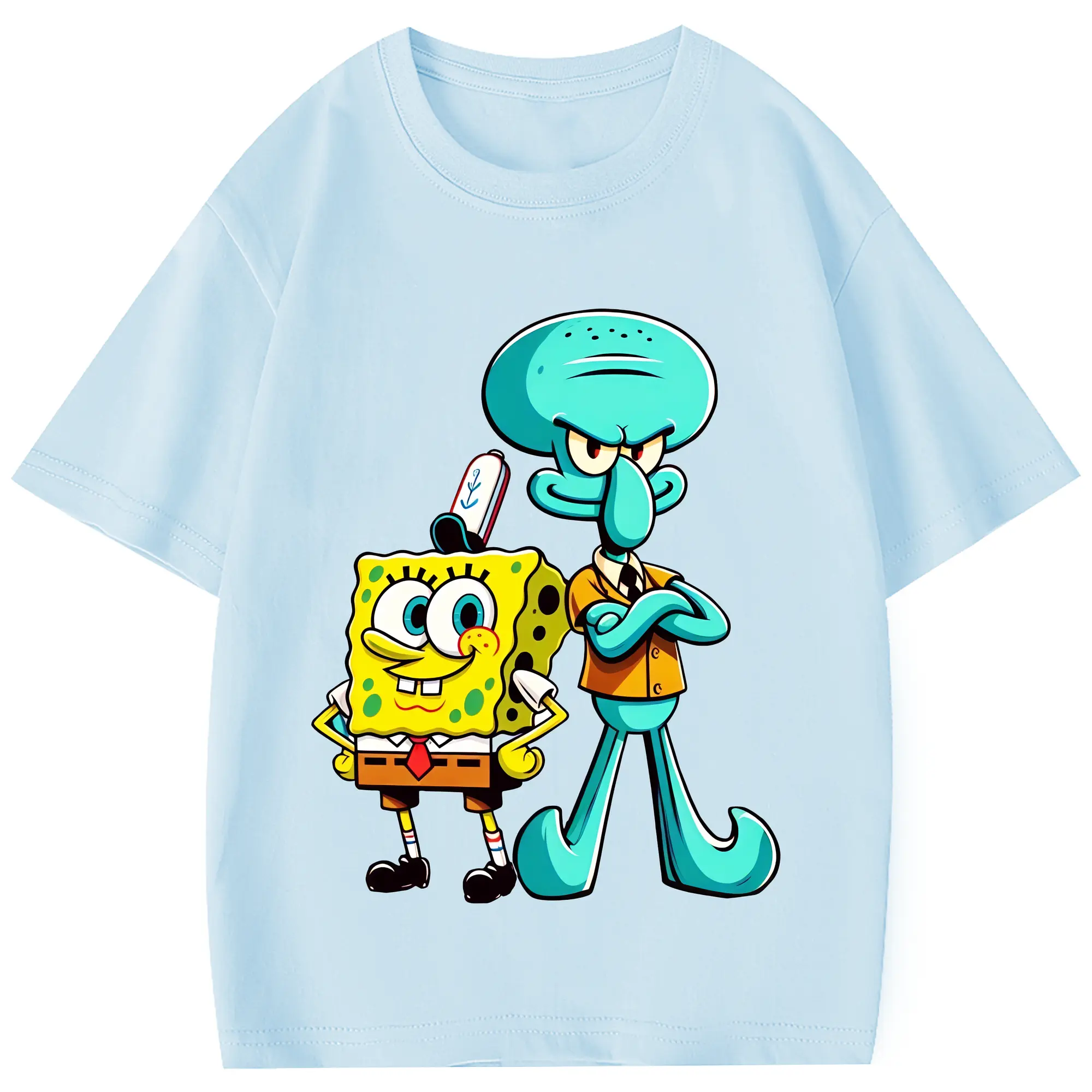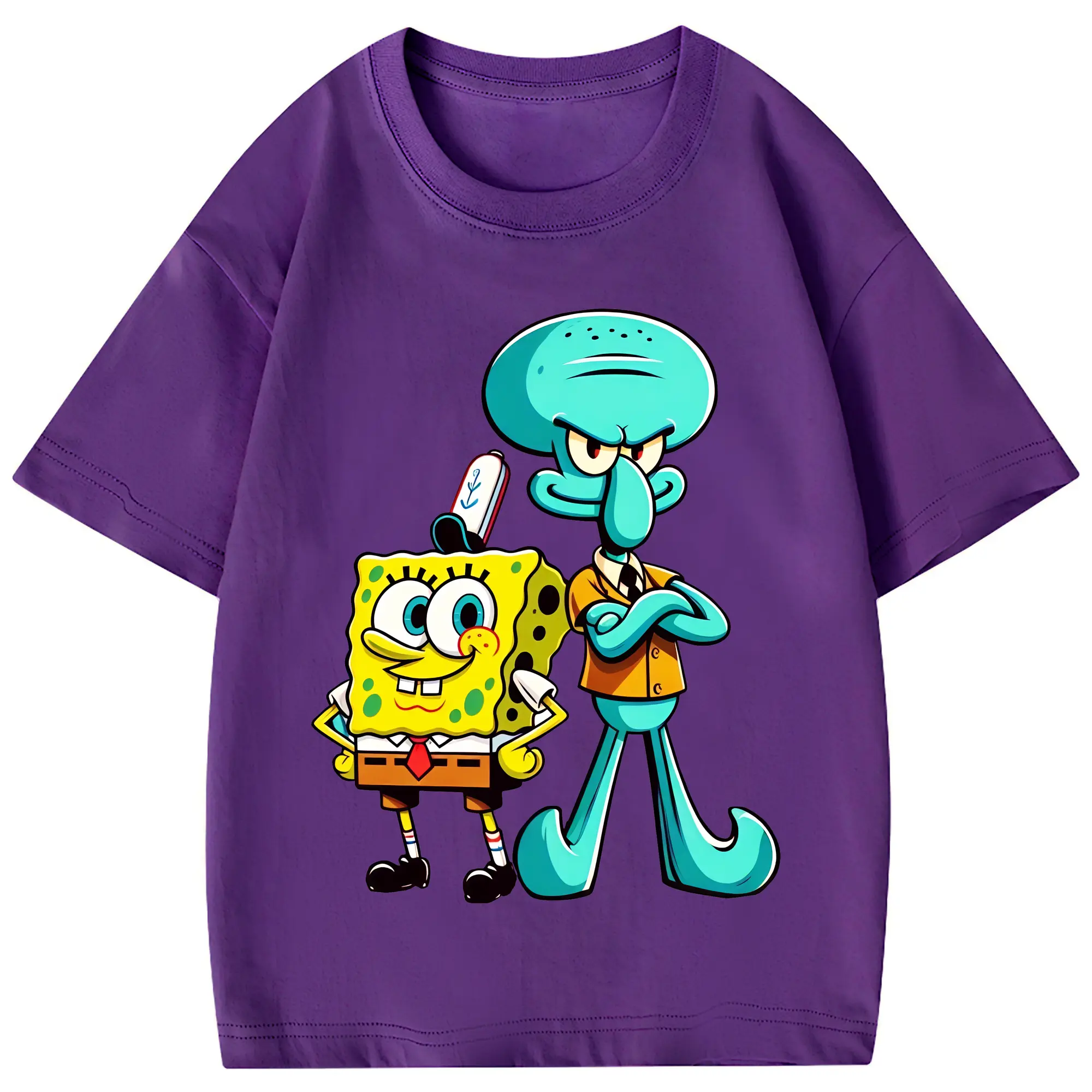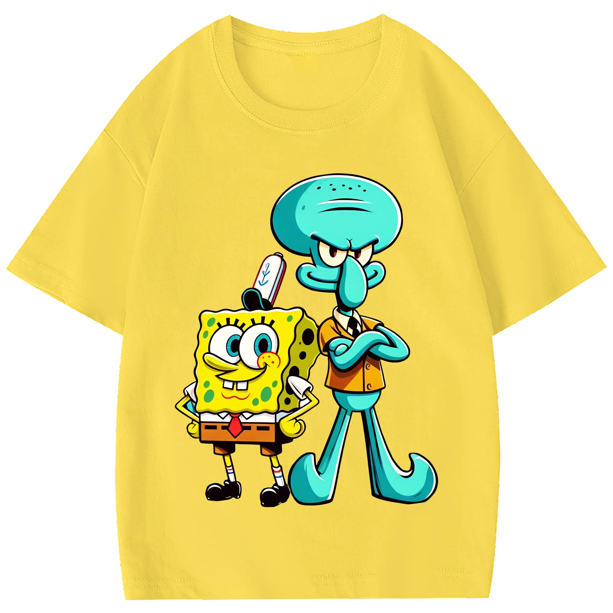 スポンジボブ グッズ イカルド - 綿100% 半袖Tシャツ ・ バックプリント ・ 快適 通気性 ・ 日常使い 散歩 スポーツ用