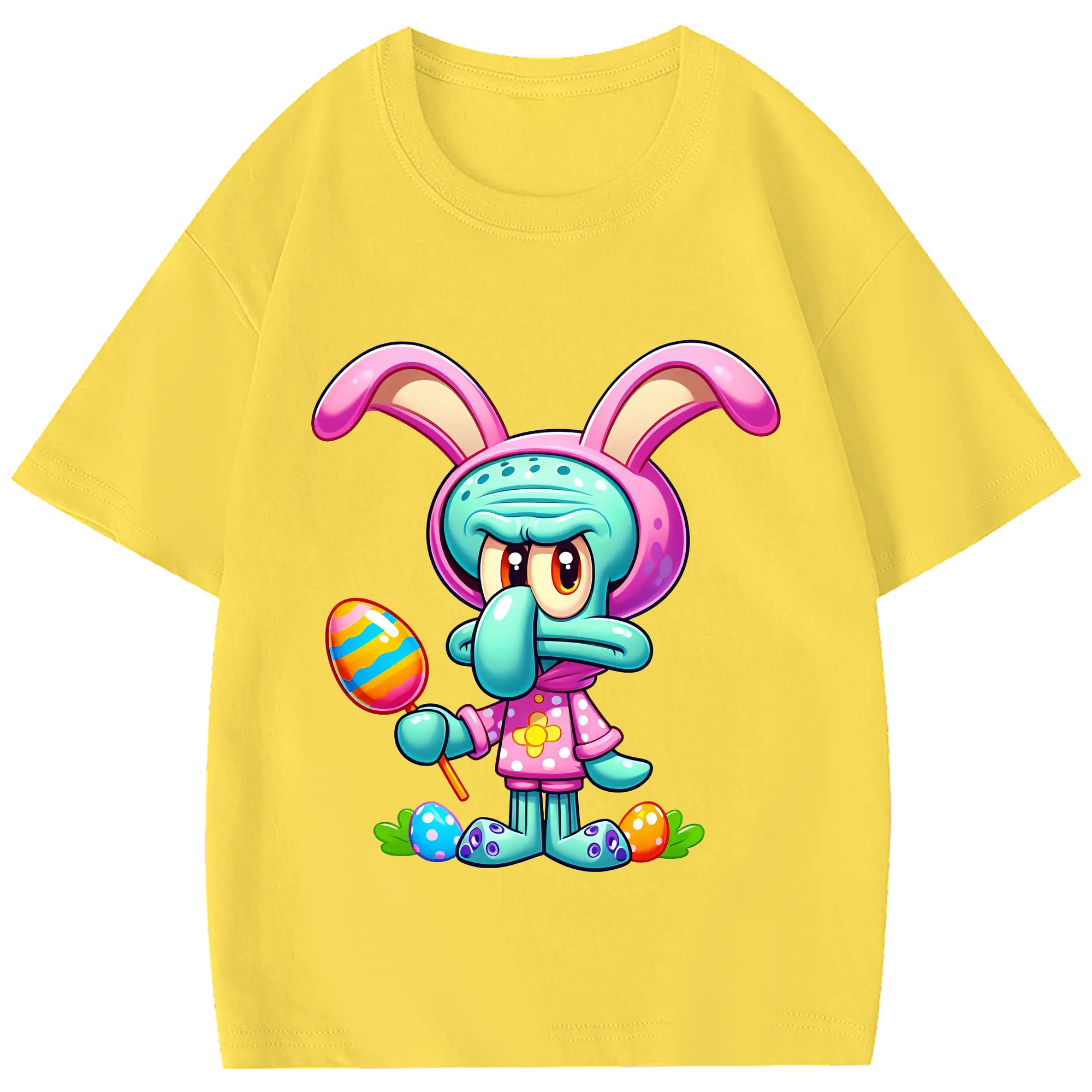 スポンジボブ グッズ イカルド - 綿100% 半袖Tシャツ ・ フロントプリント ・ 快適 通気性 ・ 日常使い 散歩 スポーツ用