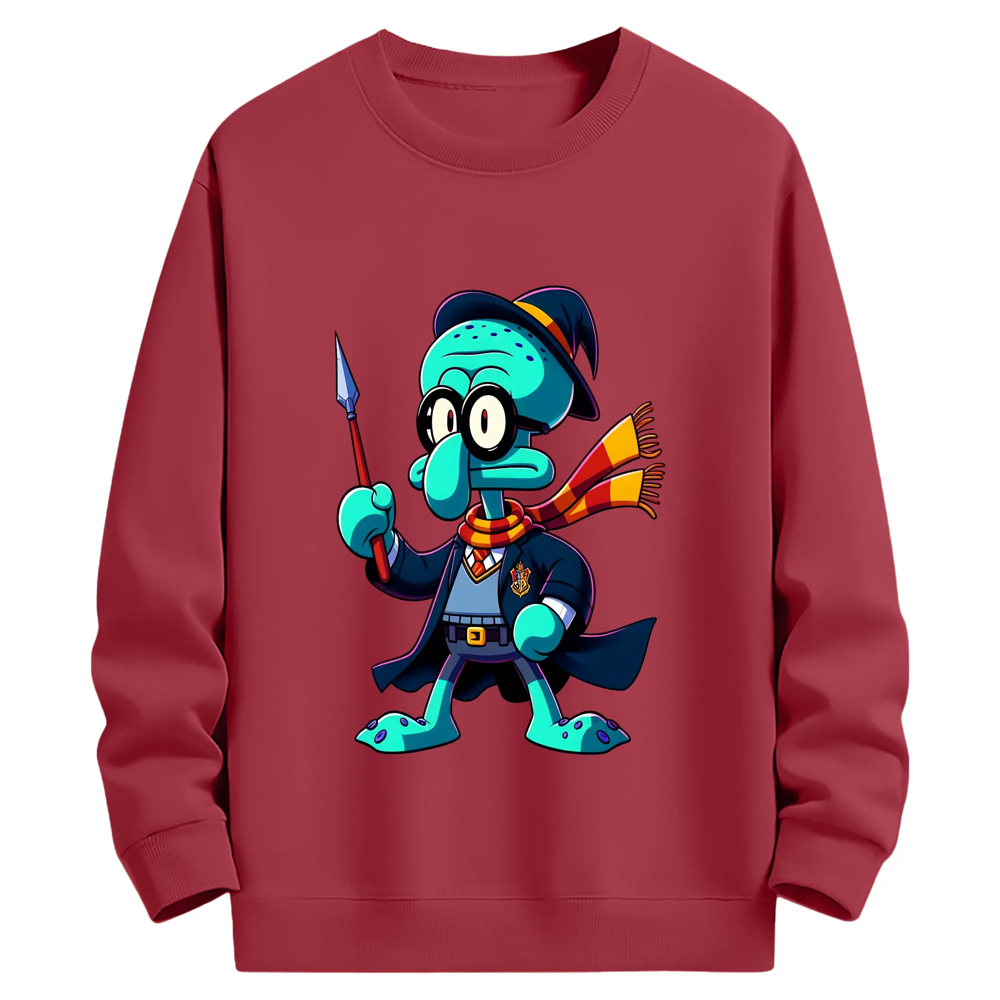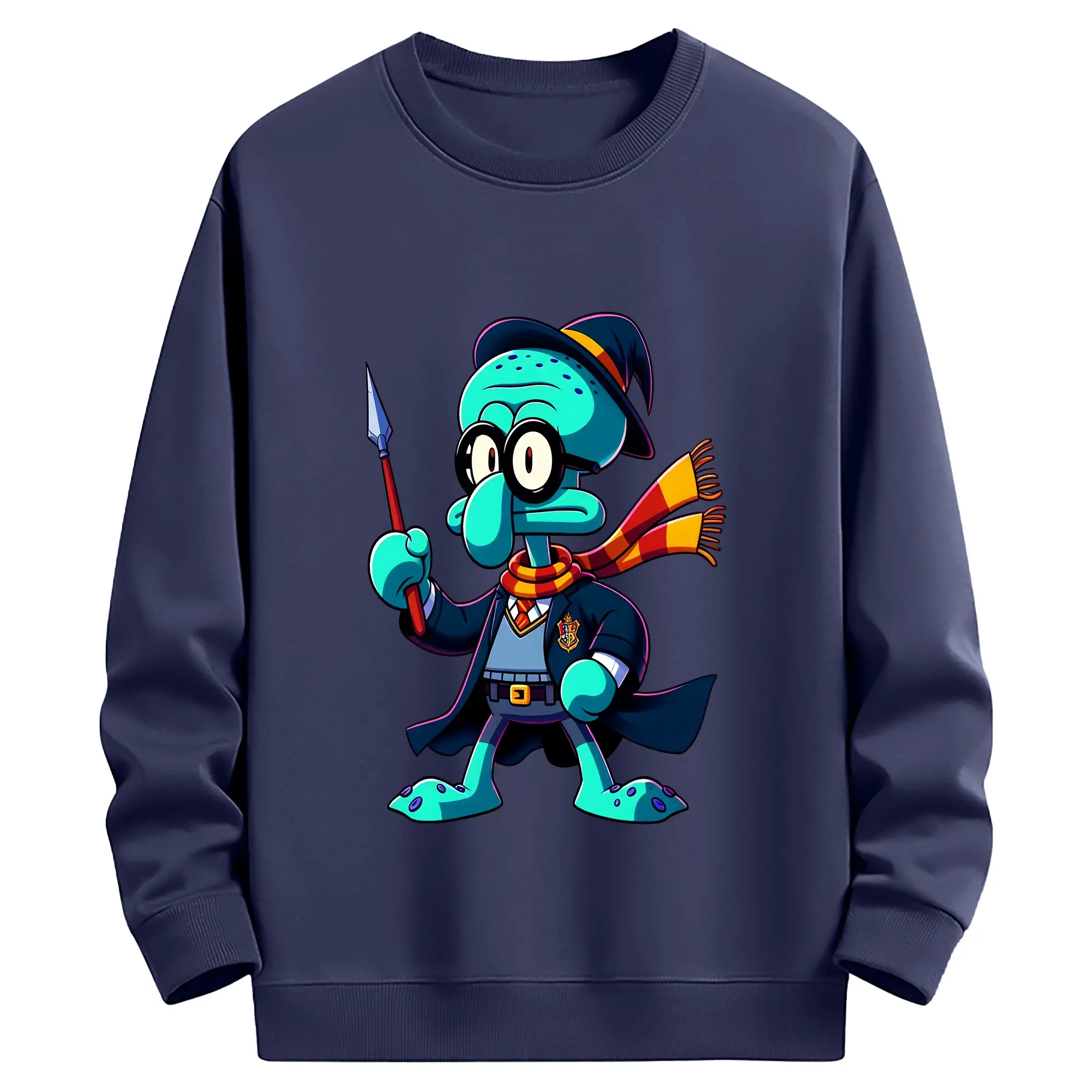 スポンジボブ グッズ イカルド - 薄手 クルーネック スウェット 裏毛260g · ポリエステル 春秋向け カジュアル 男女兼用 · トレーナー デイリー スポーツ 散歩に最適