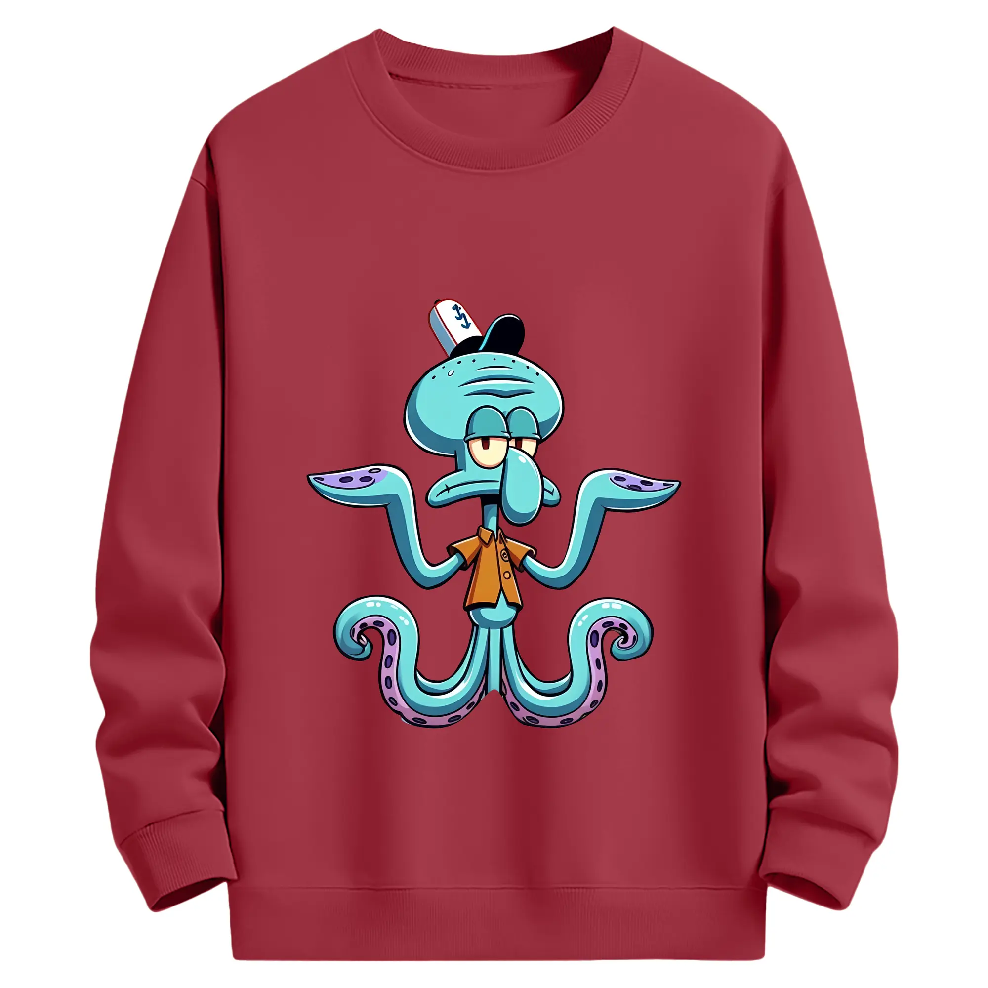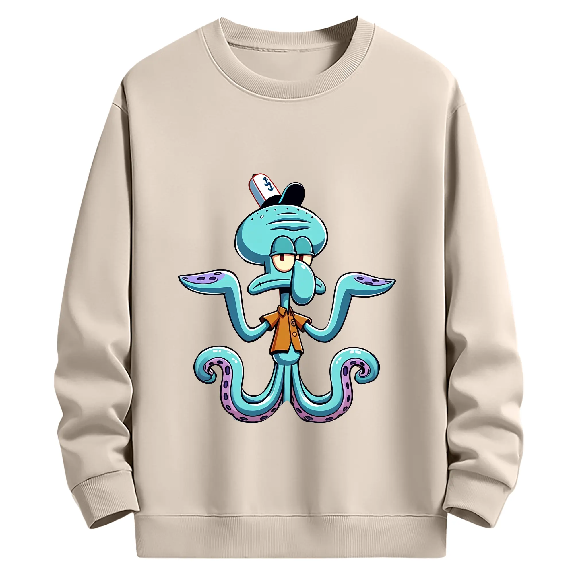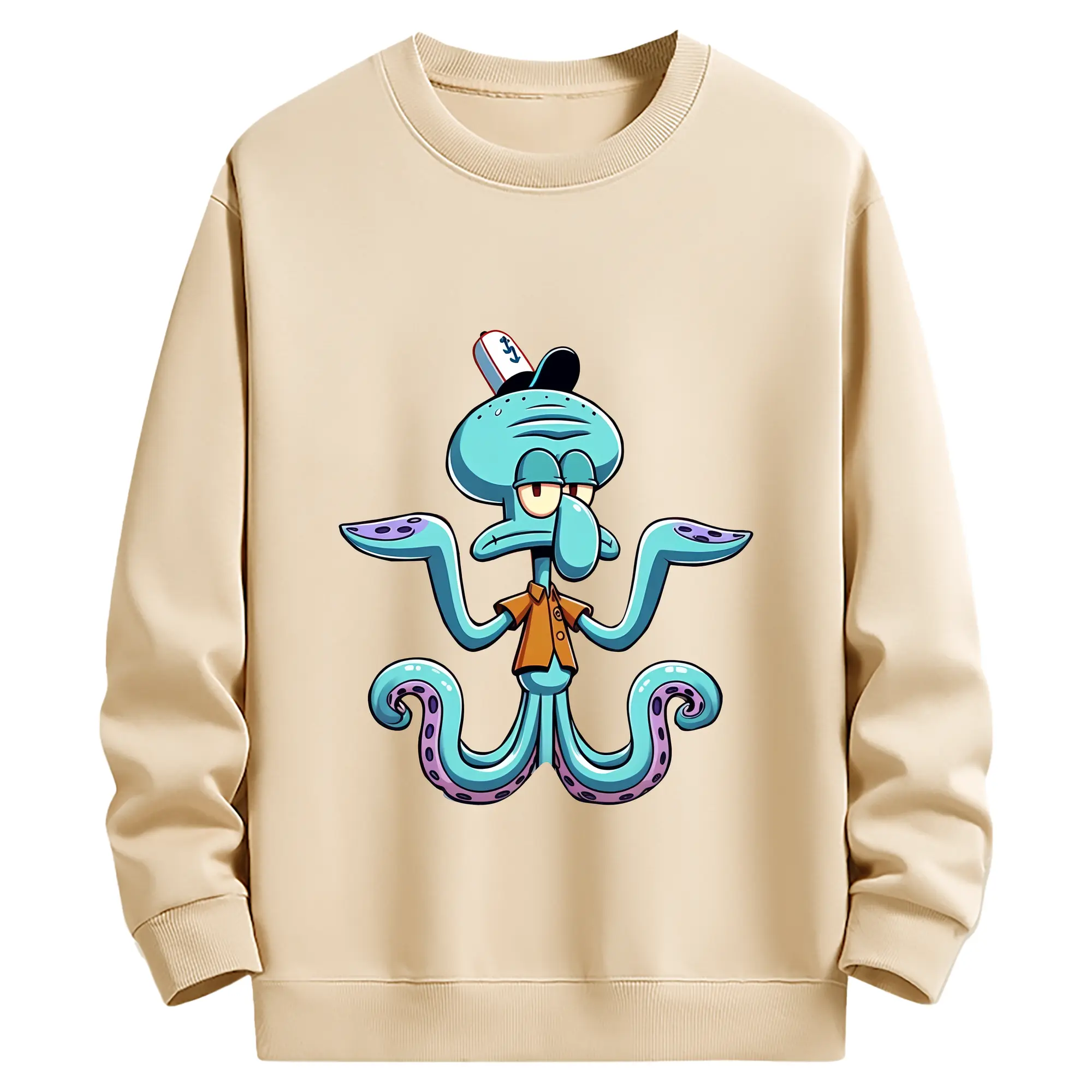 スポンジボブ グッズ イカルド - 薄手 クルーネック スウェット 裏毛260g · ポリエステル 春秋向け カジュアル 男女兼用 · トレーナー デイリー スポーツ 散歩に最適