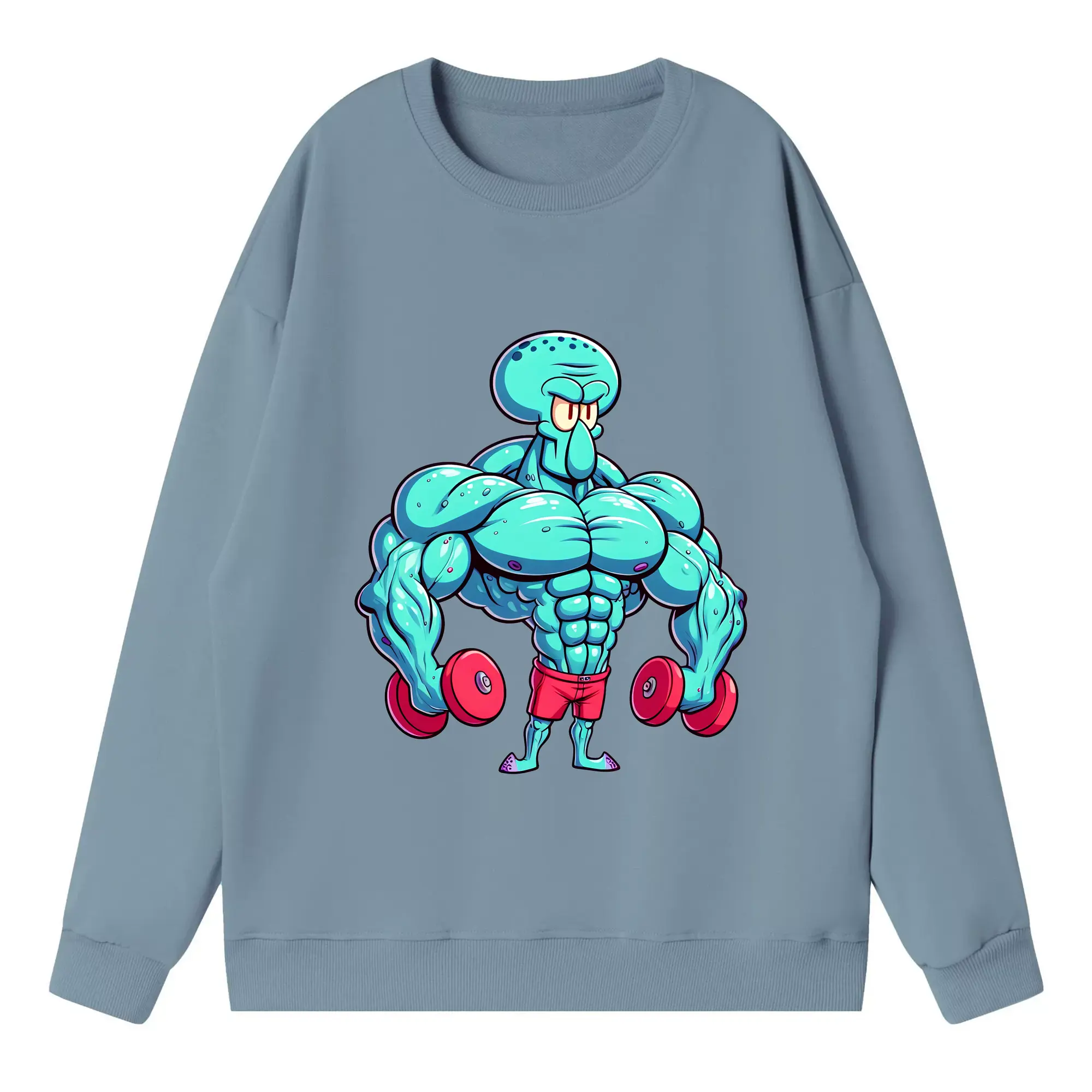 スポンジボブ グッズ イカルド - 高品質 クルーネック スウェット ・ コットン59% ポリエステル41% ・ ユニセックス 長袖 トレーナー ・ カジュアル デイリー スポーツ 散歩用