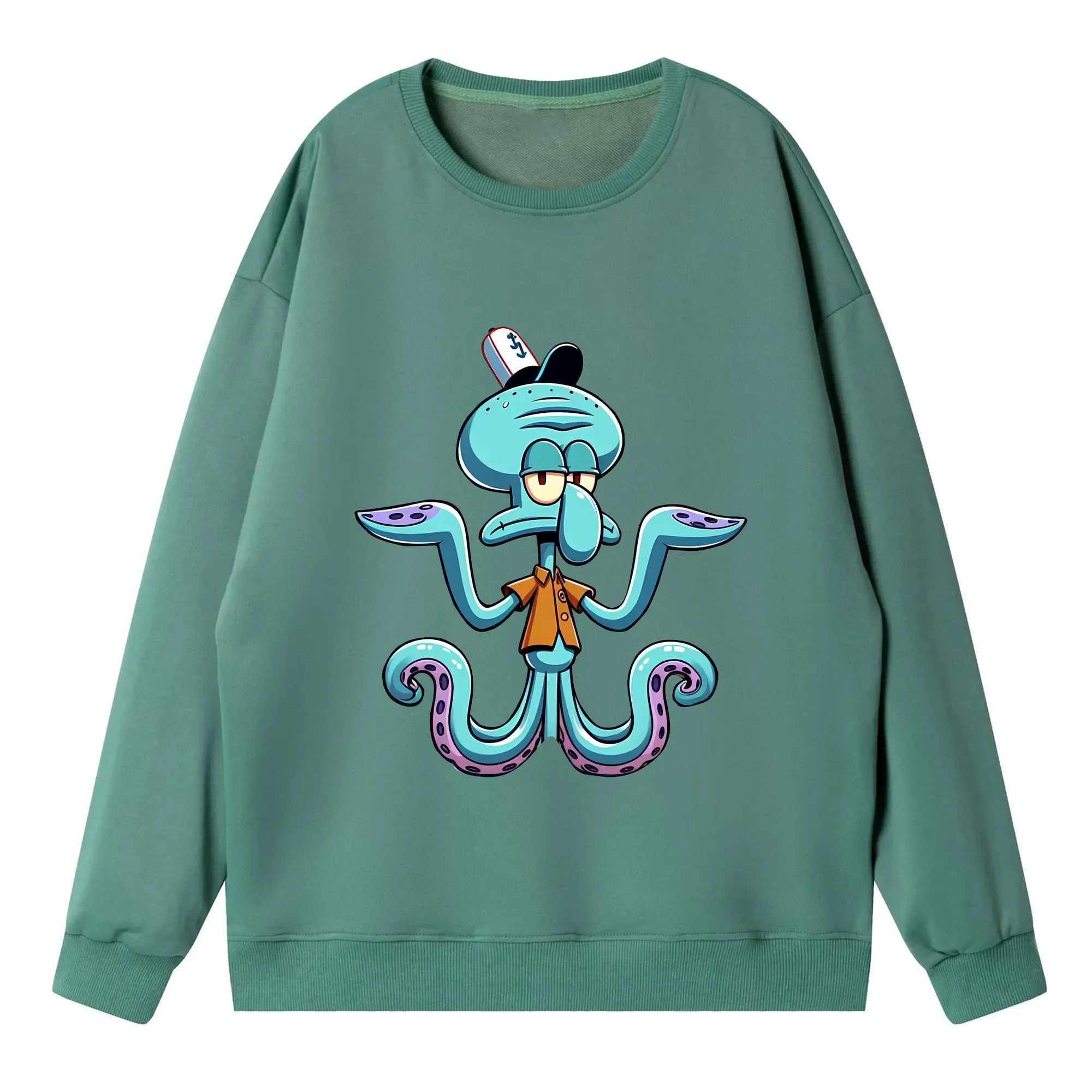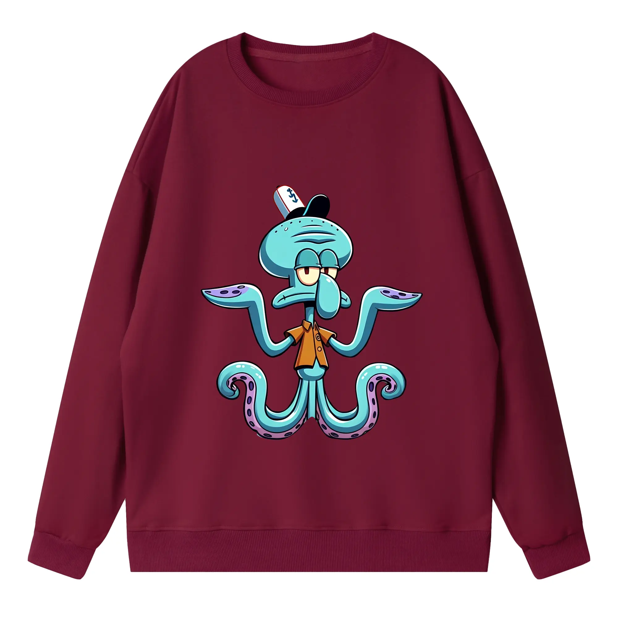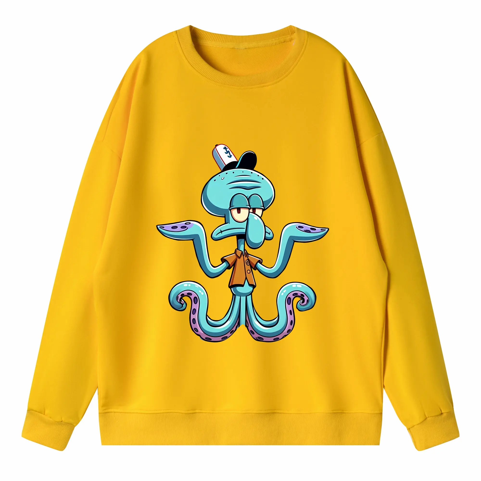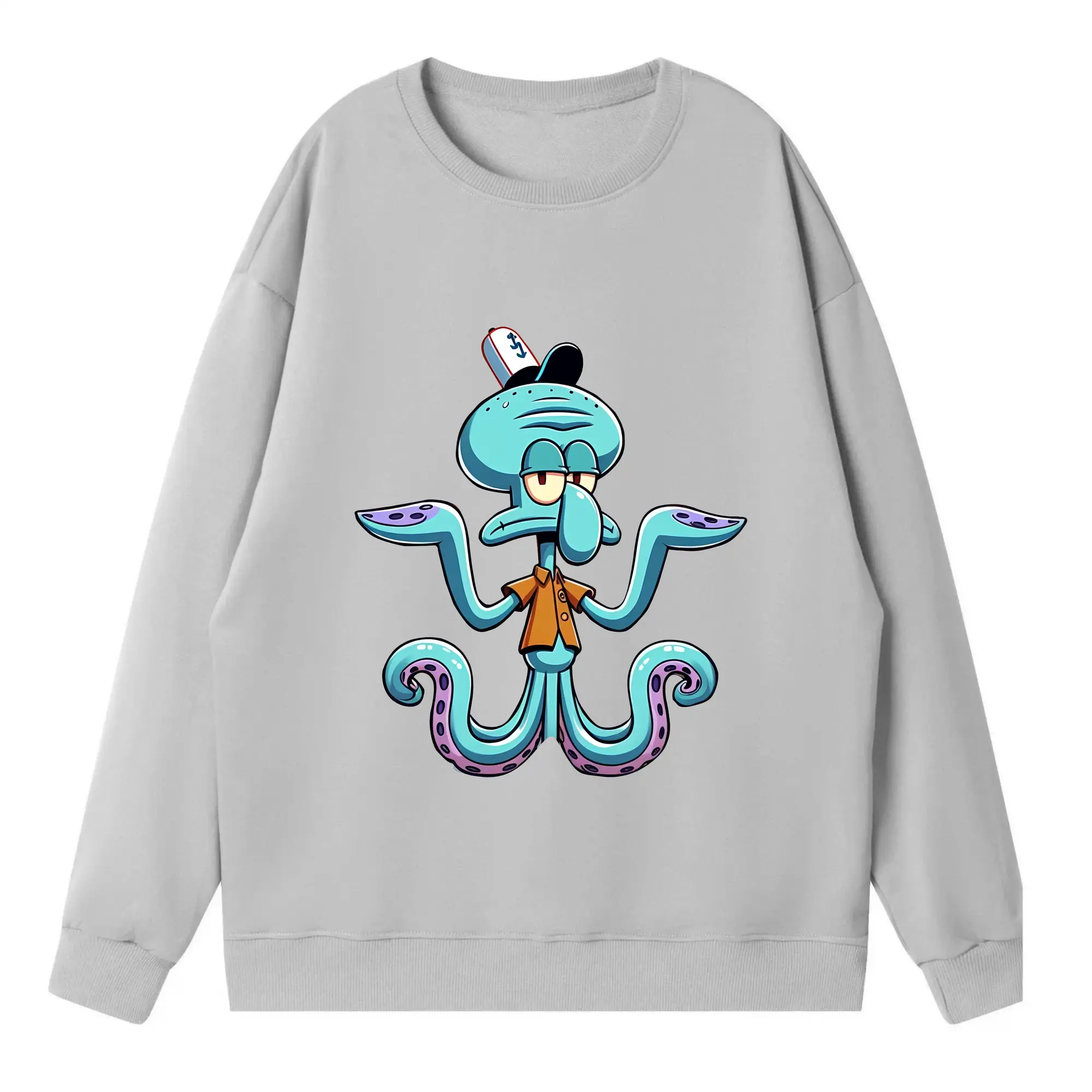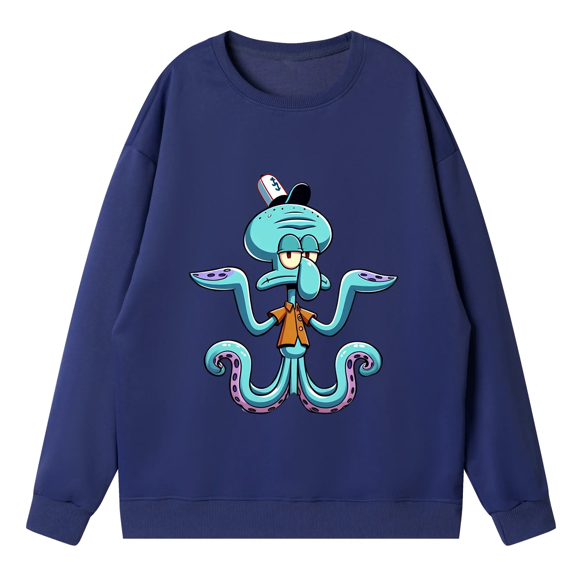 スポンジボブ グッズ イカルド - 高品質 クルーネック スウェット ・ コットン59% ポリエステル41% ・ ユニセックス 長袖 トレーナー ・ カジュアル デイリー スポーツ 散歩用