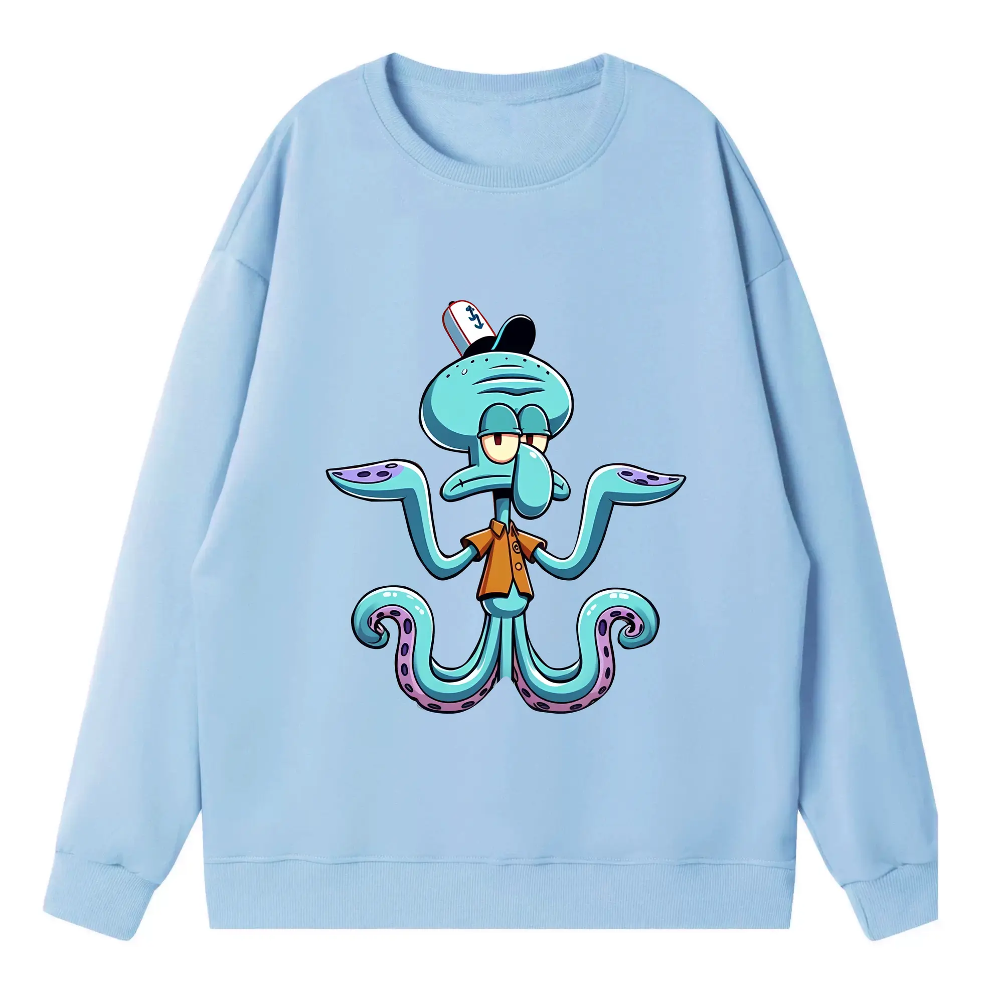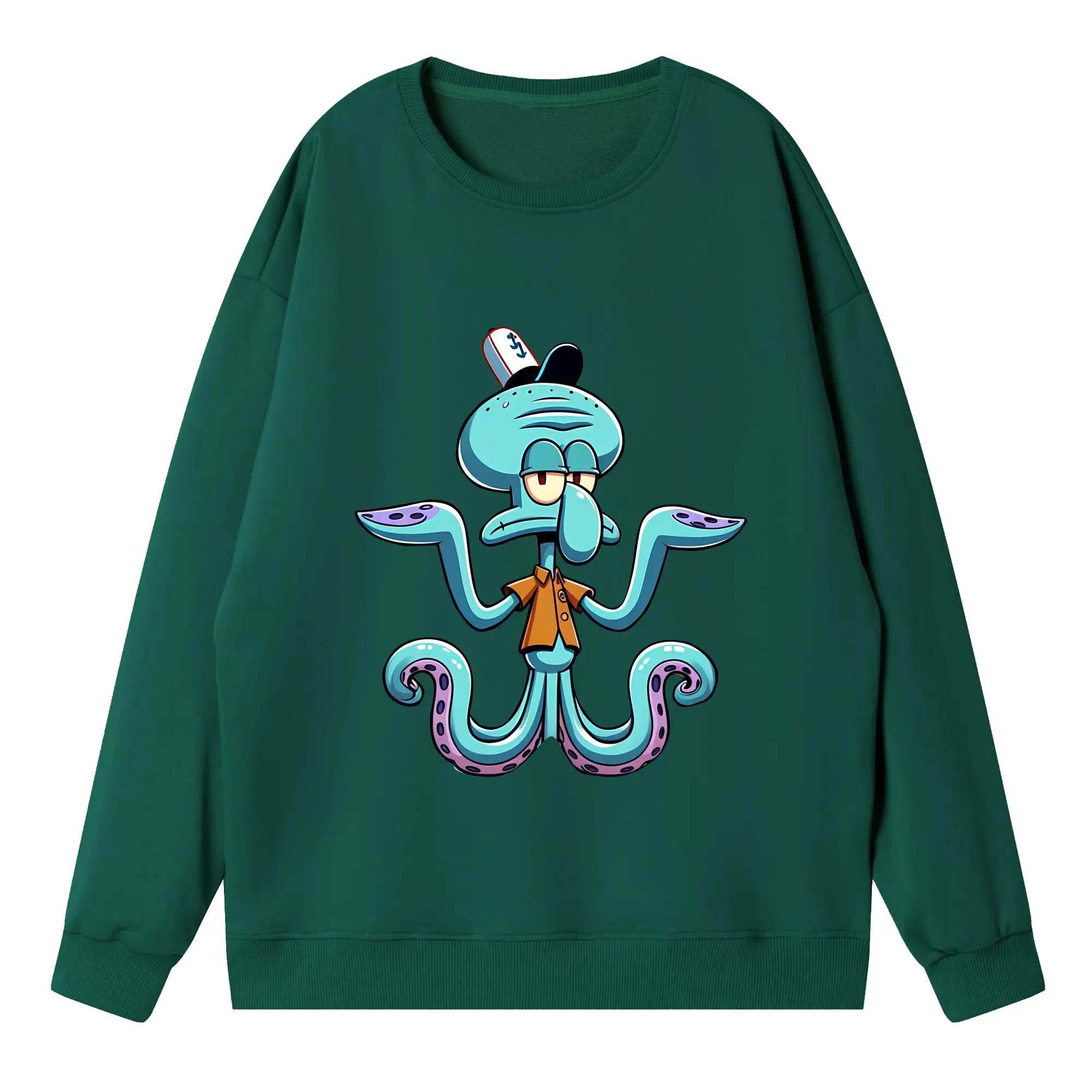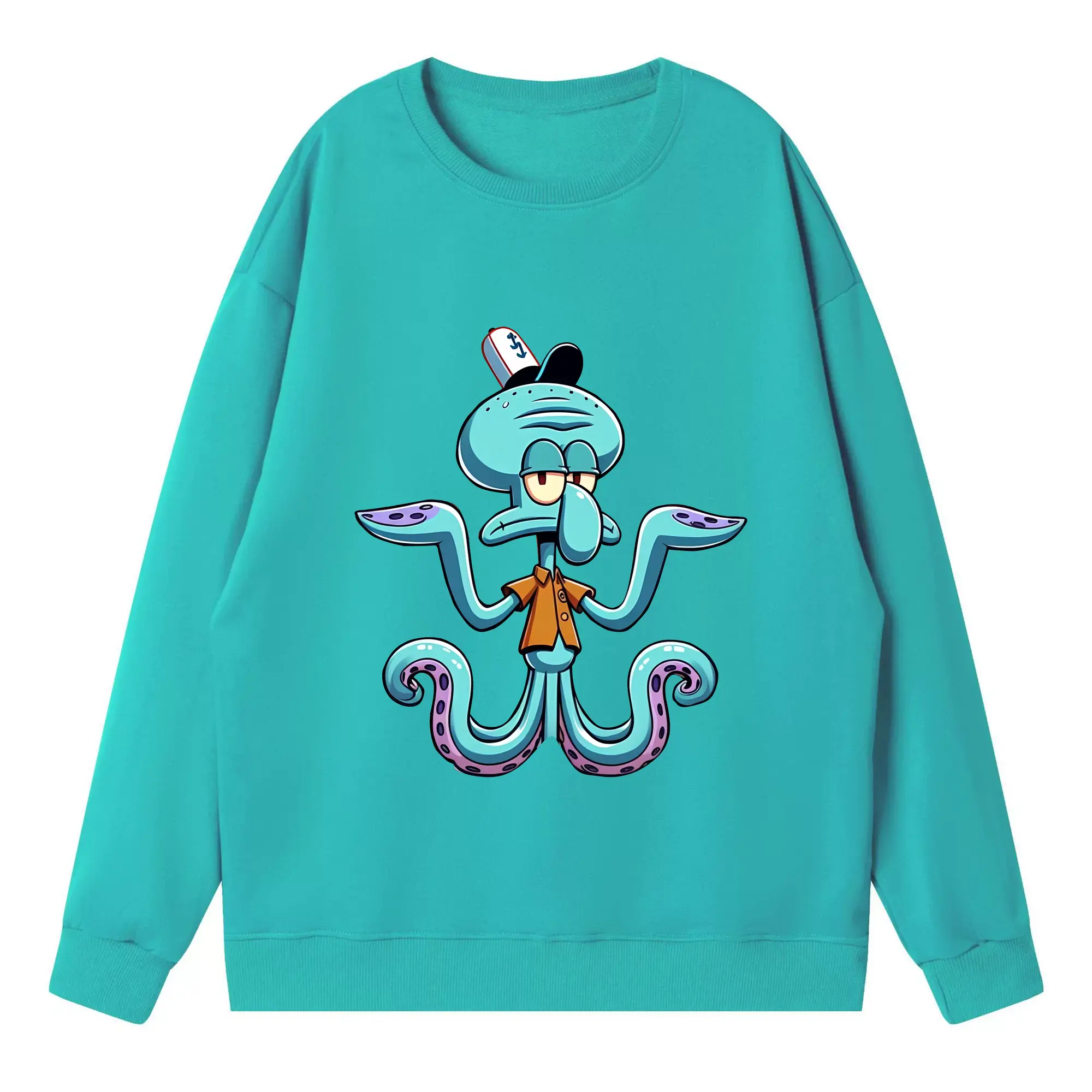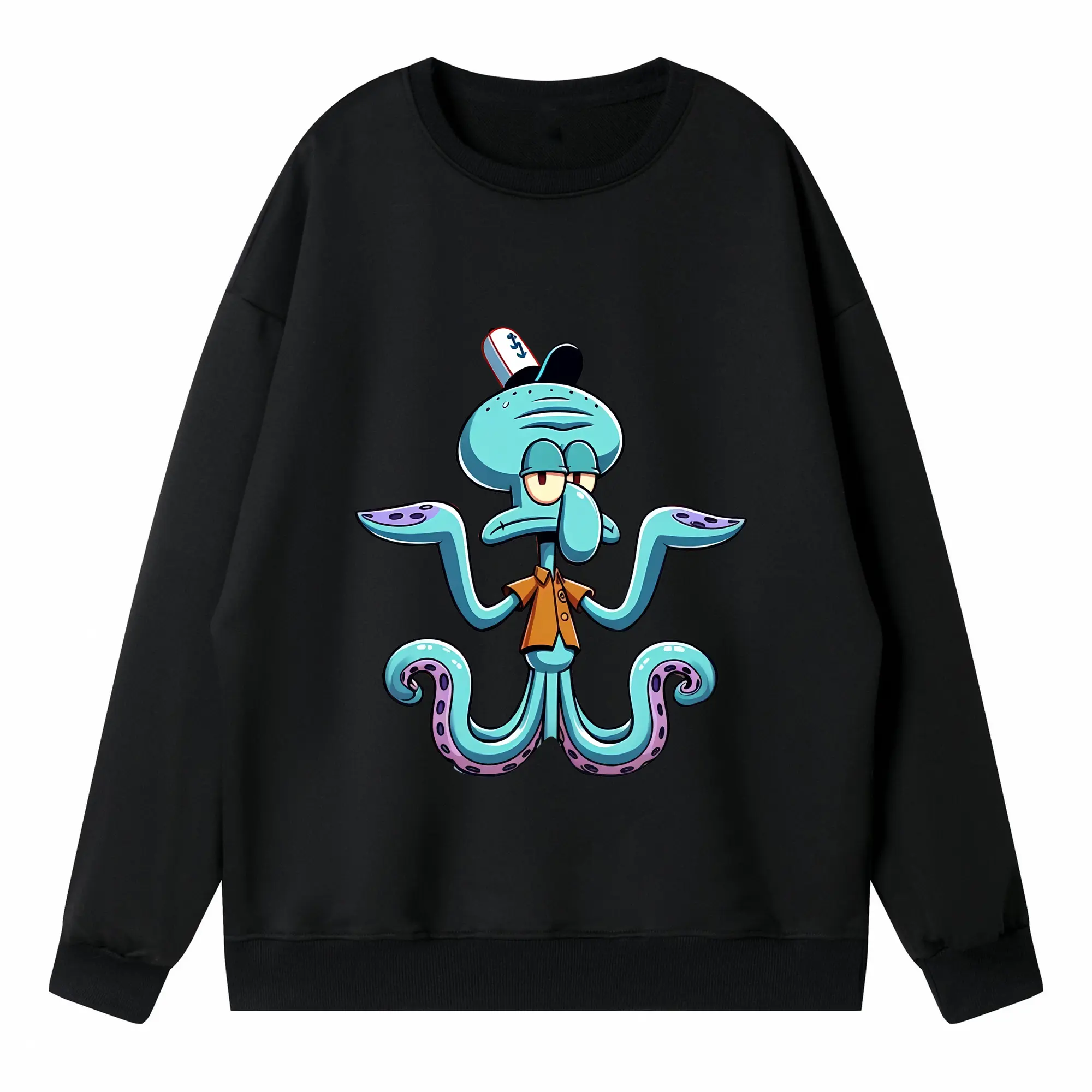 スポンジボブ グッズ イカルド - 高品質 クルーネック スウェット ・ コットン59% ポリエステル41% ・ ユニセックス 長袖 トレーナー ・ カジュアル デイリー スポーツ 散歩用