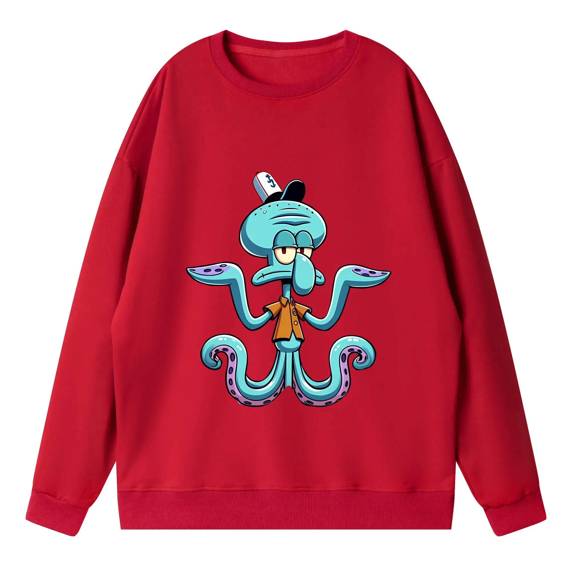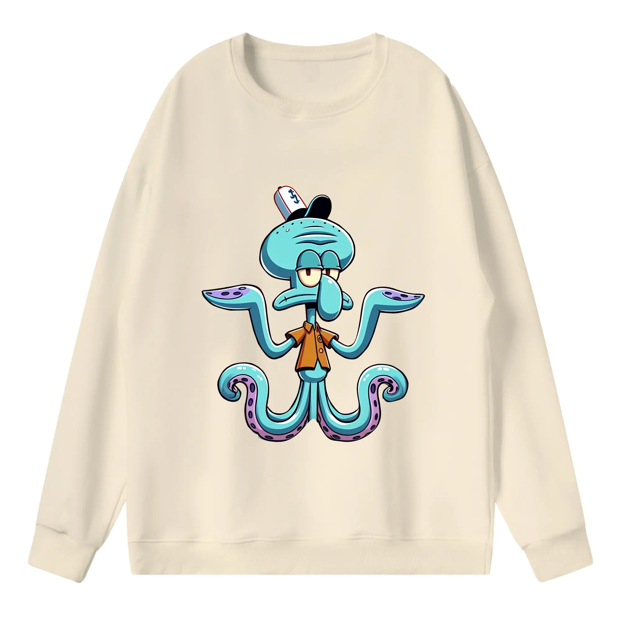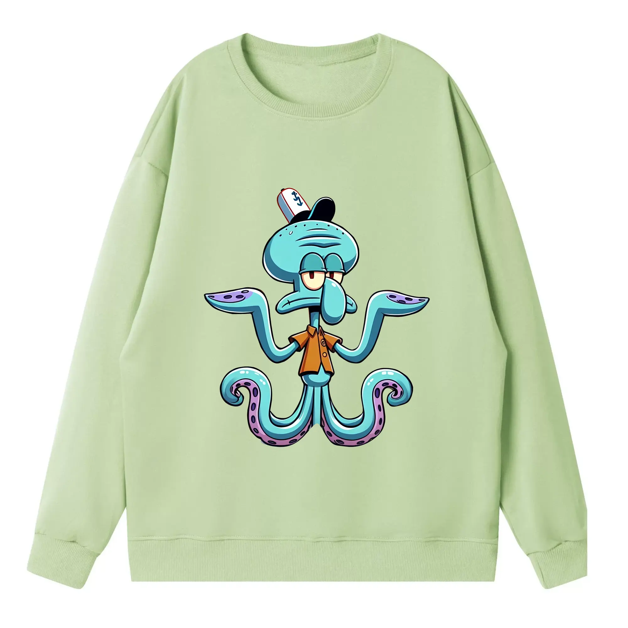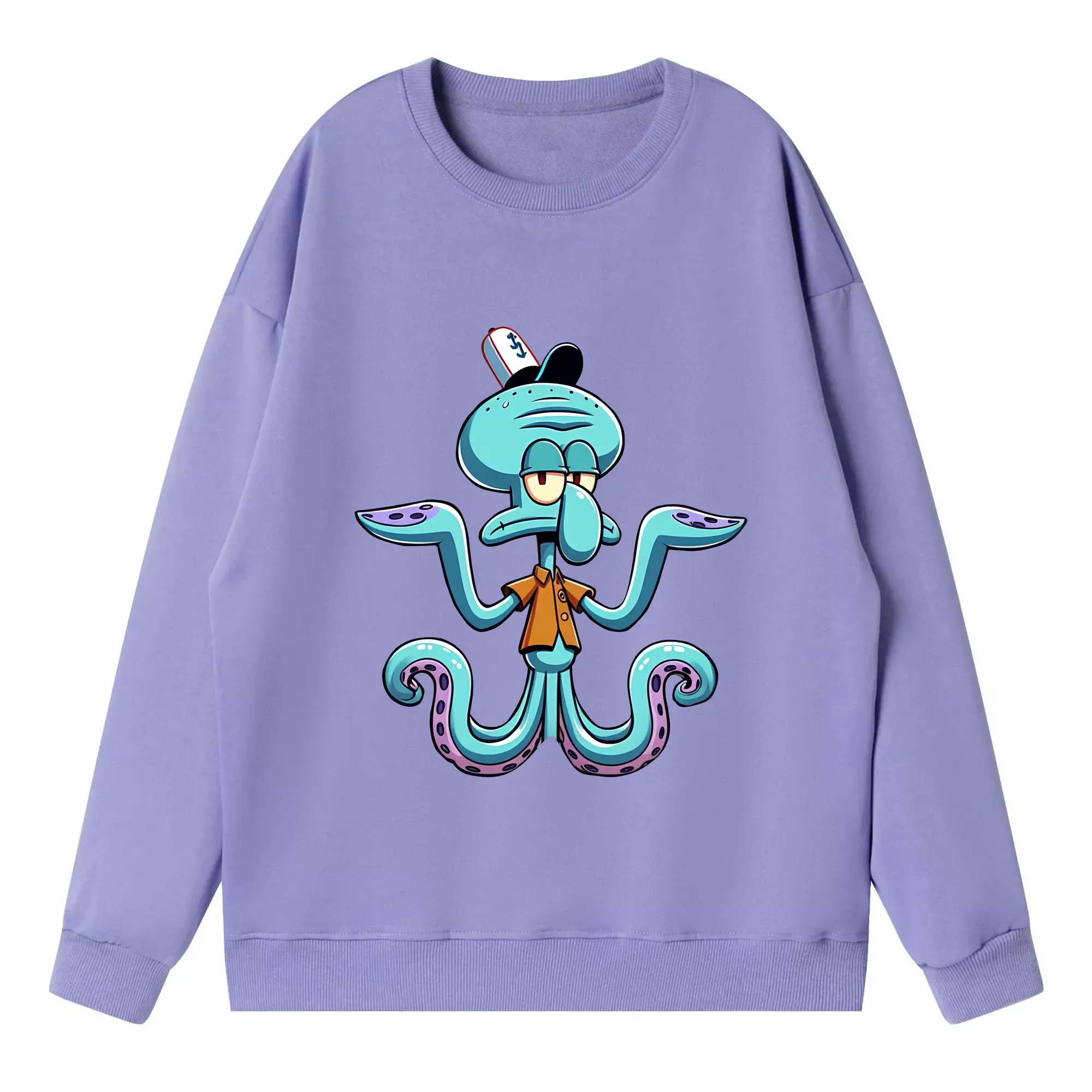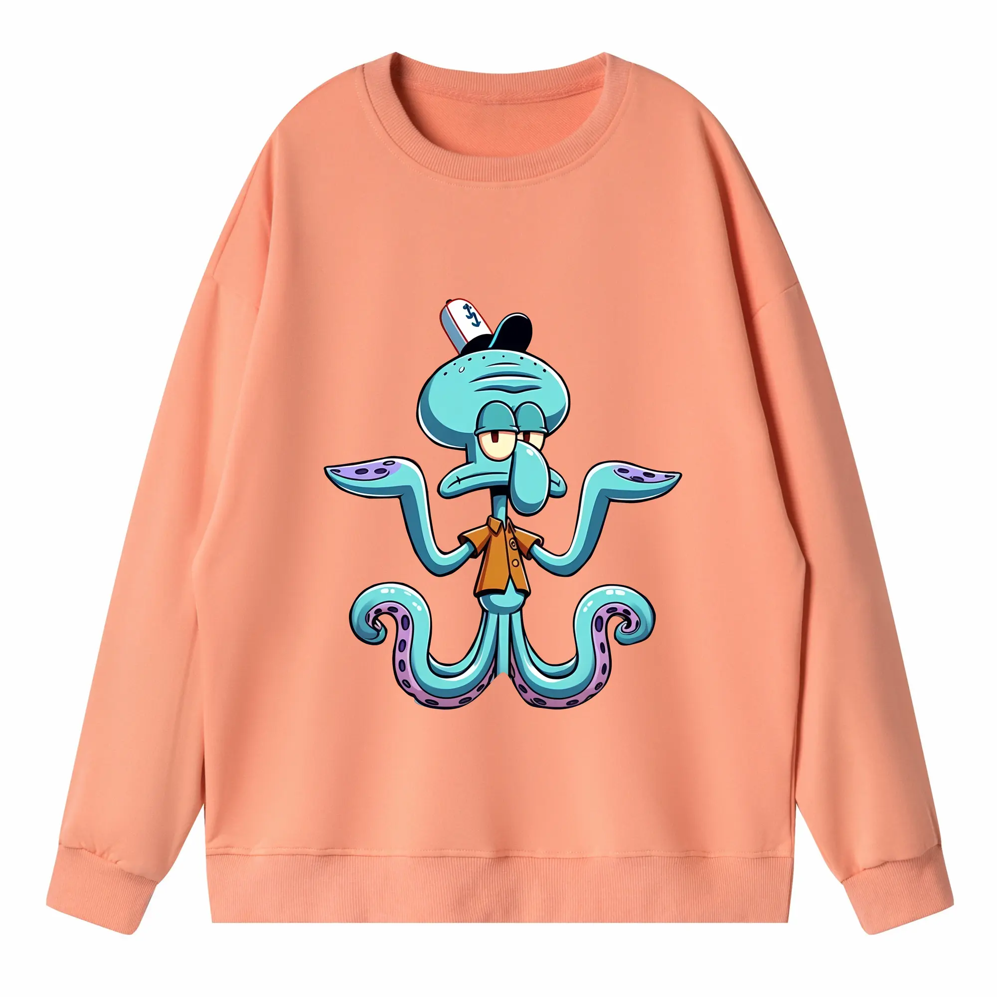 スポンジボブ グッズ イカルド - 高品質 クルーネック スウェット ・ コットン59% ポリエステル41% ・ ユニセックス 長袖 トレーナー ・ カジュアル デイリー スポーツ 散歩用