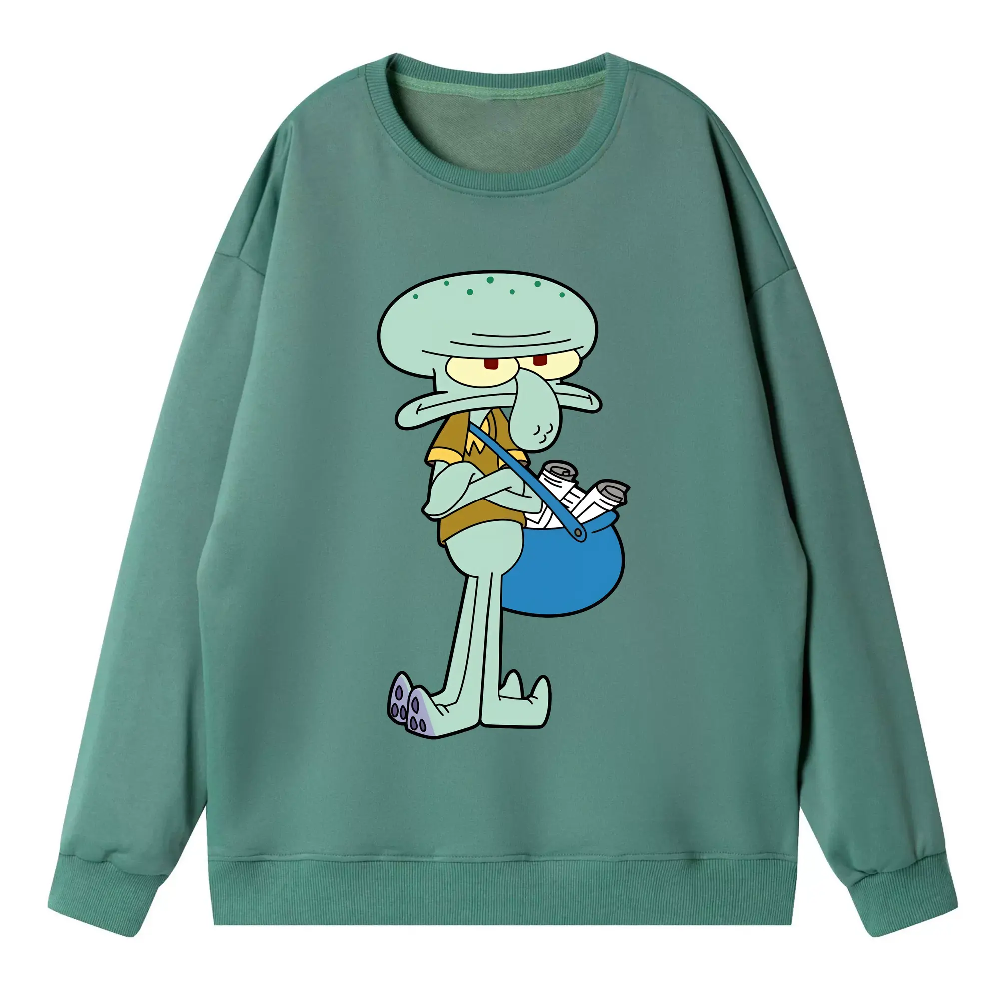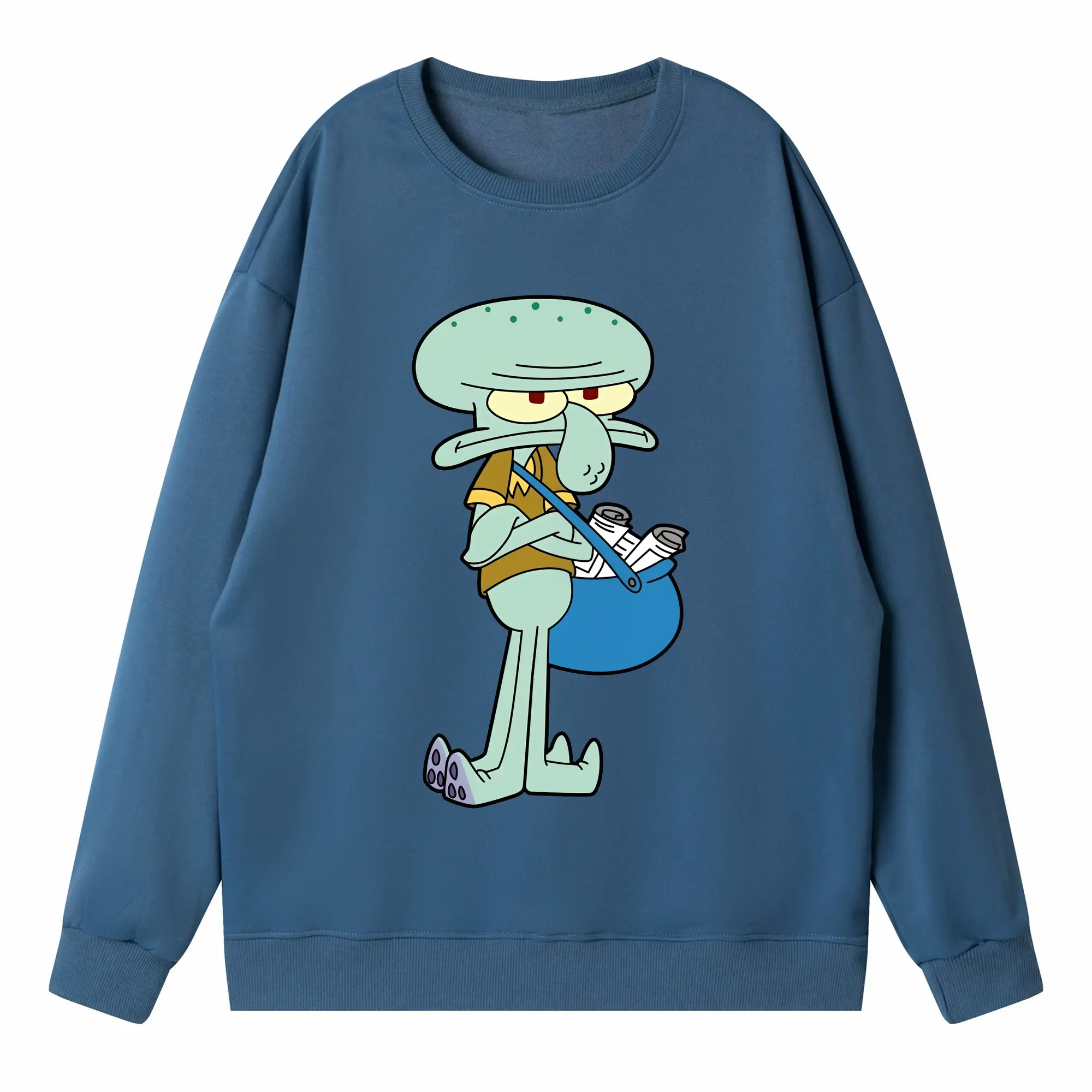 スポンジボブ グッズ イカルド - 高品質 クルーネック スウェット ・ コットン59% ポリエステル41% ・ ユニセックス 長袖 トレーナー ・ カジュアル デイリー スポーツ 散歩用