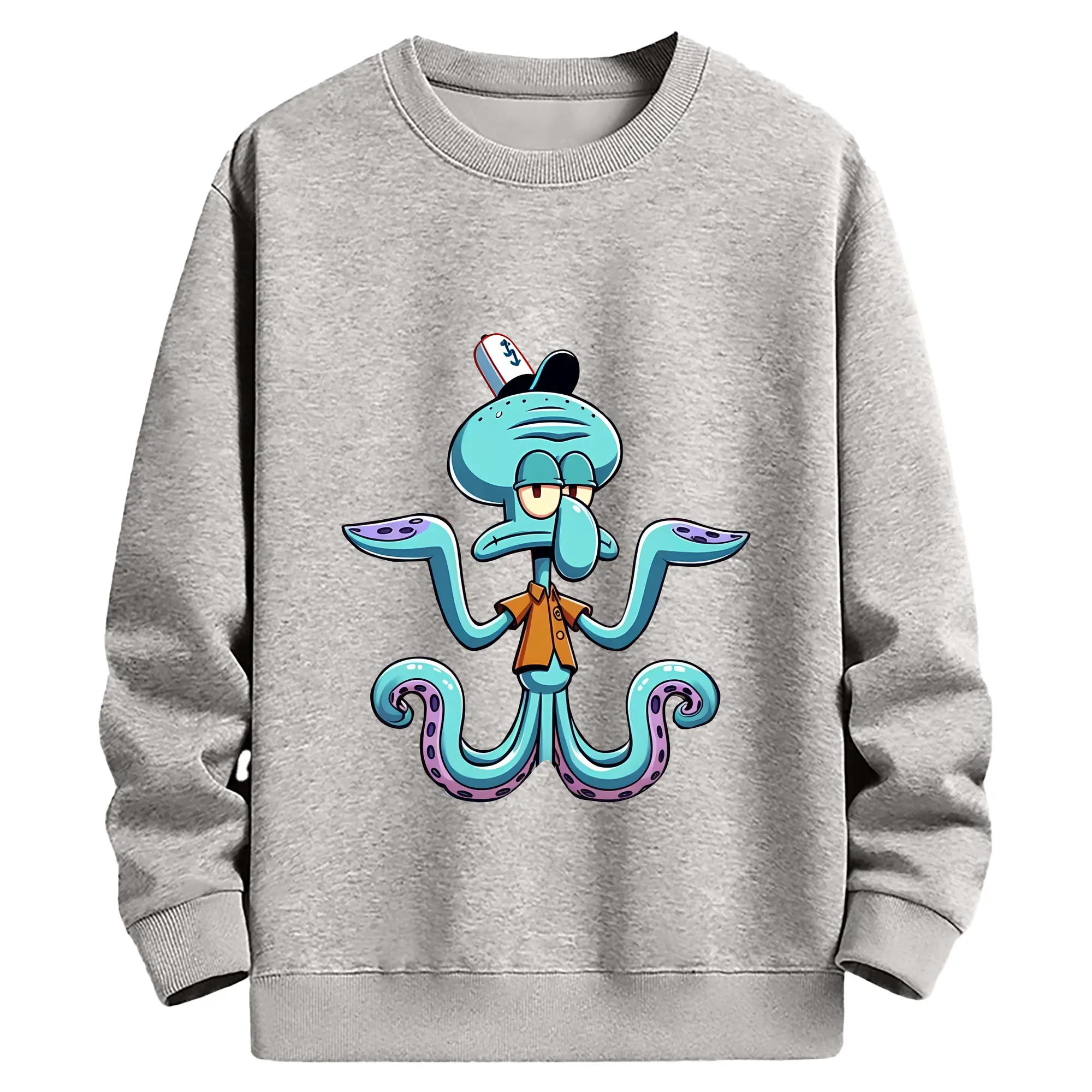 スポンジボブ グッズ イカルド - 高品質 クルーネック スウェット ・ コットン59% ポリエステル41% ・ ユニセックス 長袖 トレーナー ・ カジュアル デイリー スポーツ 散歩用