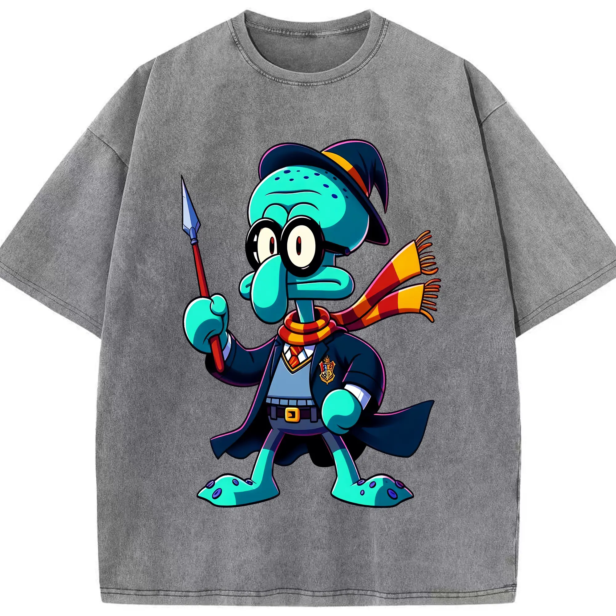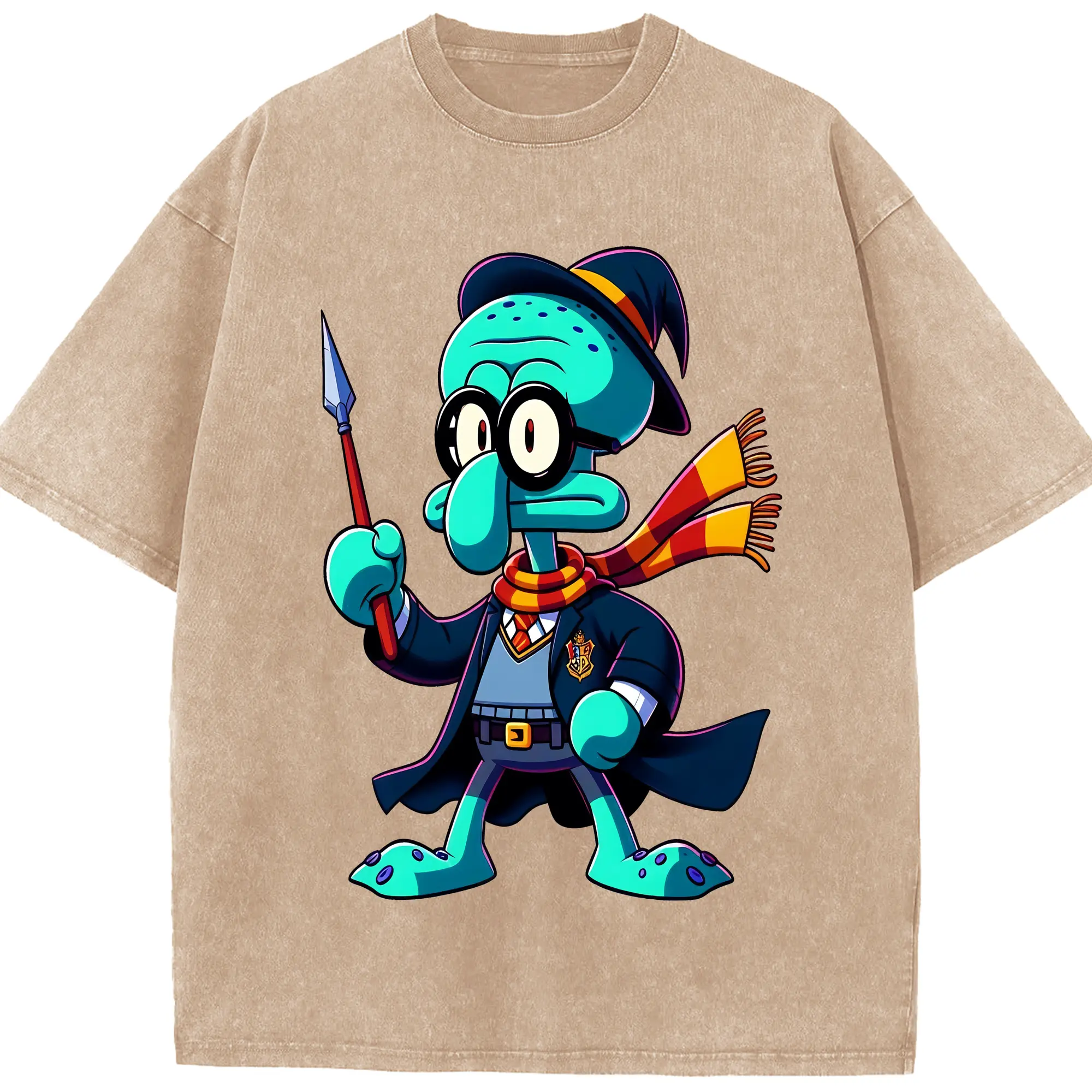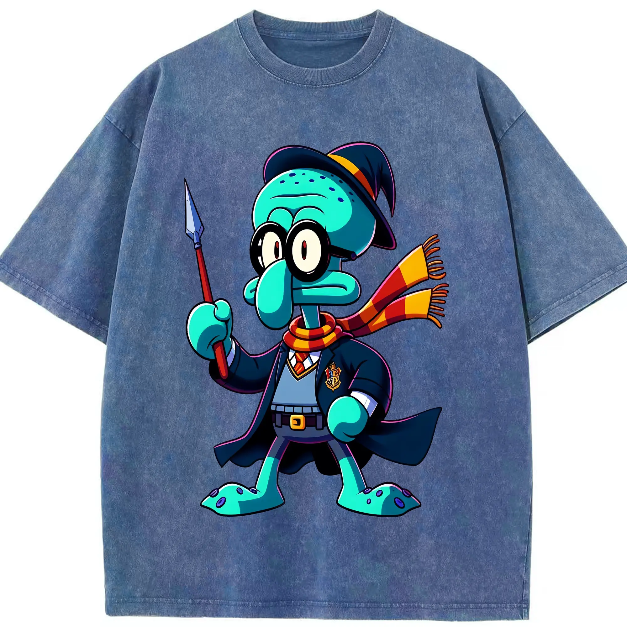 スポンジボブ グッズ イカルド - 綿100% ヴィンテージ風 半袖Tシャツ ・ 背面プリント ・ 柔らか肌触り ・ 通気性 快適 ・ スポーツ カジュアル 外出用