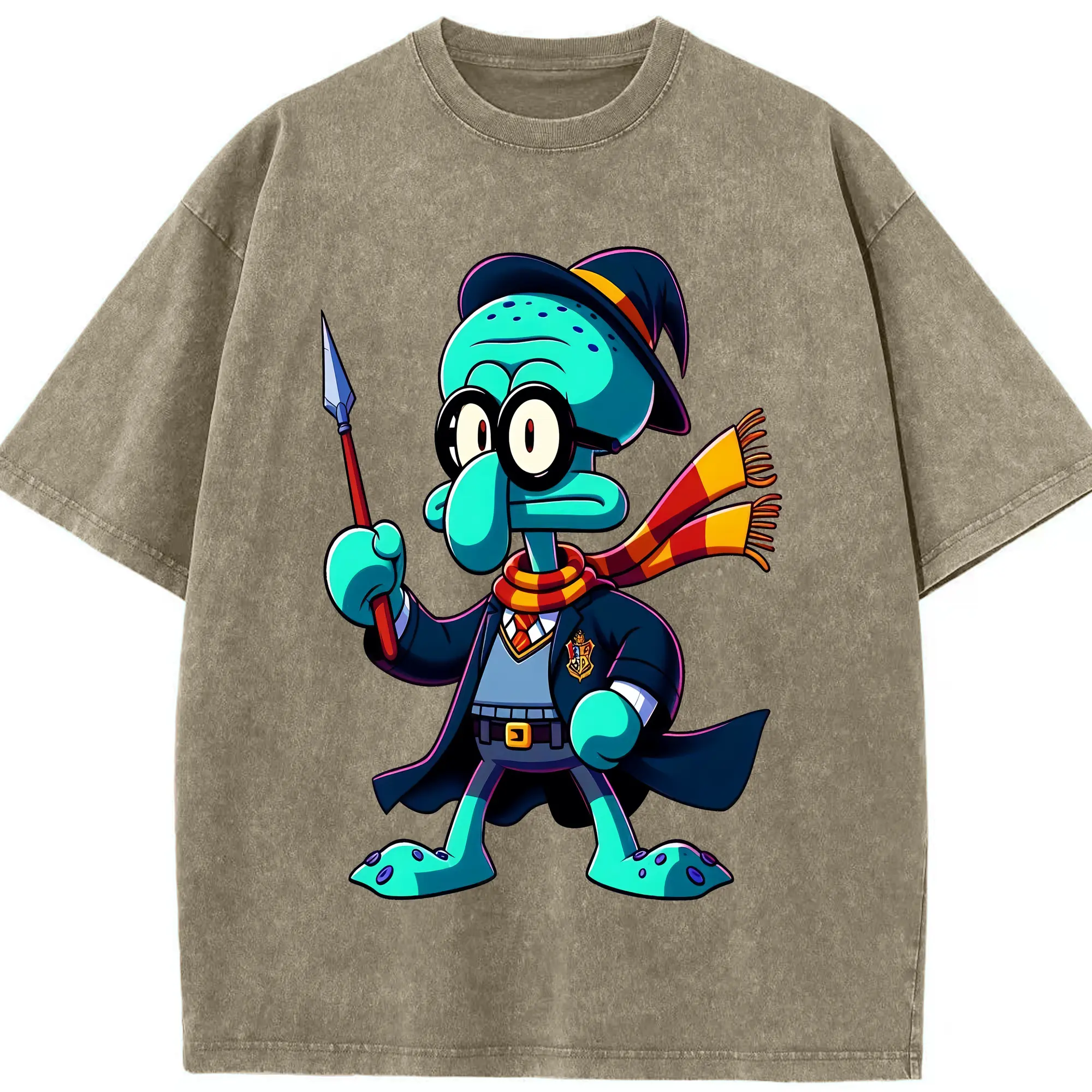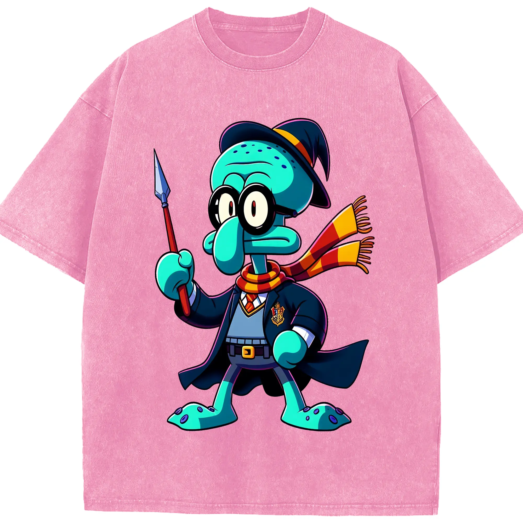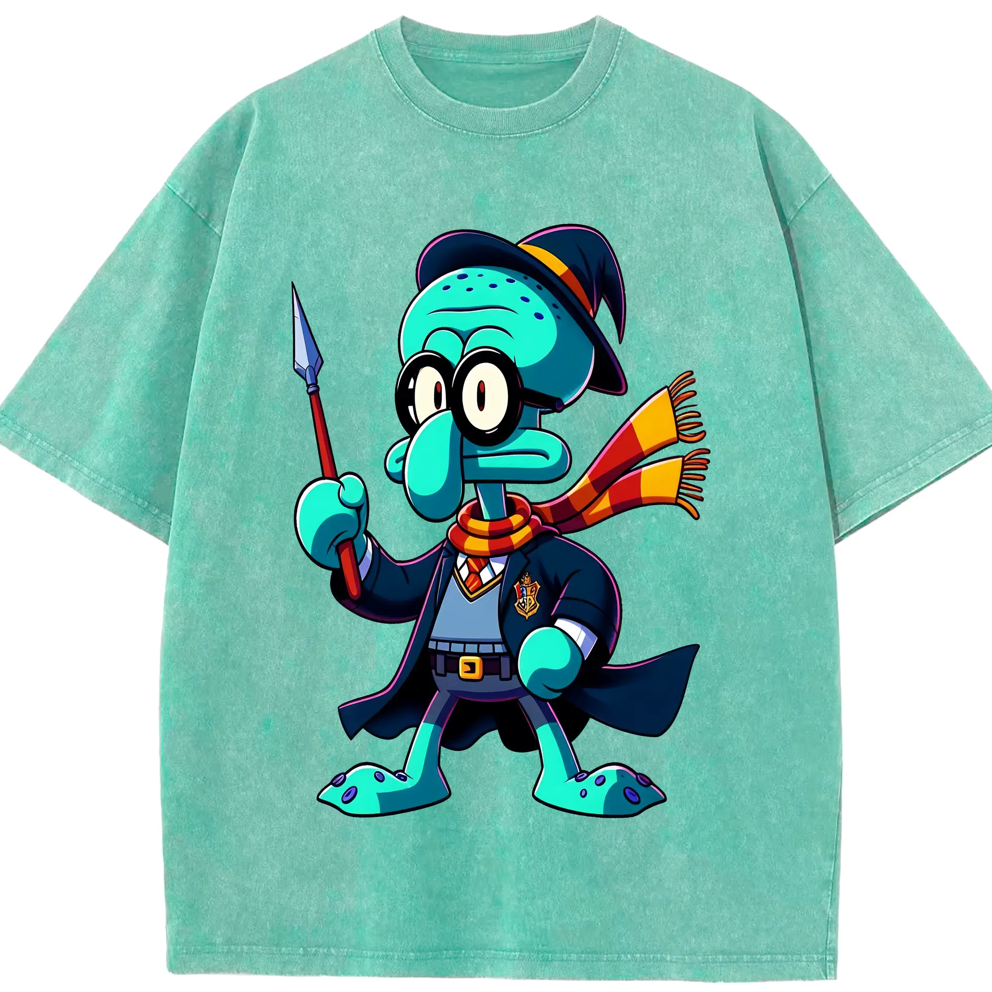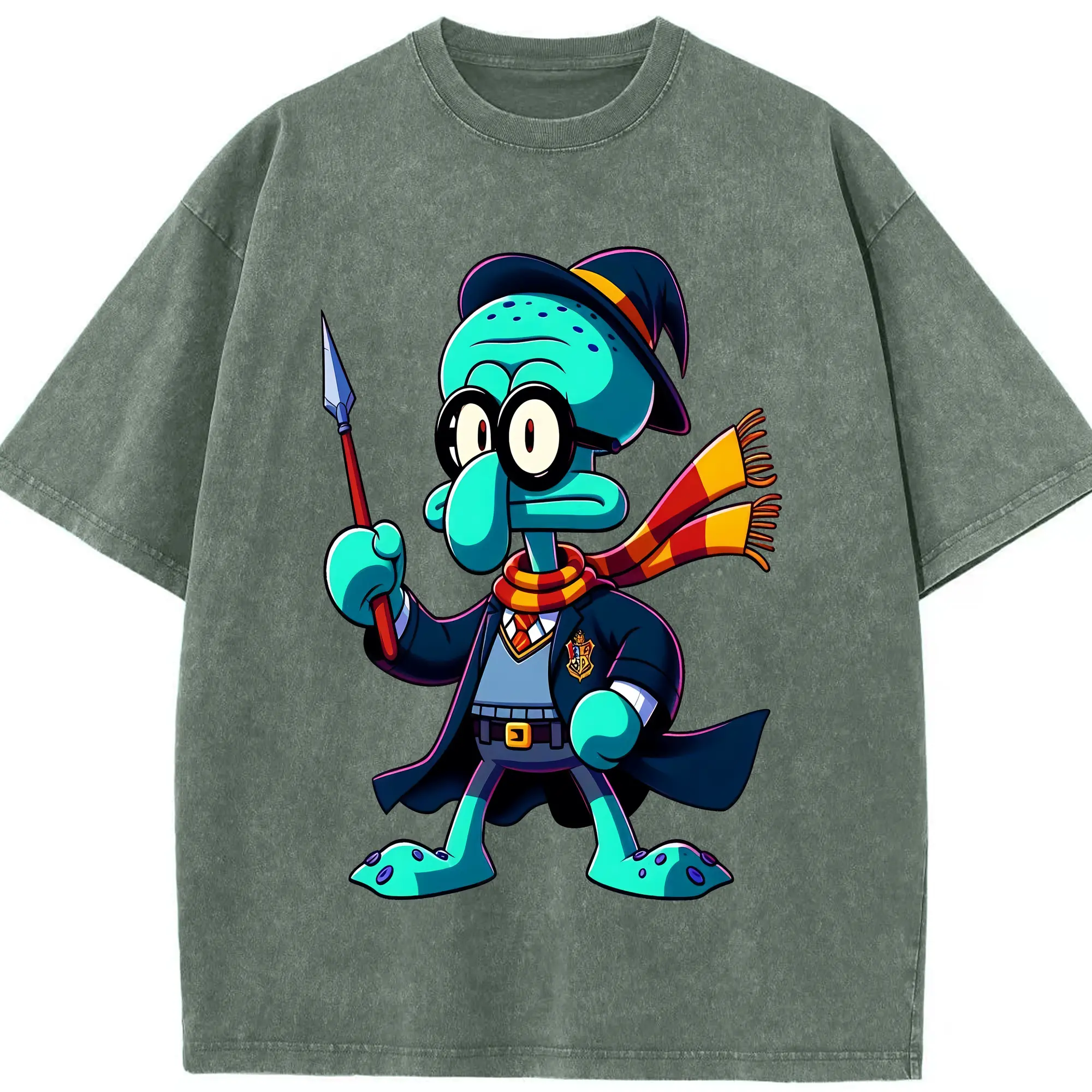スポンジボブ グッズ イカルド - 綿100% ヴィンテージ風 半袖Tシャツ ・ 背面プリント ・ 柔らか肌触り ・ 通気性 快適 ・ スポーツ カジュアル 外出用