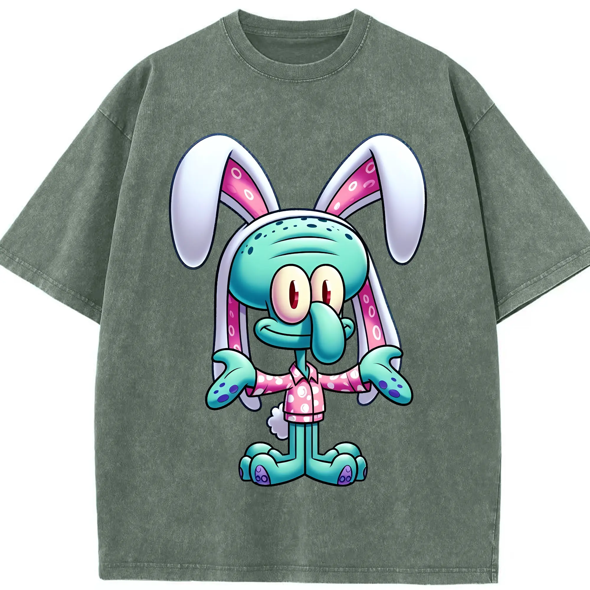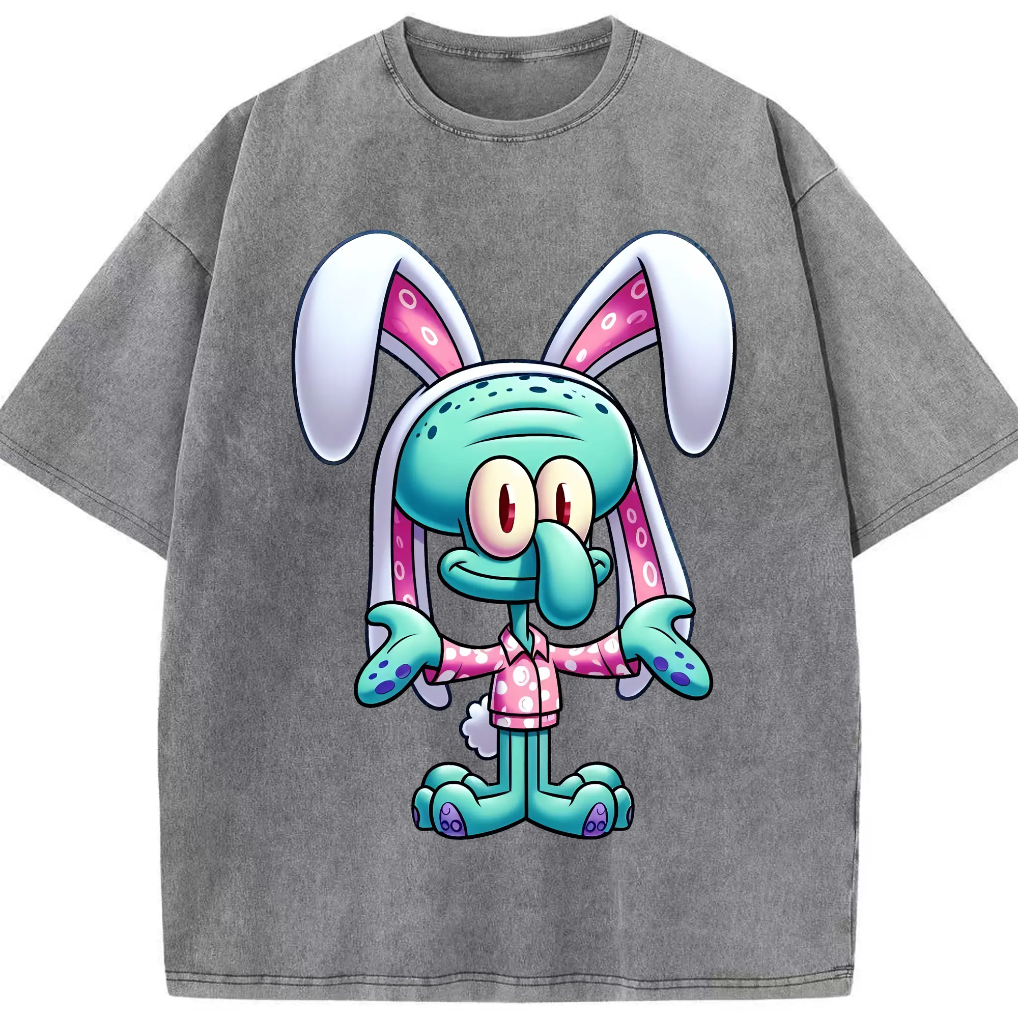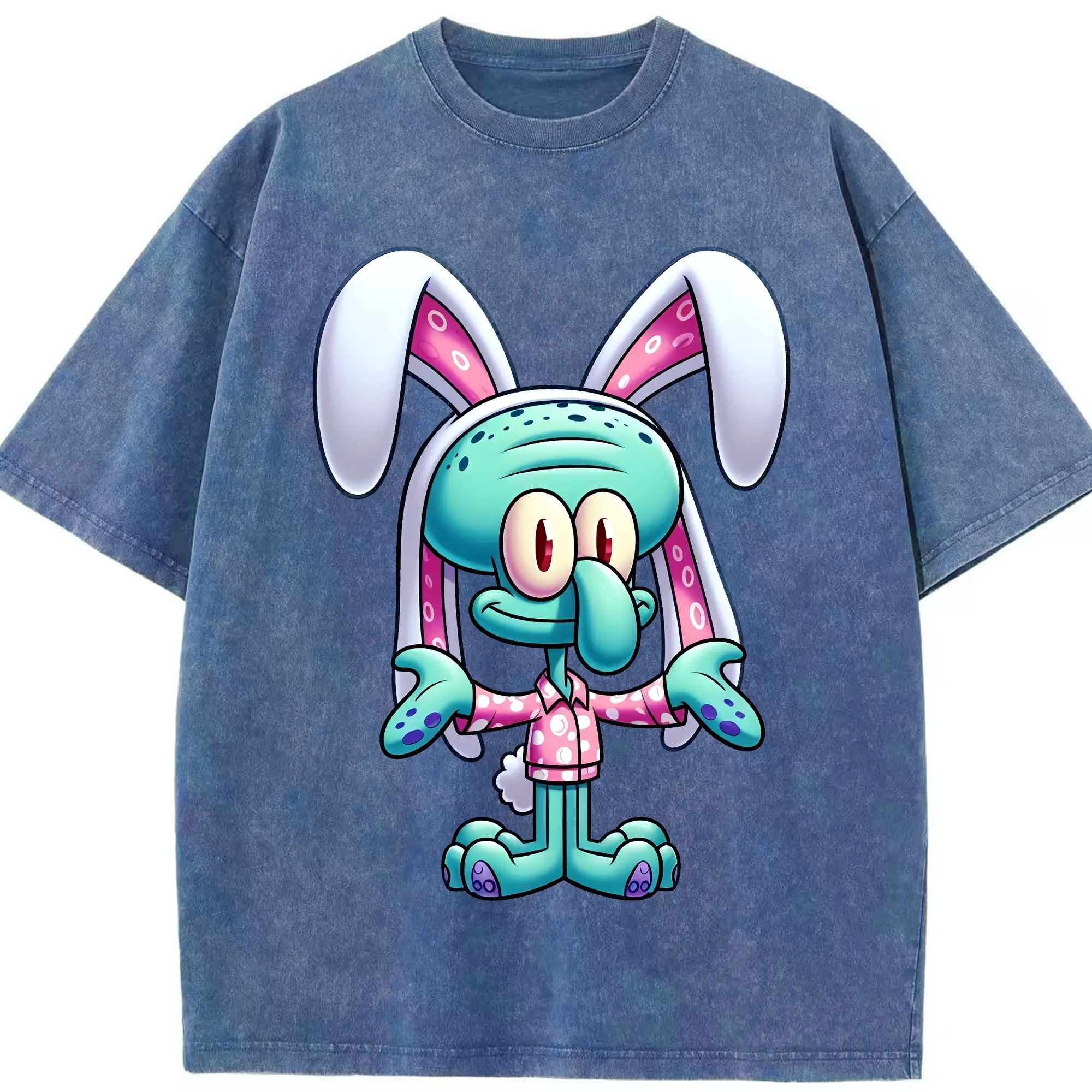 スポンジボブ グッズ イカルド - 綿100% ヴィンテージ風 半袖Tシャツ ・ 背面プリント ・ 柔らか肌触り ・ 通気性 快適 ・ スポーツ カジュアル 外出用