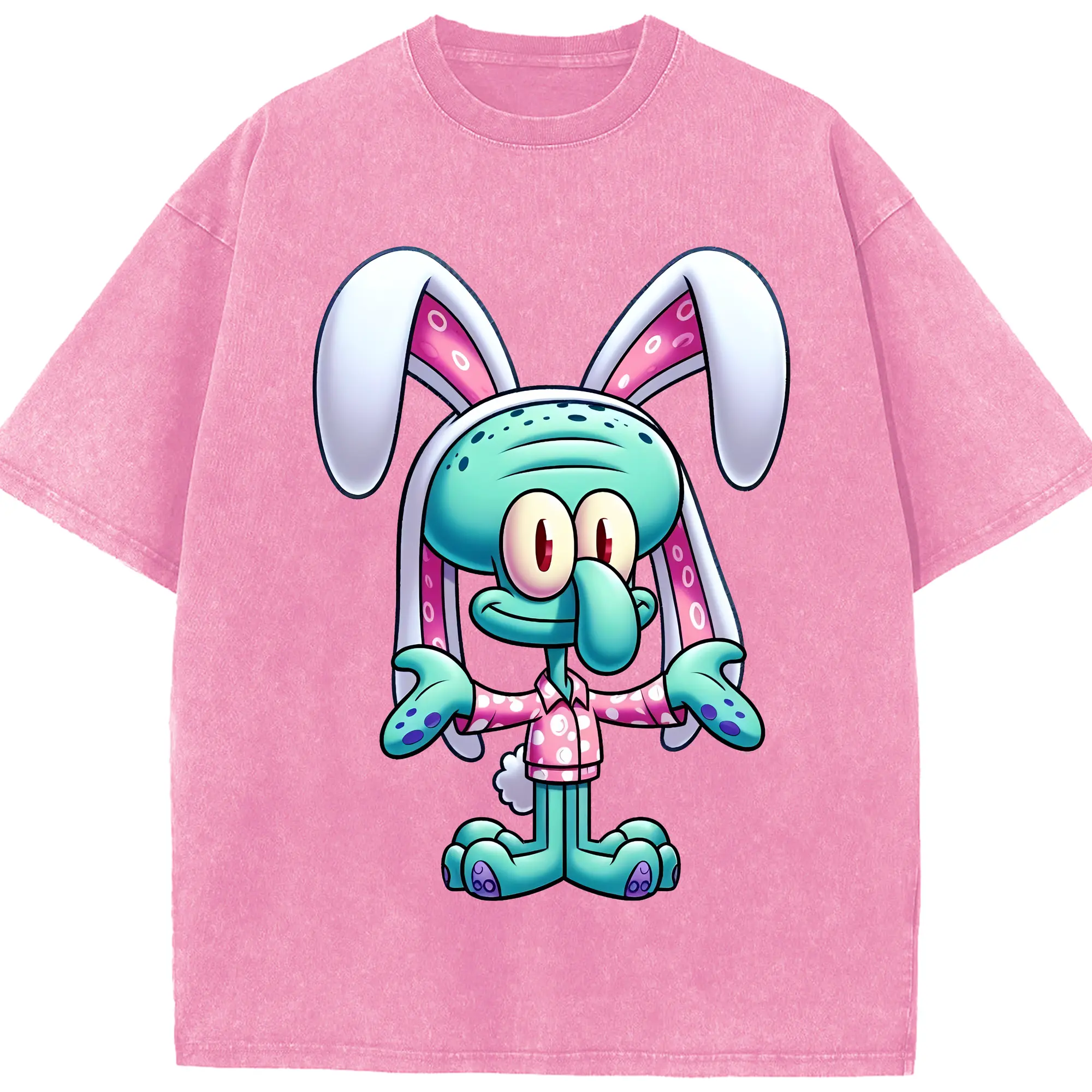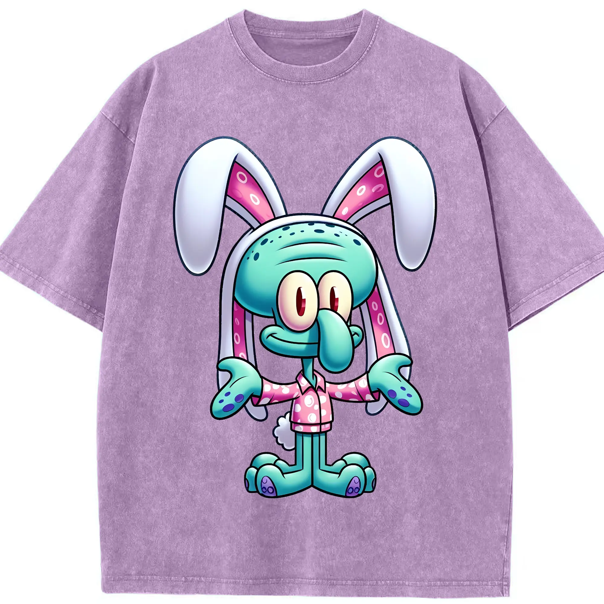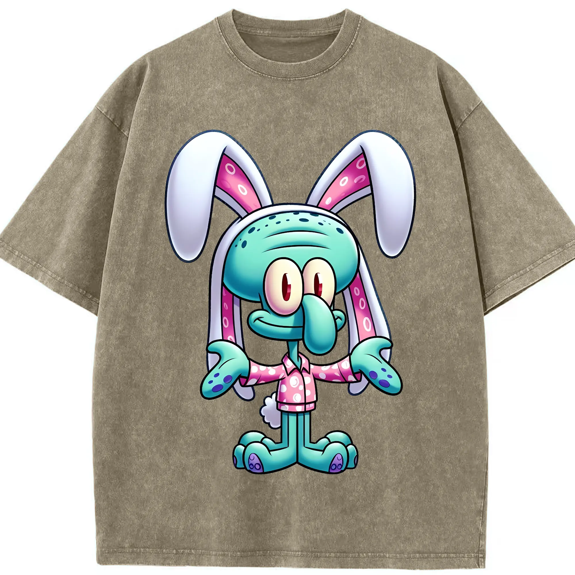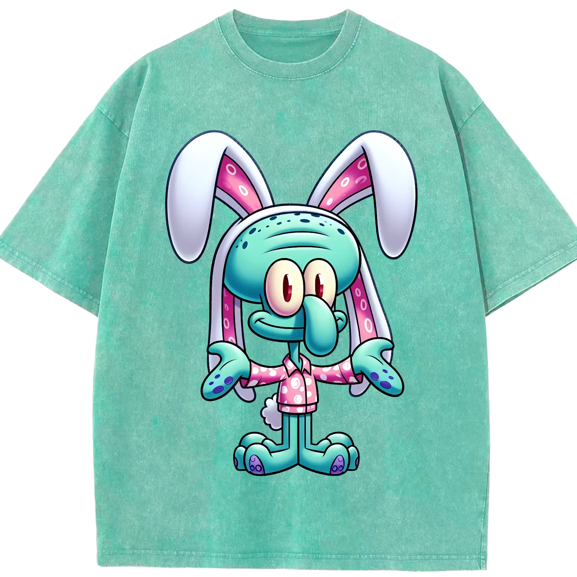 スポンジボブ グッズ イカルド - 綿100% ヴィンテージ風 半袖Tシャツ ・ 背面プリント ・ 柔らか肌触り ・ 通気性 快適 ・ スポーツ カジュアル 外出用