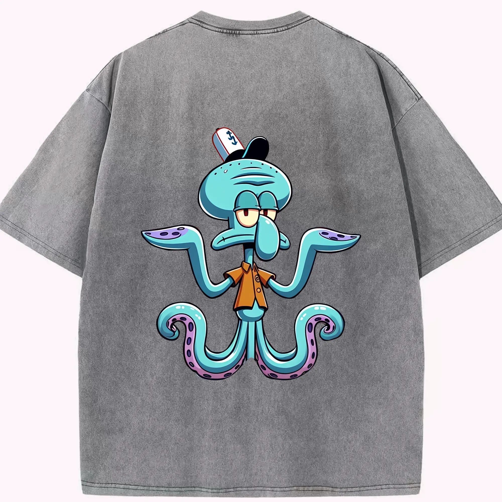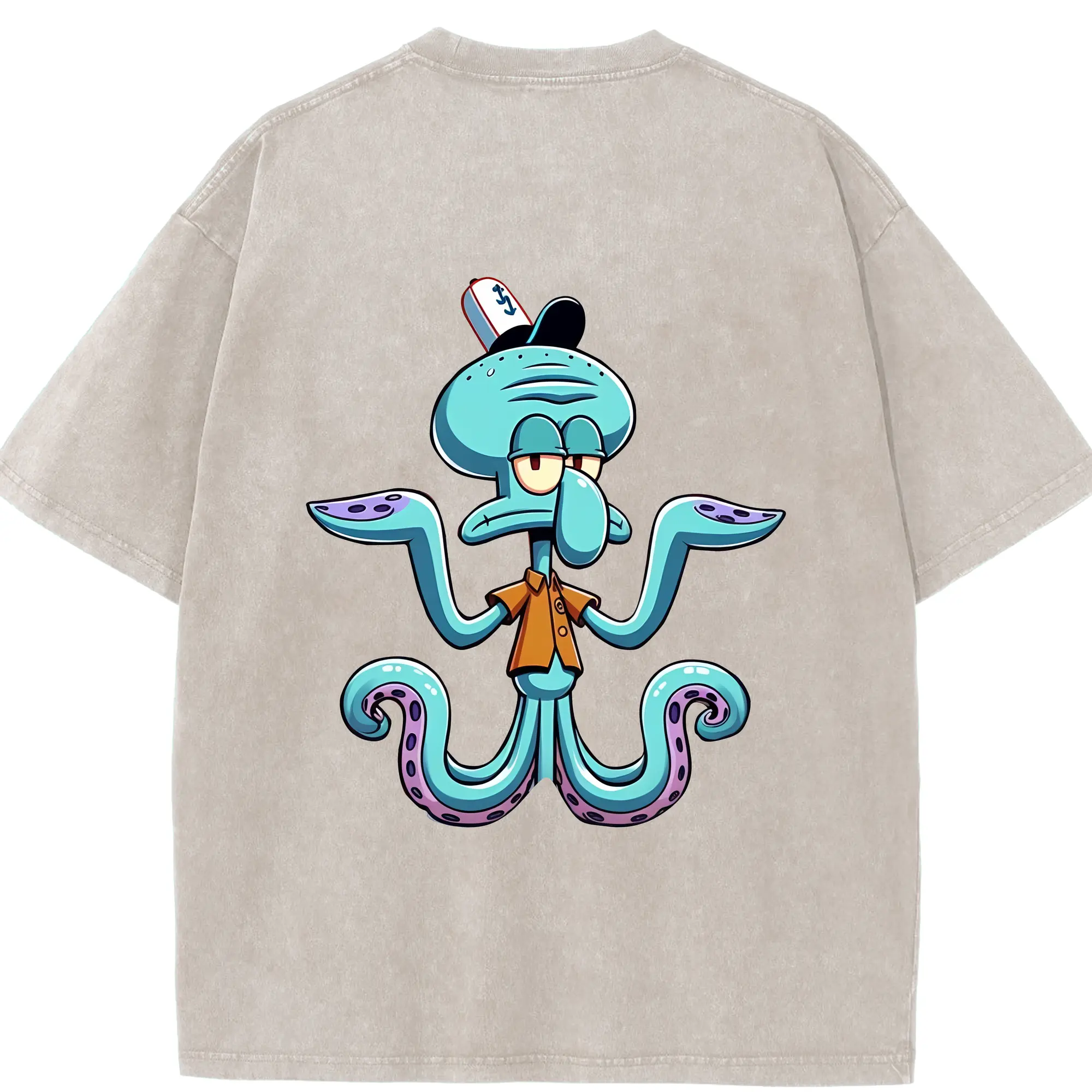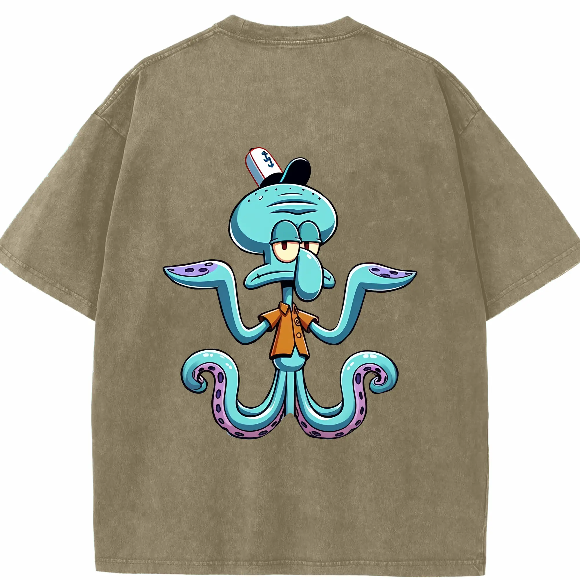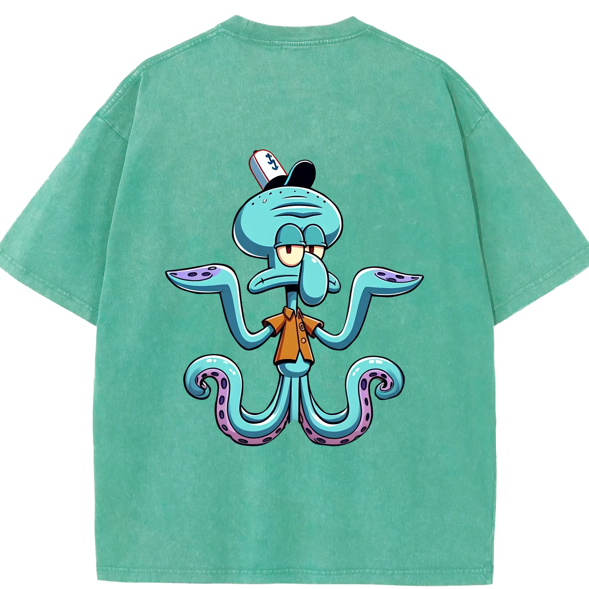 スポンジボブ グッズ イカルド - 綿100% ヴィンテージ風 半袖Tシャツ ・ フロントプリント ・ 柔らか肌触り ・ 通気性 快適 ・ スポーツ カジュアル 外出用