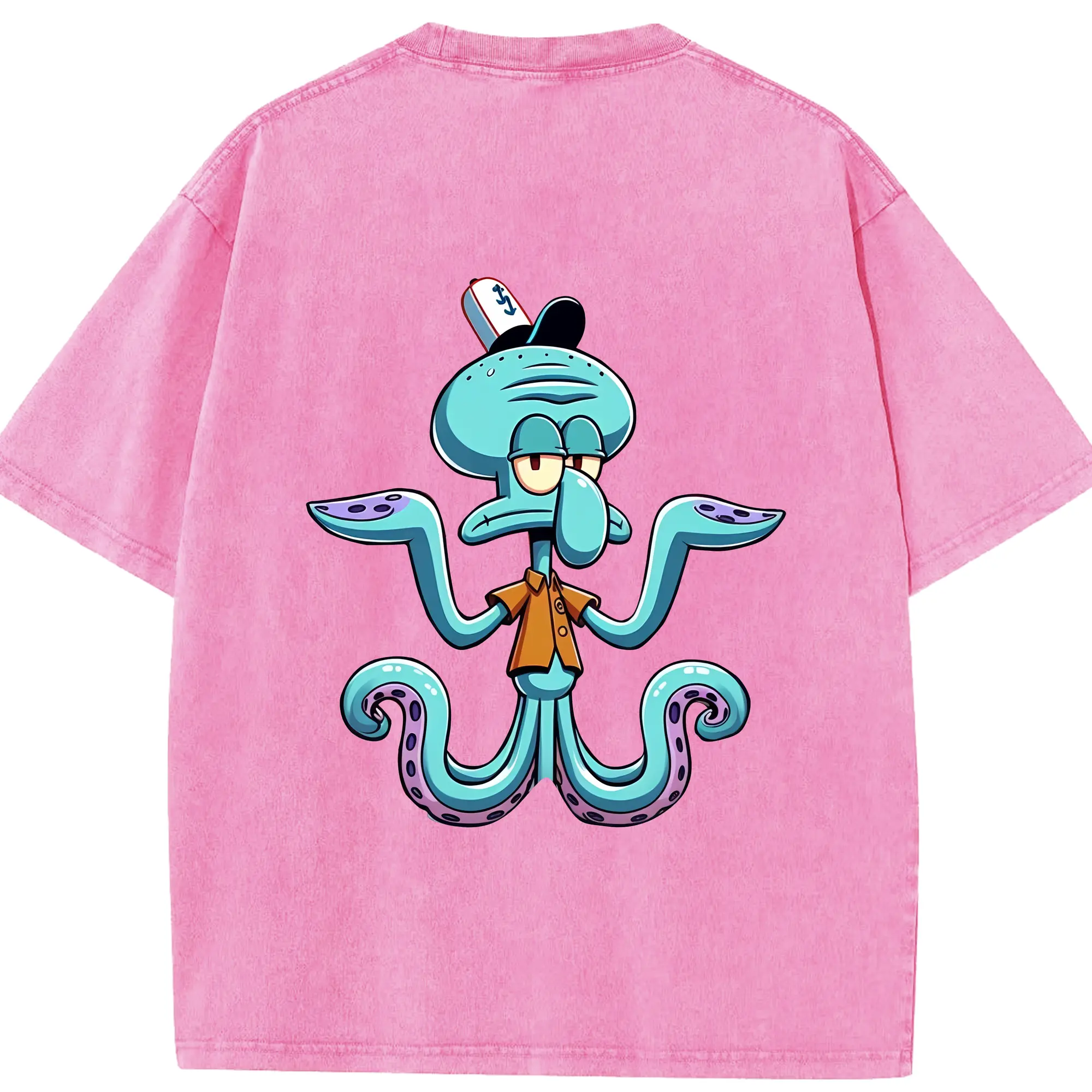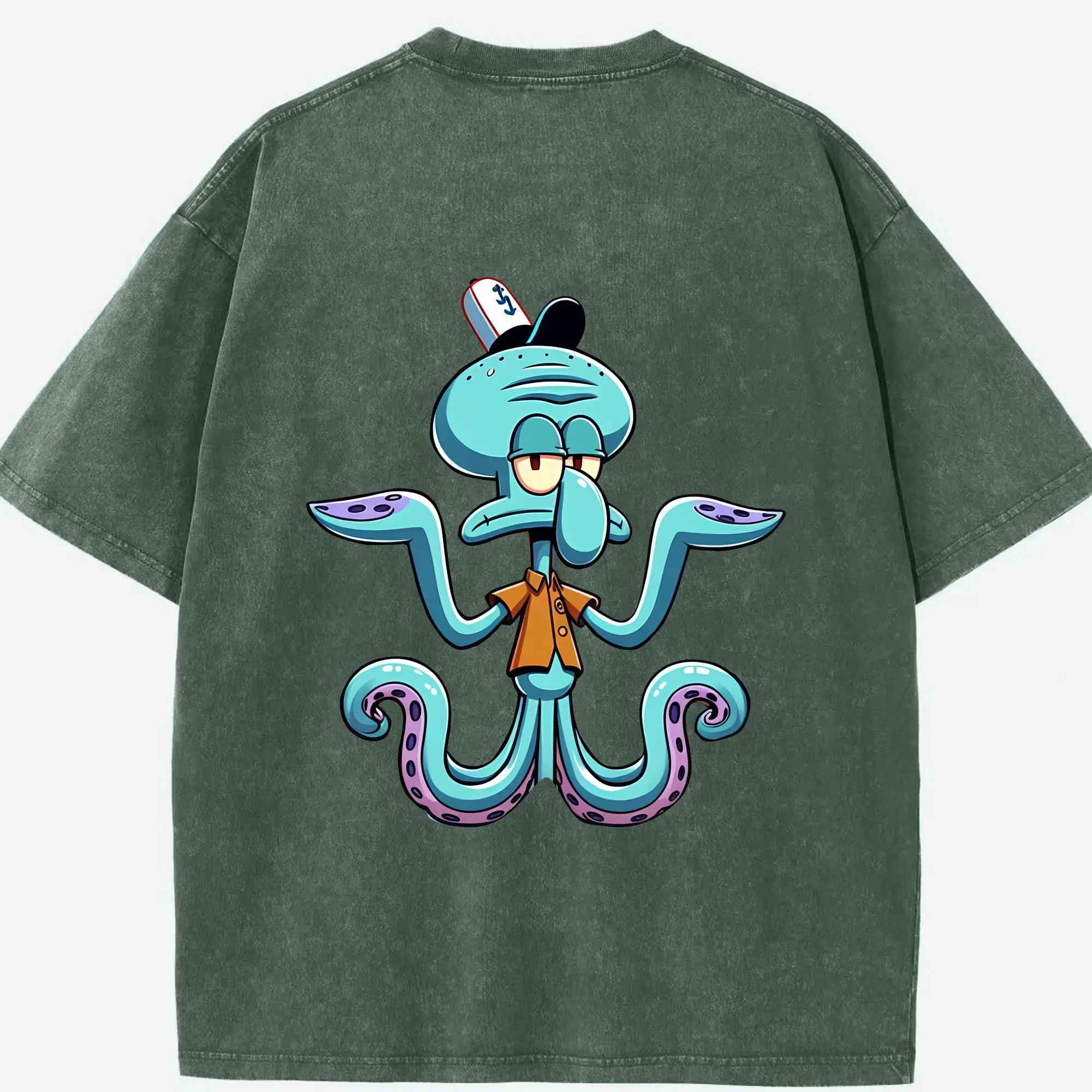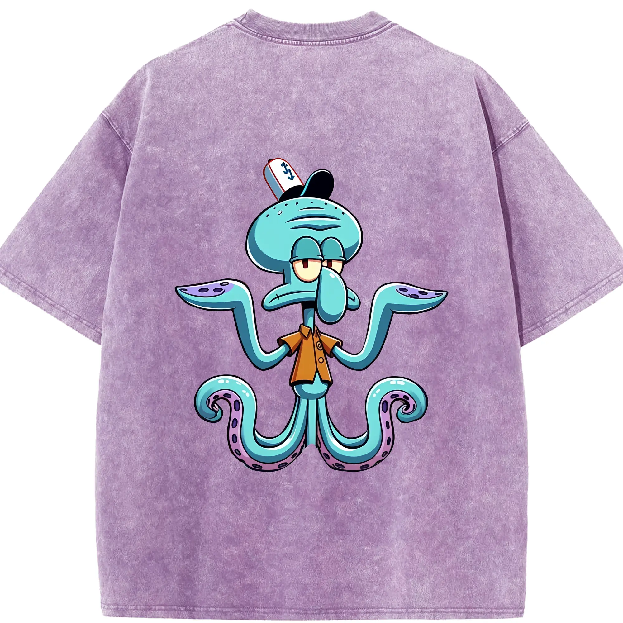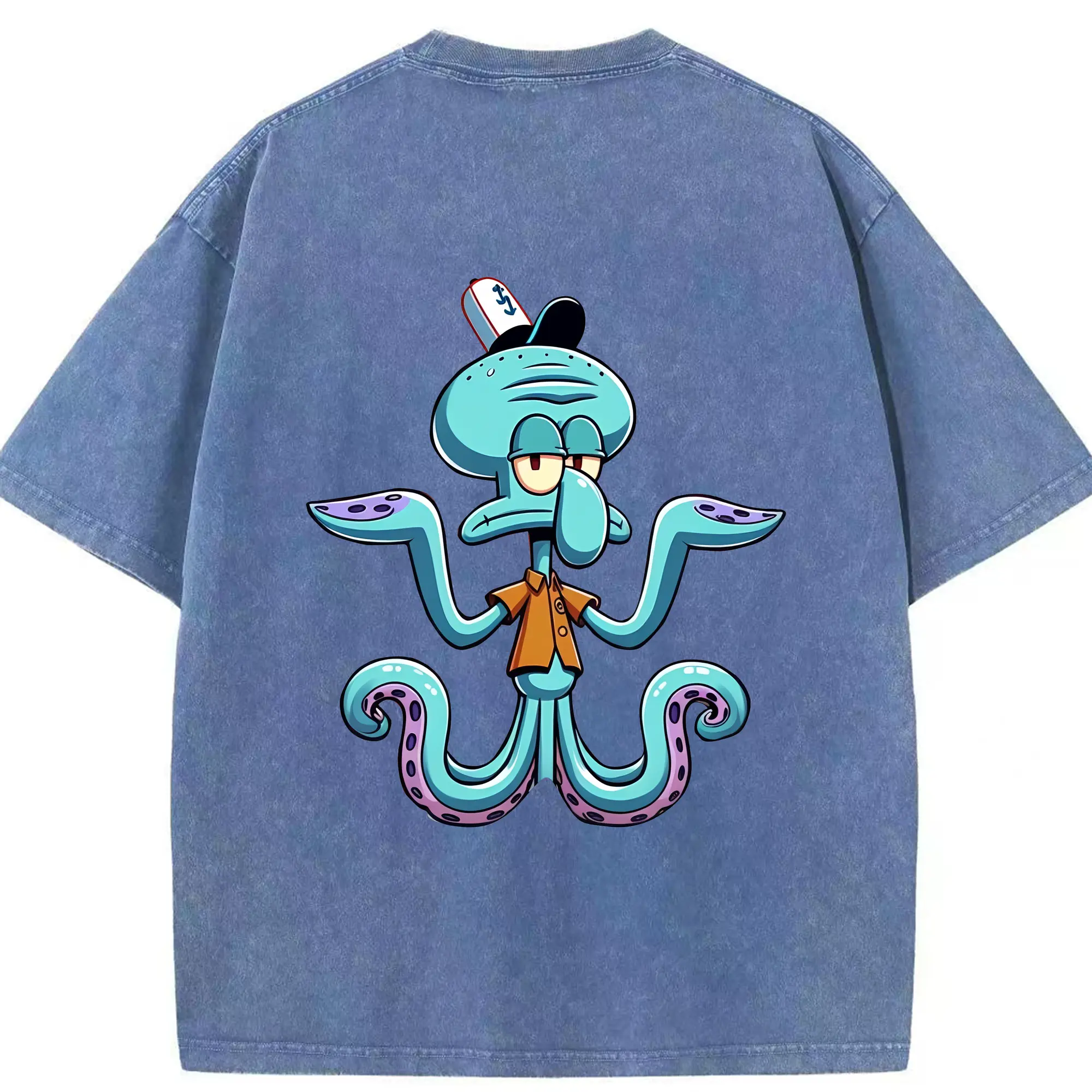 スポンジボブ グッズ イカルド - 綿100% ヴィンテージ風 半袖Tシャツ ・ フロントプリント ・ 柔らか肌触り ・ 通気性 快適 ・ スポーツ カジュアル 外出用