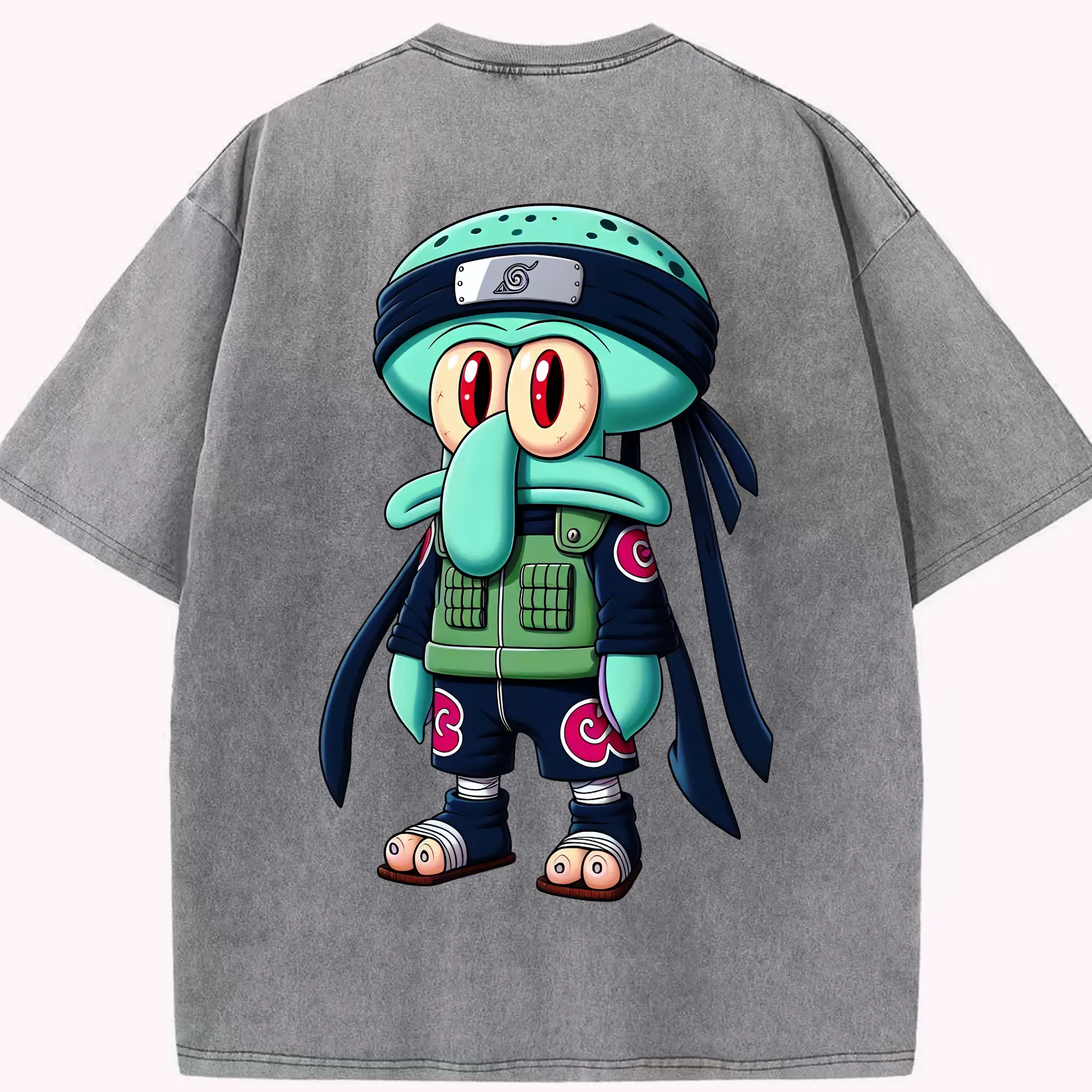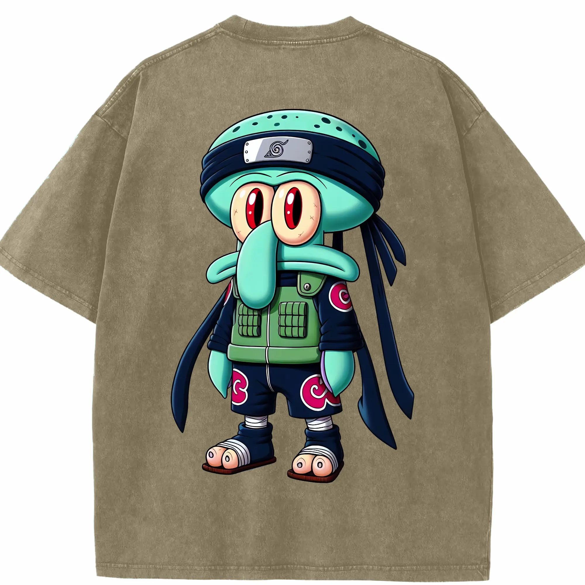 スポンジボブ グッズ イカルド - 綿100% ヴィンテージ風 半袖Tシャツ ・ フロントプリント ・ 柔らか肌触り ・ 通気性 快適 ・ スポーツ カジュアル 外出用
