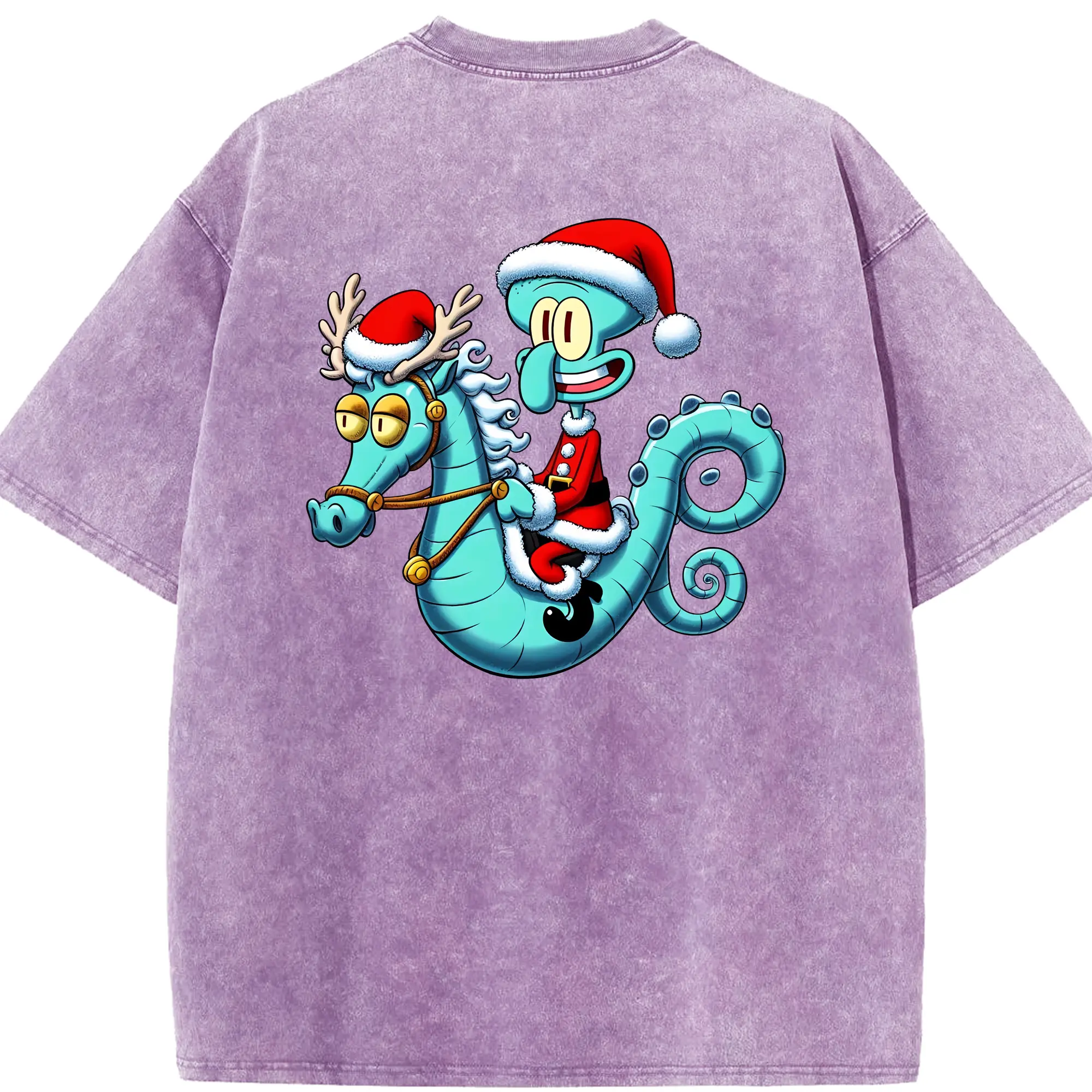 スポンジボブ グッズ イカルド - 綿100% ヴィンテージ風 半袖Tシャツ ・ フロントプリント ・ 柔らか肌触り ・ 通気性 快適 ・ スポーツ カジュアル 外出用