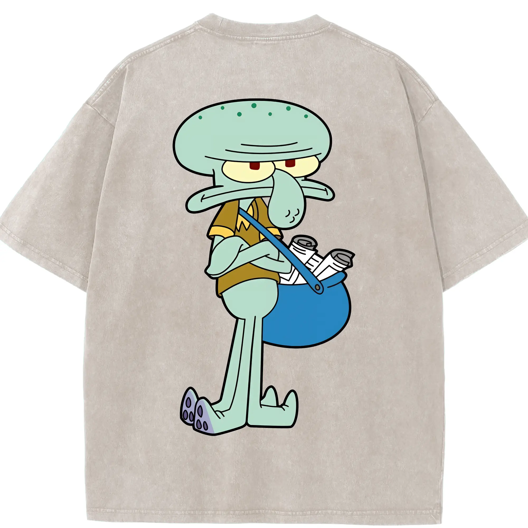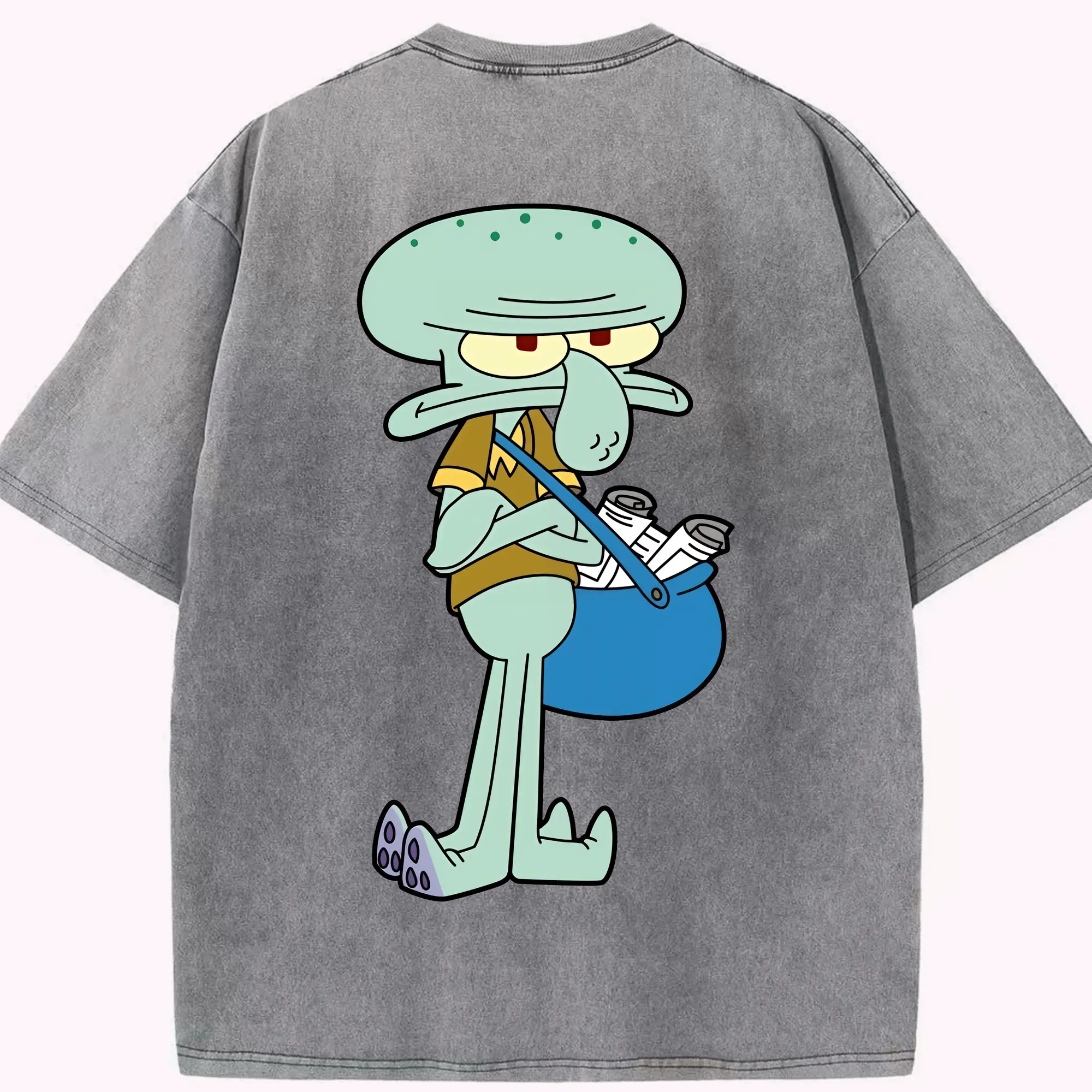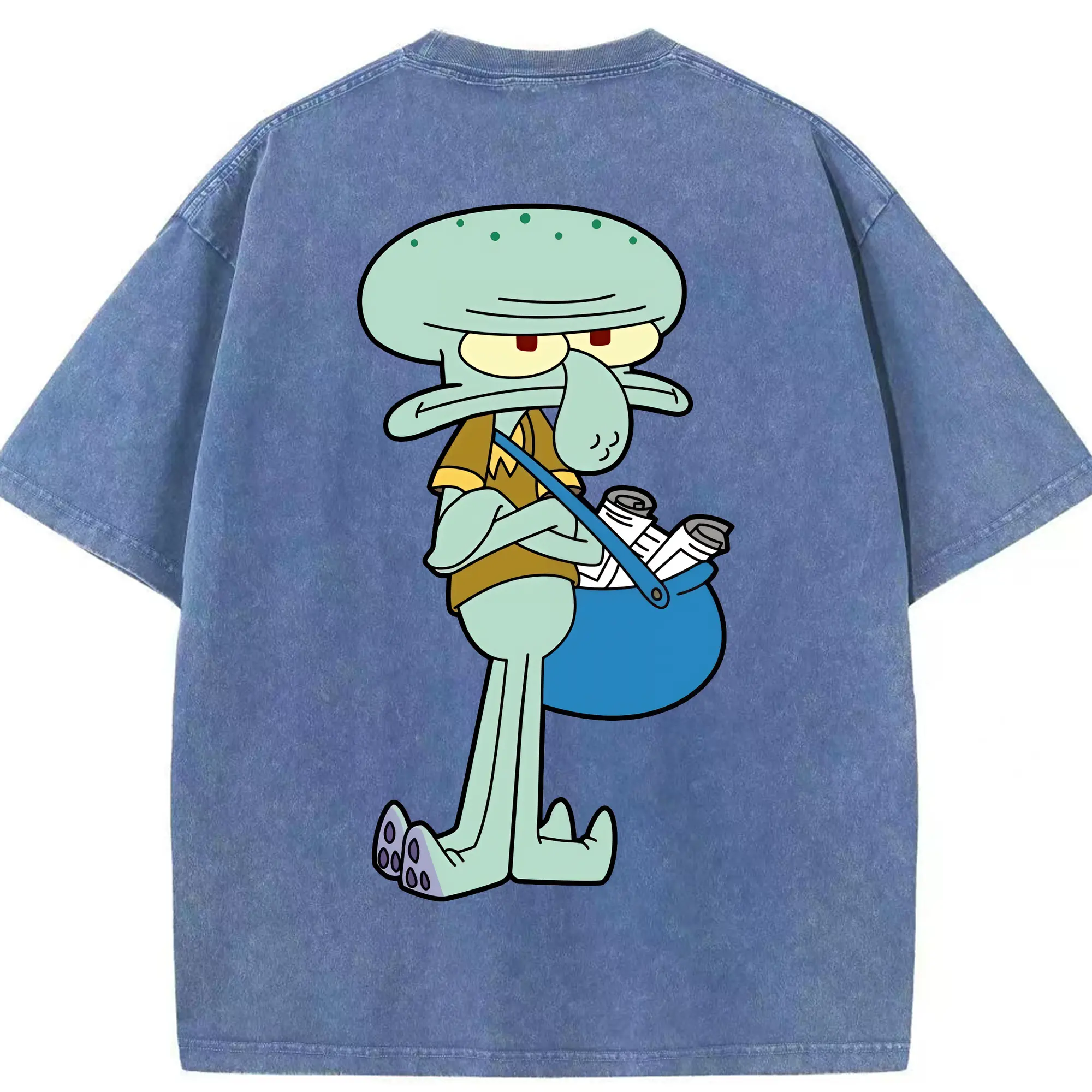 スポンジボブ グッズ イカルド - 綿100% ヴィンテージ風 半袖Tシャツ ・ フロントプリント ・ 柔らか肌触り ・ 通気性 快適 ・ スポーツ カジュアル 外出用