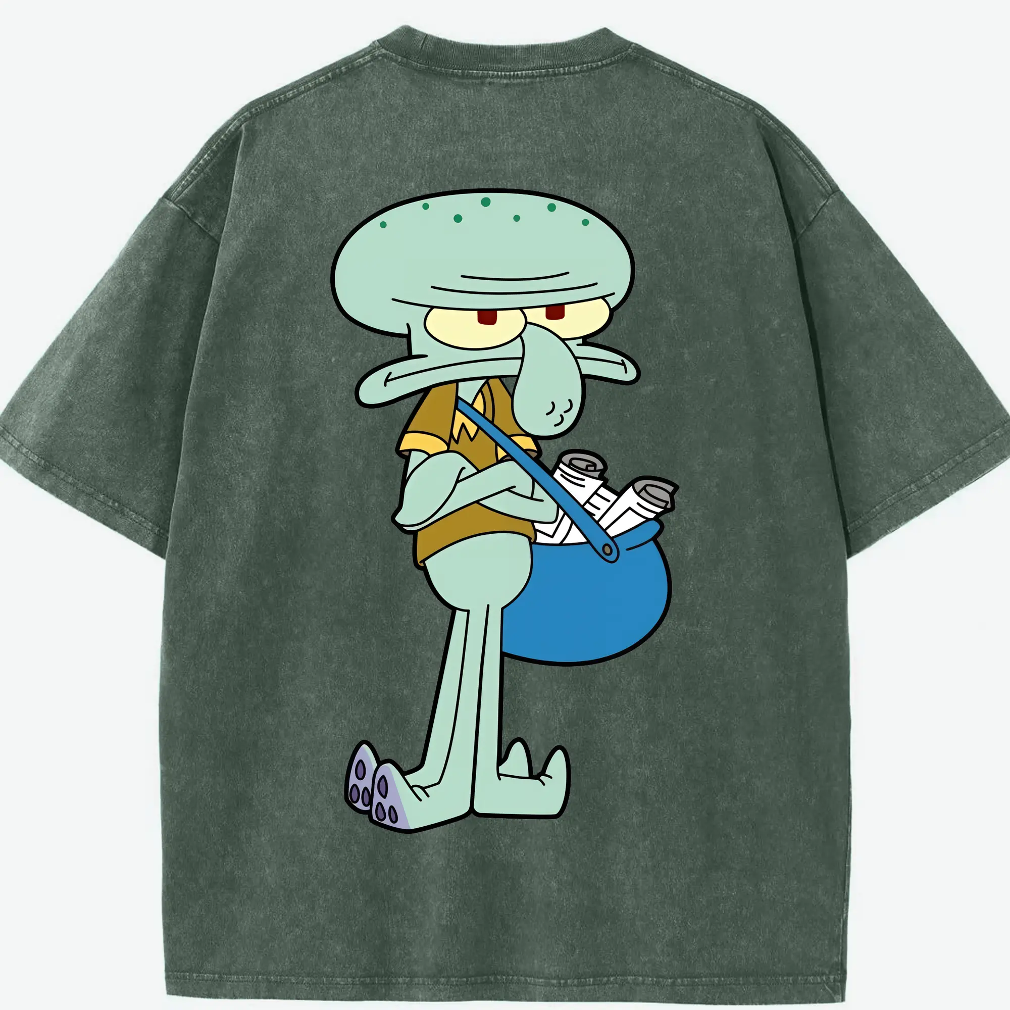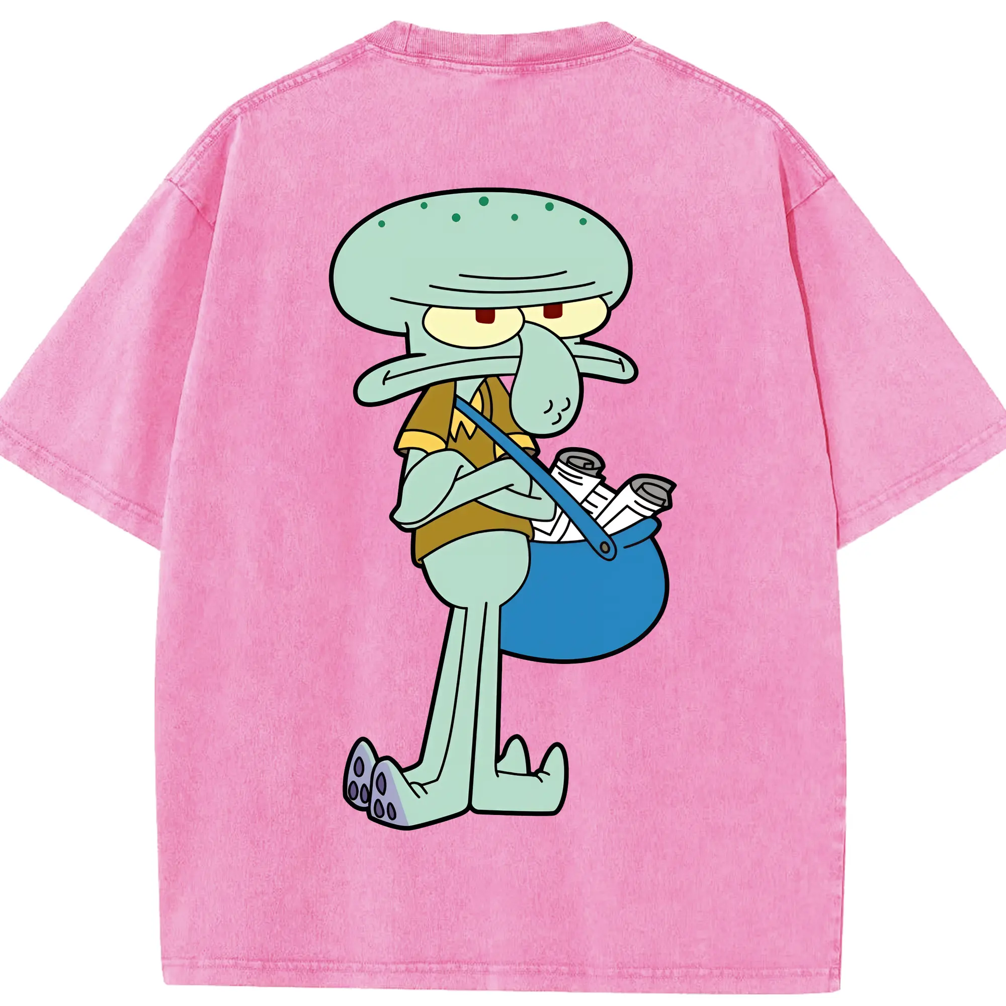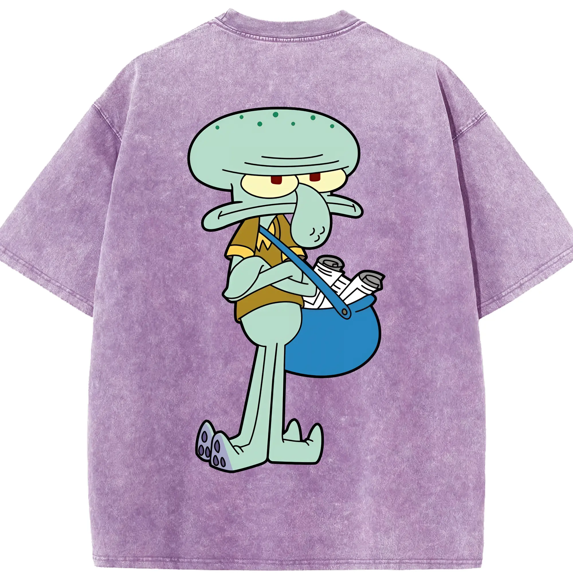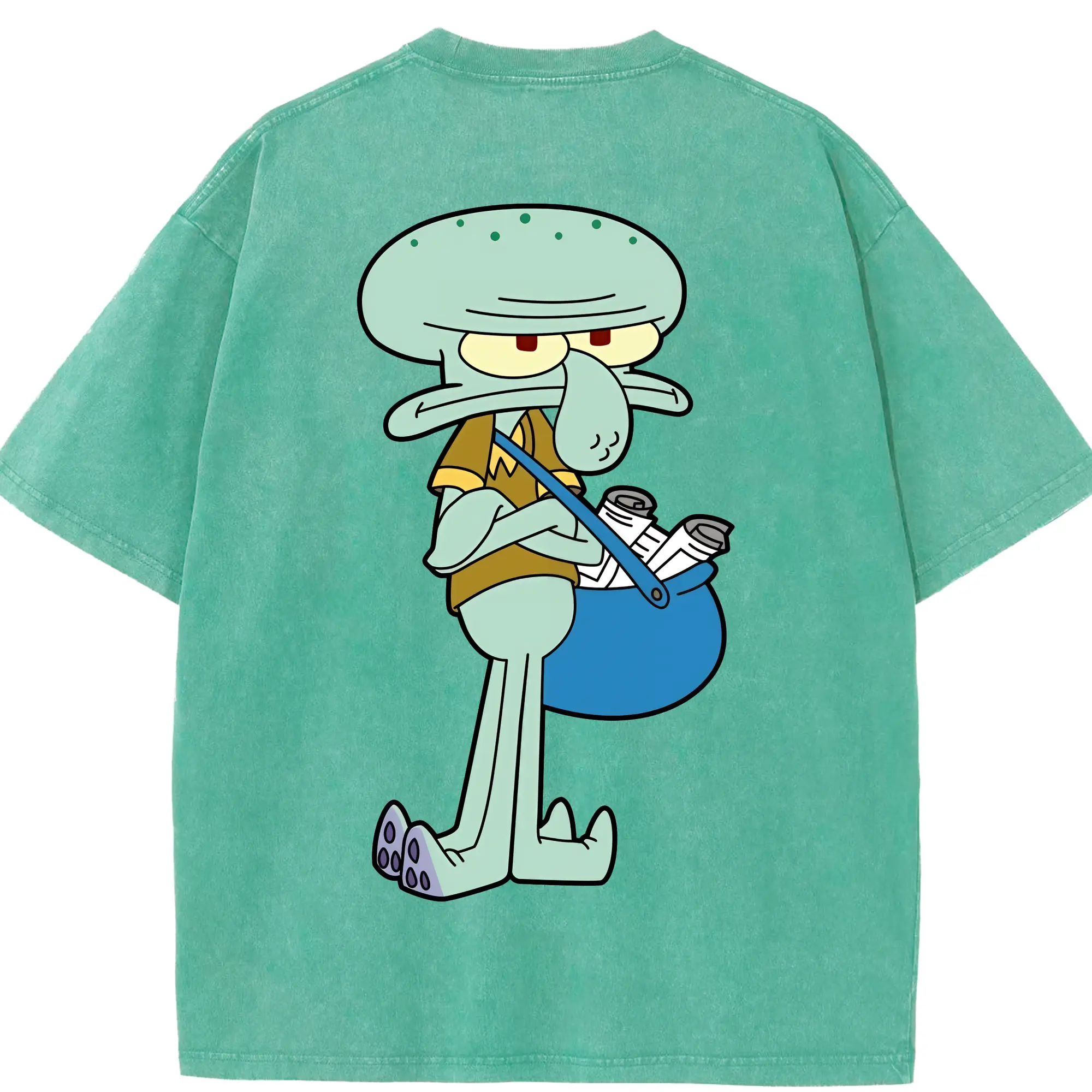 スポンジボブ グッズ イカルド - 綿100% ヴィンテージ風 半袖Tシャツ ・ フロントプリント ・ 柔らか肌触り ・ 通気性 快適 ・ スポーツ カジュアル 外出用