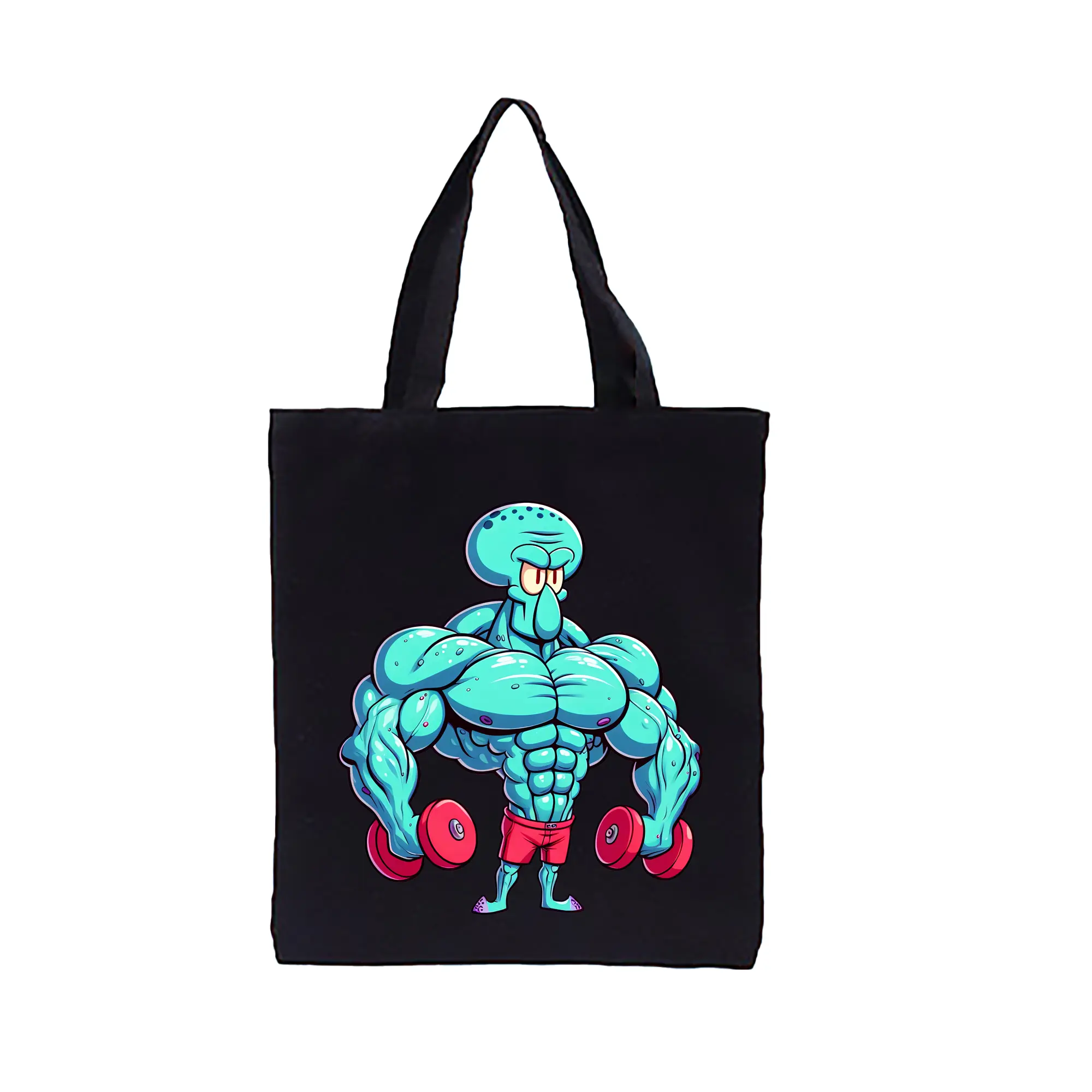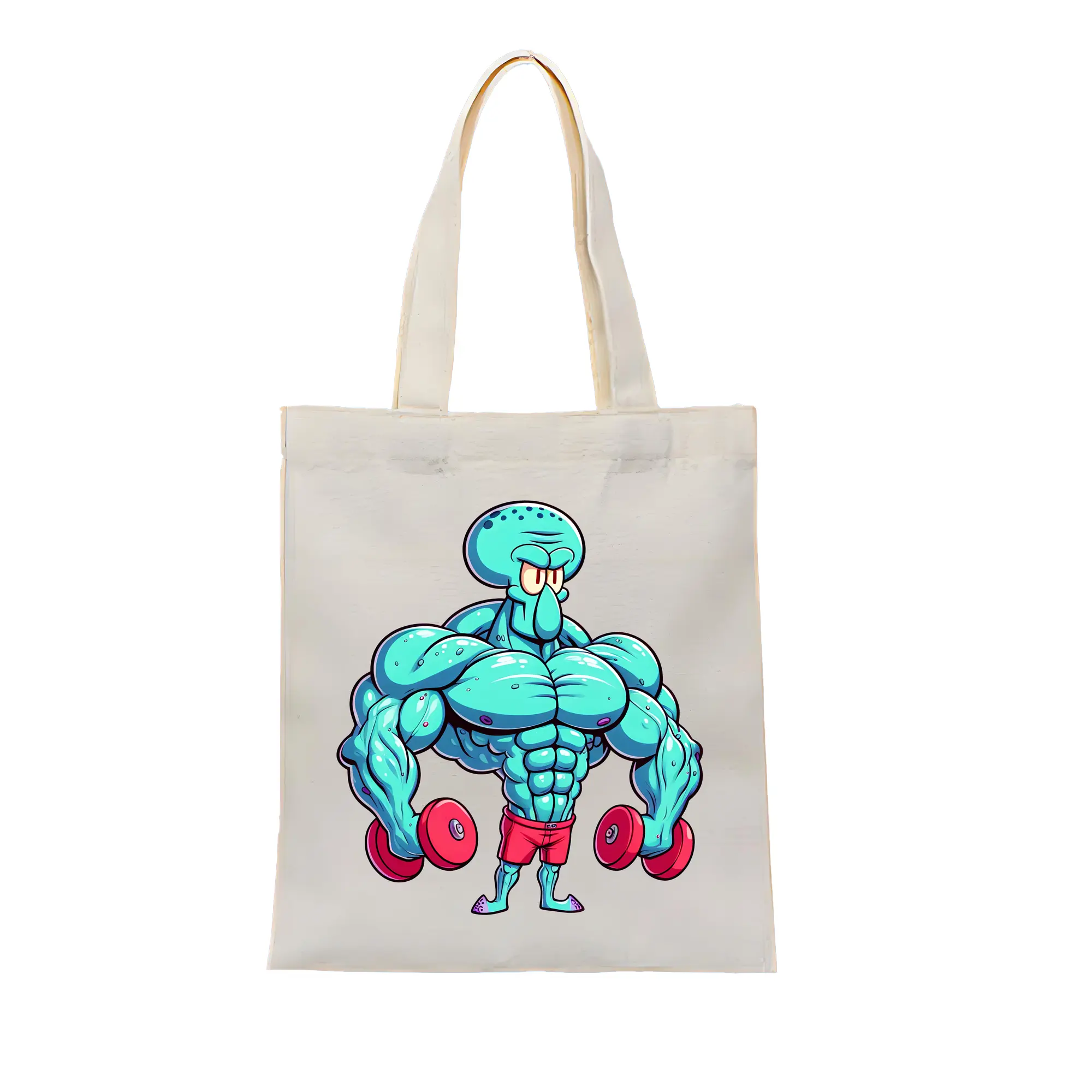 スポンジボブ グッズ イカルド - 縦型キャンバス手提げバッグ(トートバッグ) ・ キャンバス素材 ・ ショッピング用 ・ 軽量 丈夫 お手入れ簡単