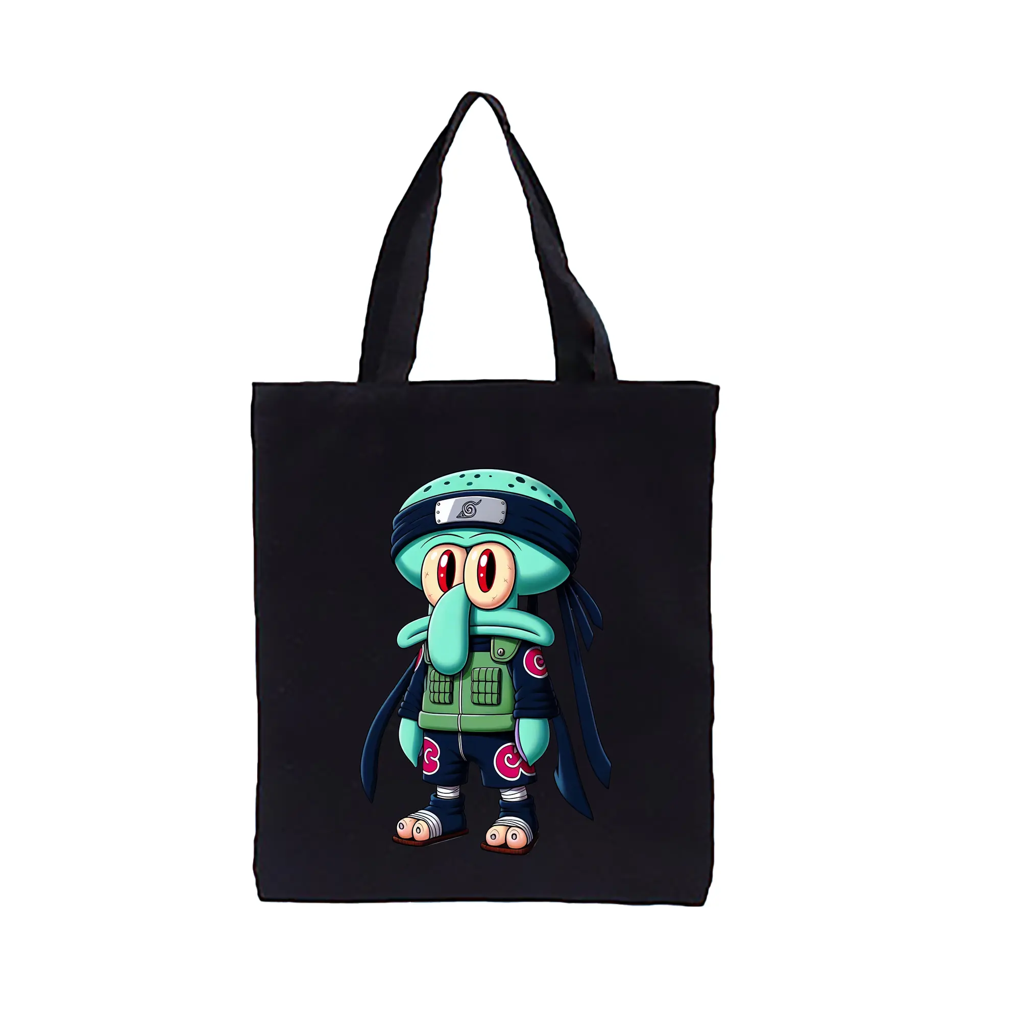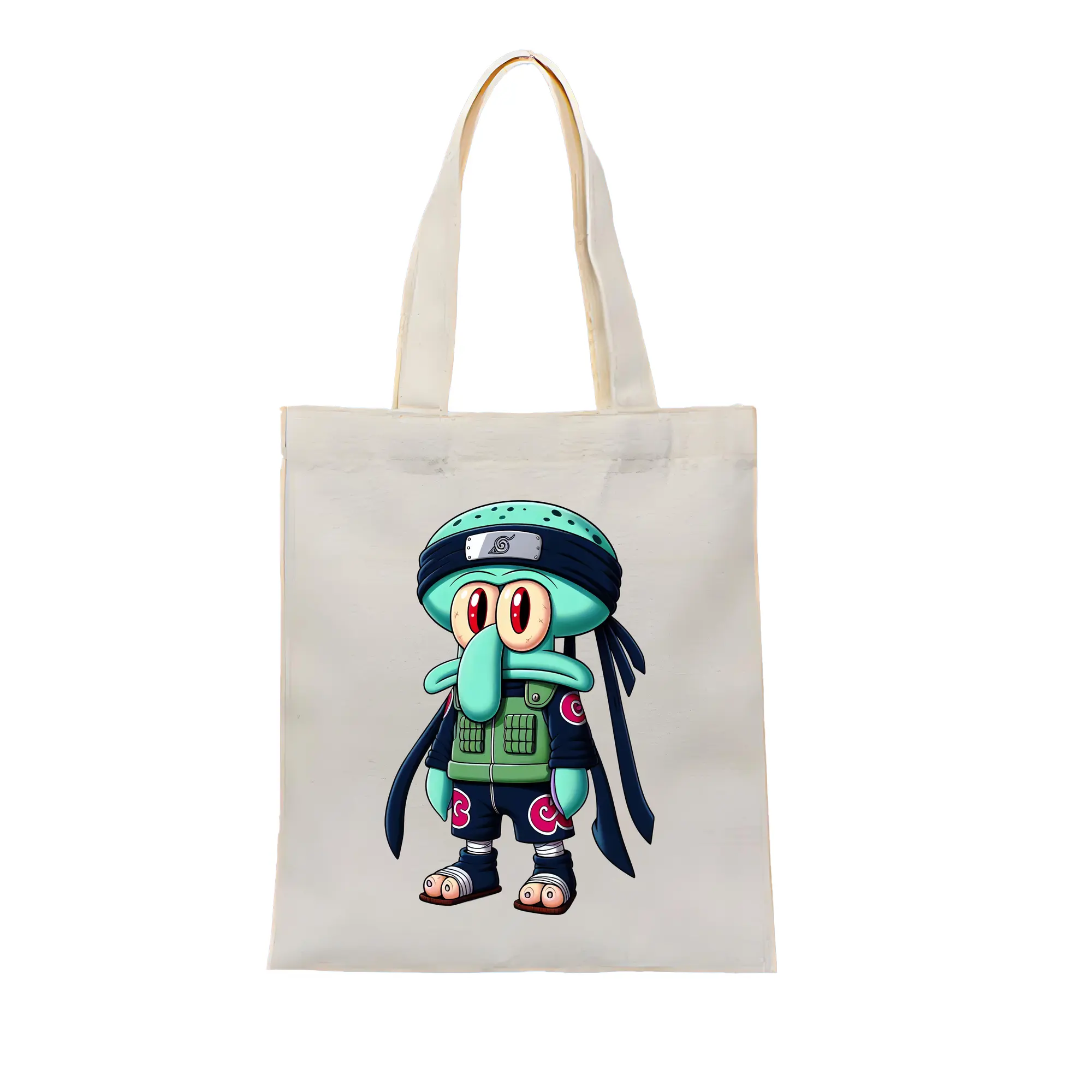 スポンジボブ グッズ イカルド - 縦型キャンバス手提げバッグ(トートバッグ) ・ キャンバス素材 ・ ショッピング用 ・ 軽量 丈夫 お手入れ簡単