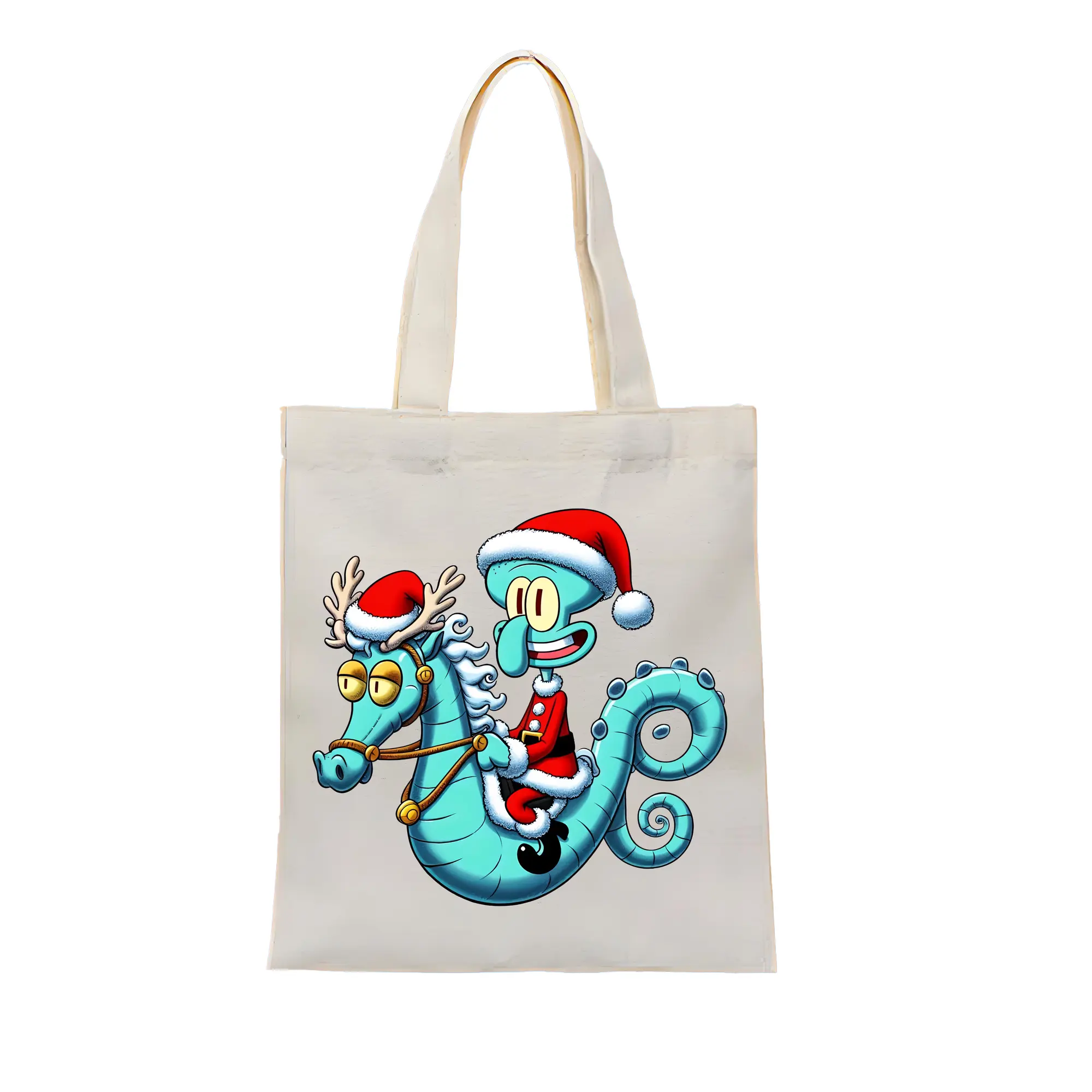 スポンジボブ グッズ イカルド - 縦型キャンバス手提げバッグ(トートバッグ) ・ キャンバス素材 ・ ショッピング用 ・ 軽量 丈夫 お手入れ簡単