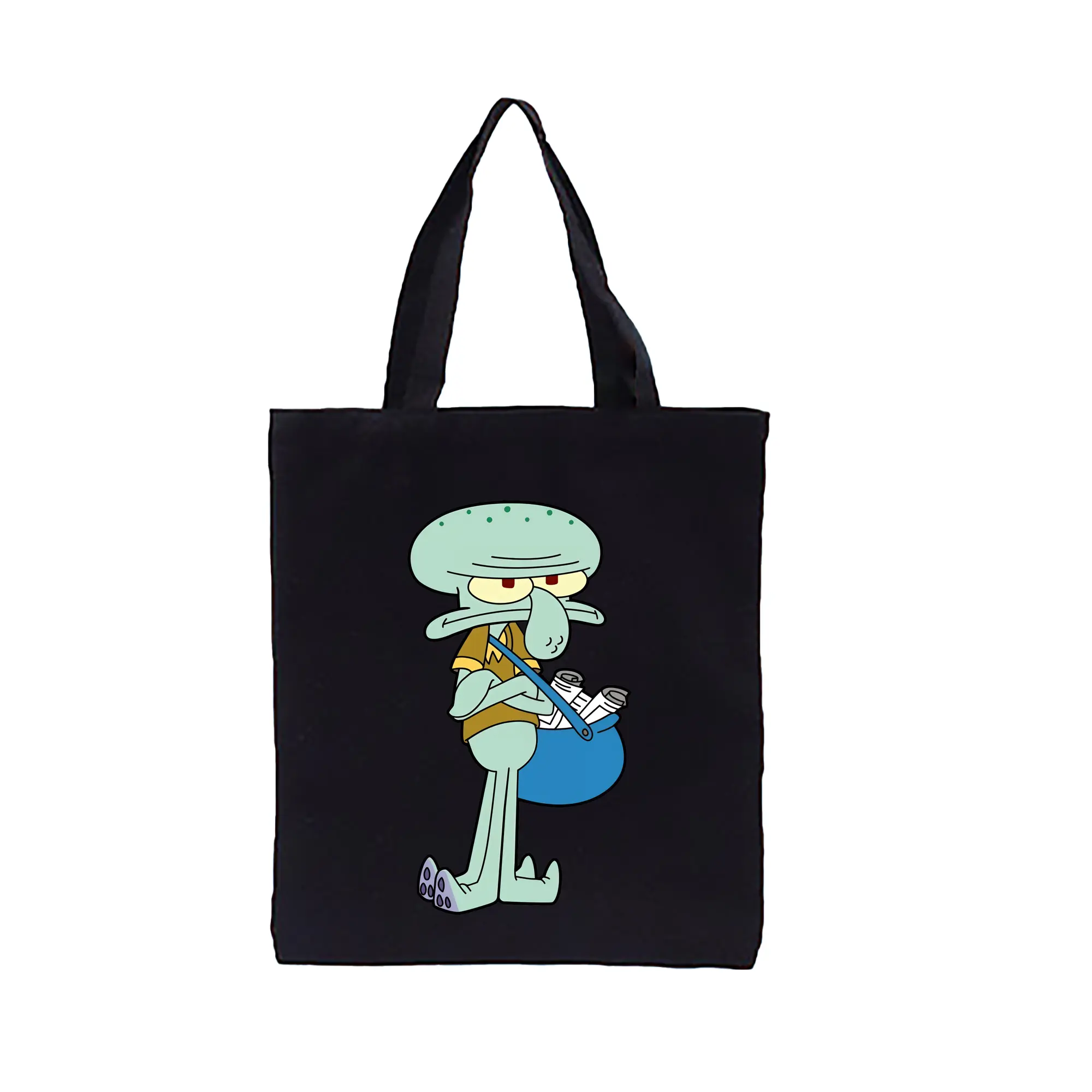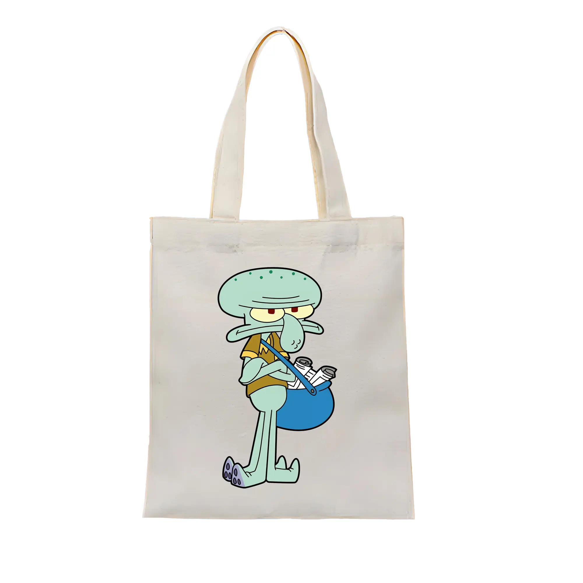スポンジボブ グッズ イカルド - 縦型キャンバス手提げバッグ(トートバッグ) ・ キャンバス素材 ・ ショッピング用 ・ 軽量 丈夫 お手入れ簡単