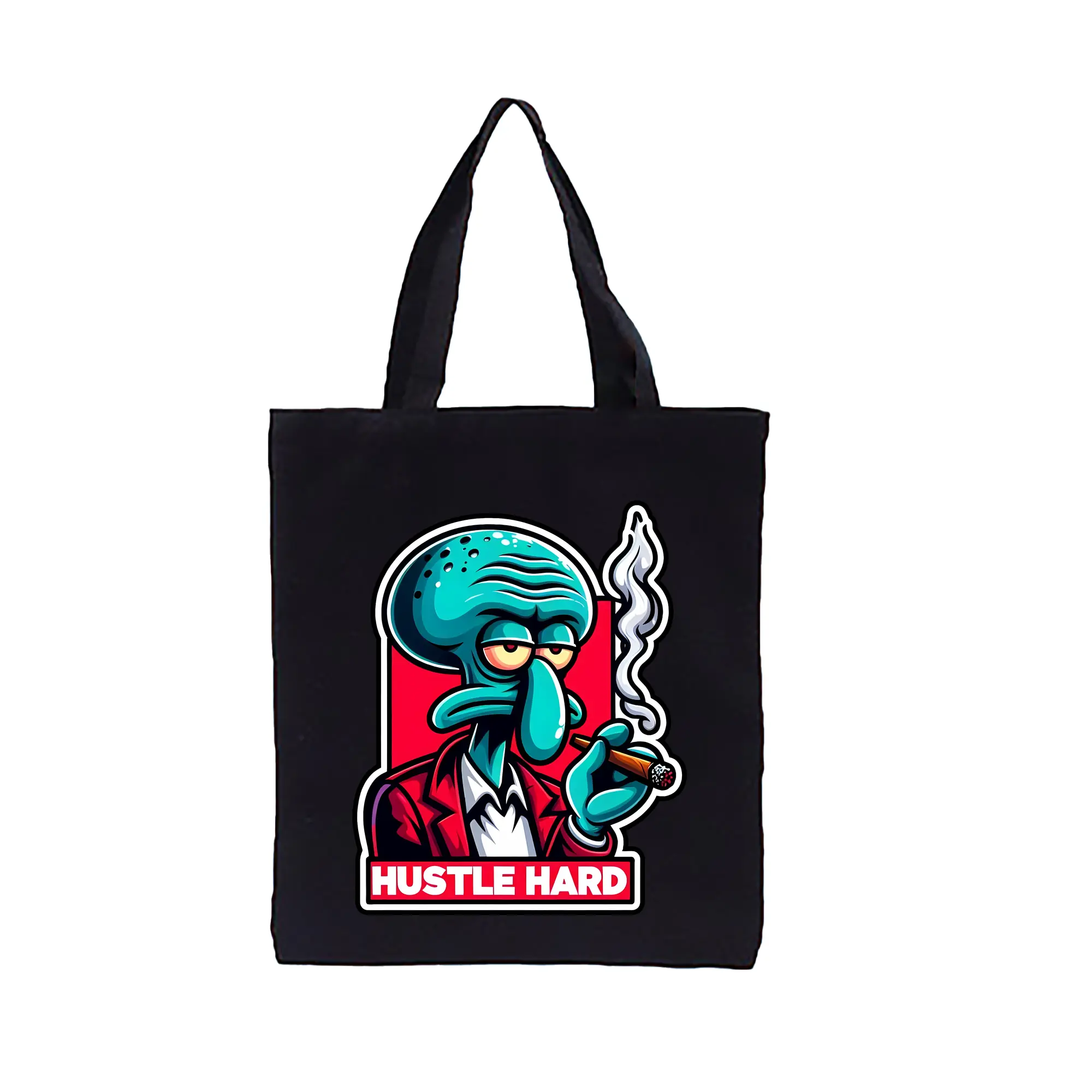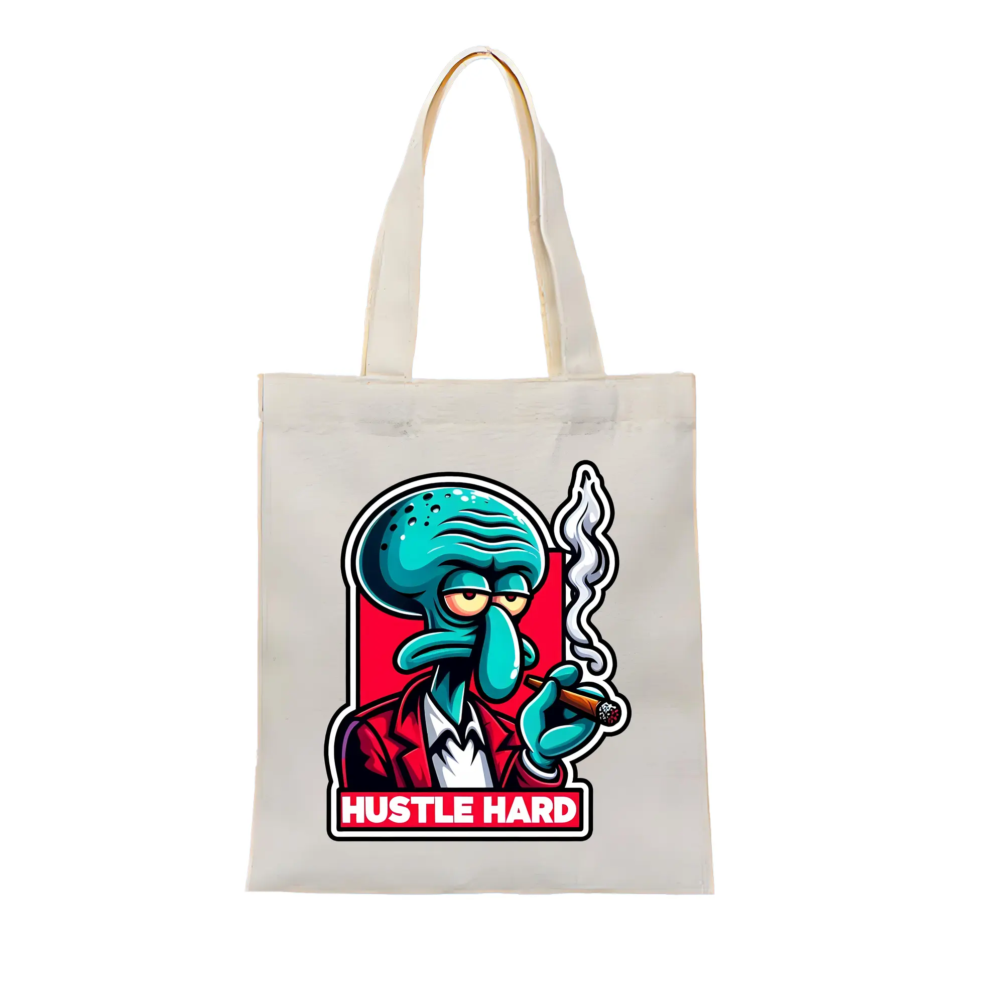 スポンジボブ グッズ イカルド - 縦型キャンバス手提げバッグ(トートバッグ) ・ キャンバス素材 ・ ショッピング用 ・ 軽量 丈夫 お手入れ簡単
