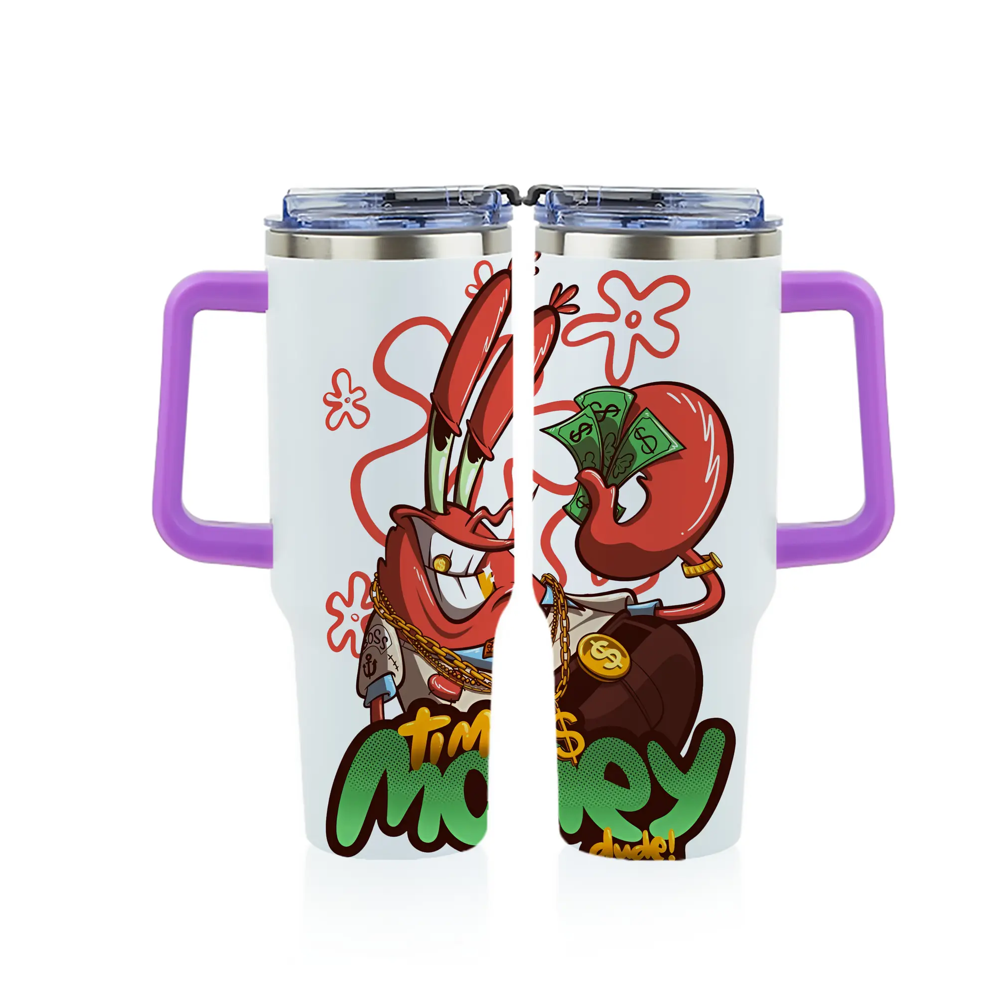 スポンジボブ グッズ ミスター・クラブ - 1200mL フルプリント車用タンブラー ・ 304ステンレス 内側 ・ 201ステンレス 外側 ・ 保温 保冷 ・ 通勤 ドライブ アウトドア用