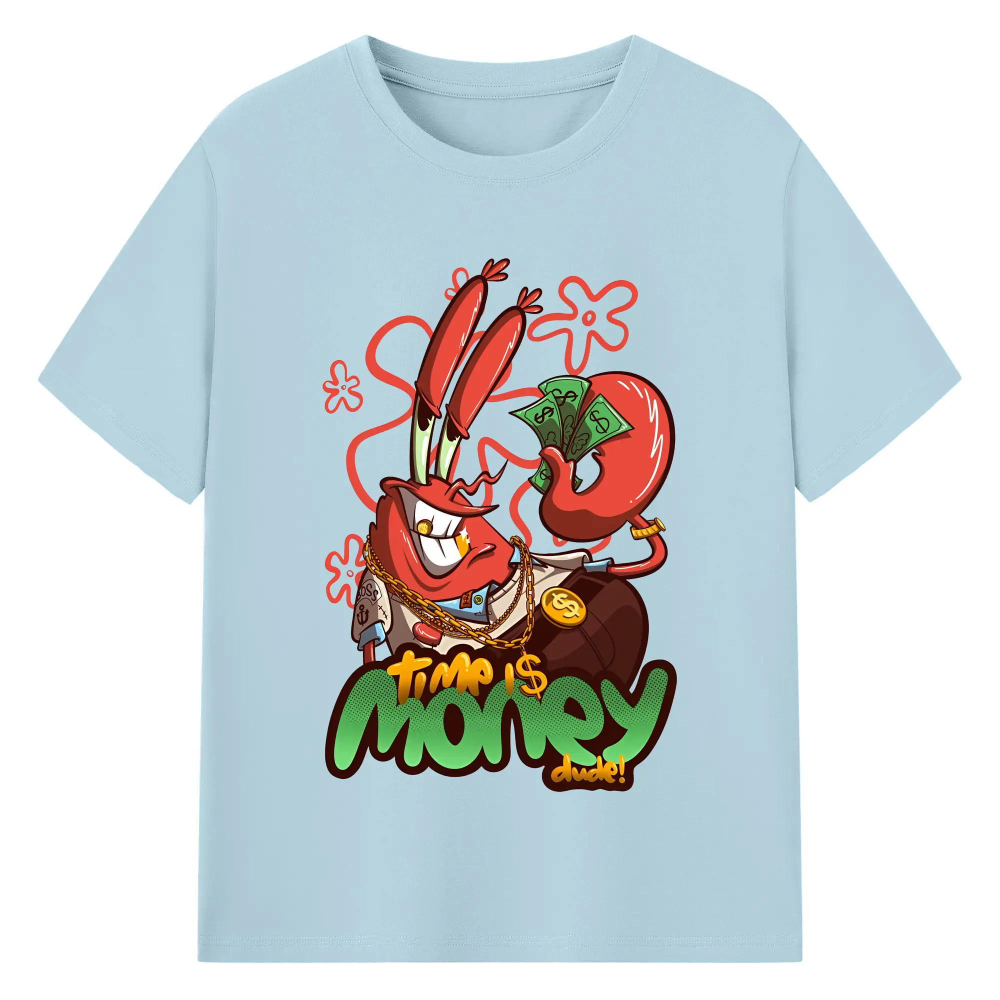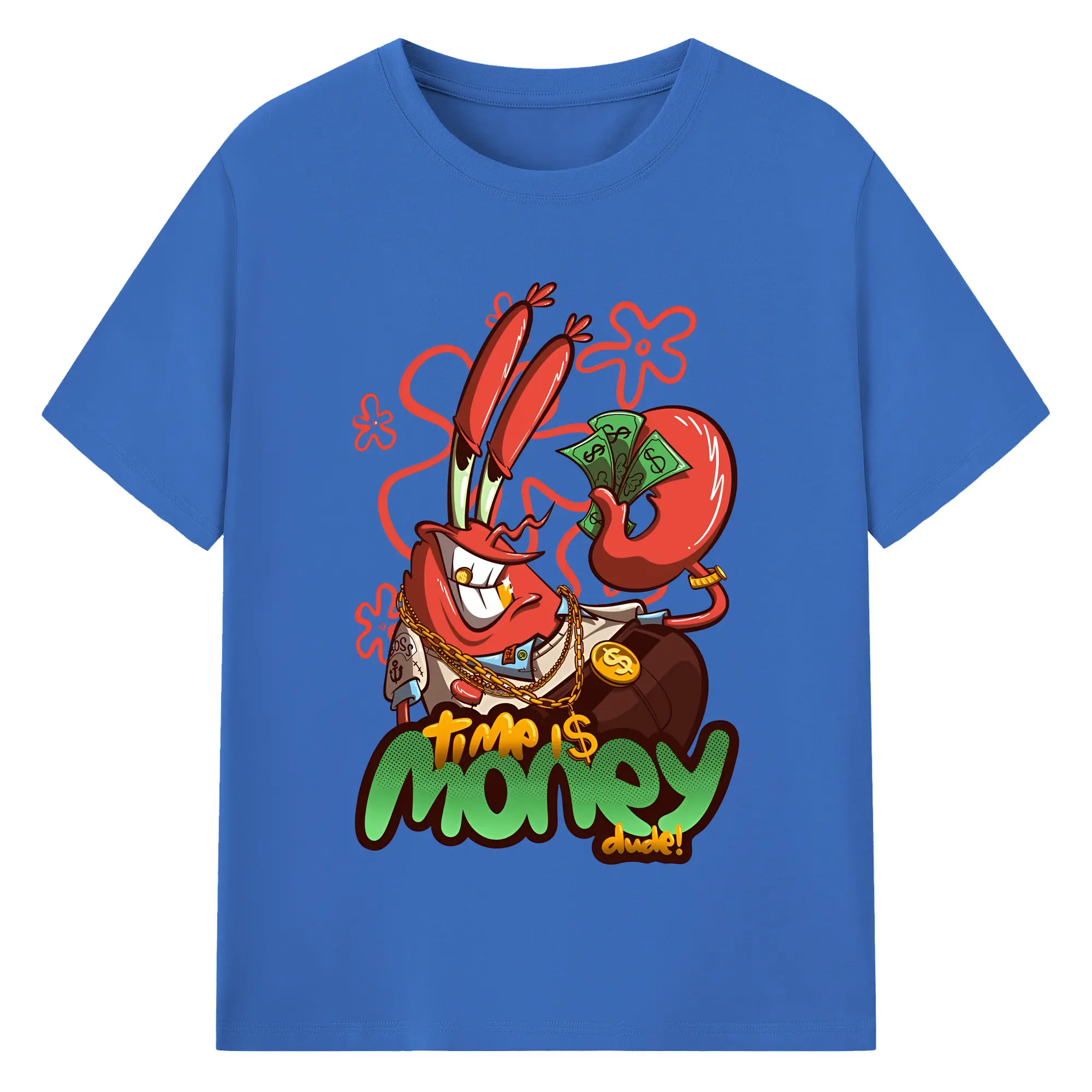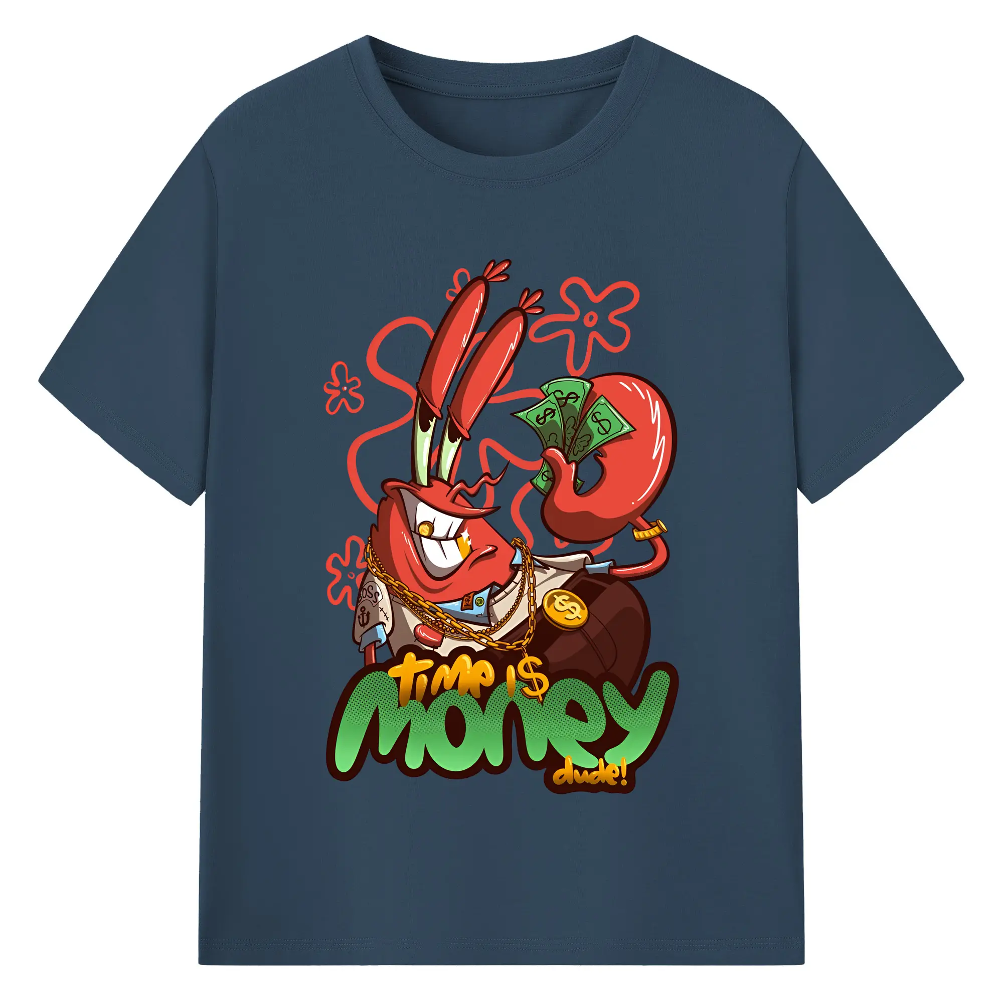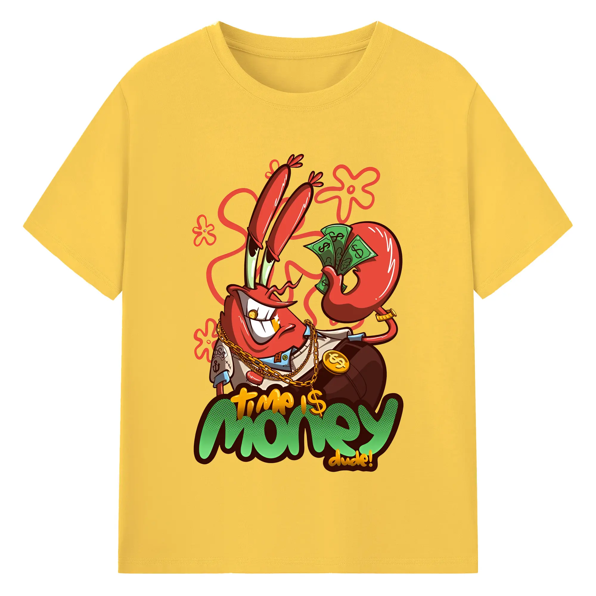 スポンジボブ グッズ ミスター・クラブ - 綿100% ヴィンテージ風 半袖Tシャツ ・ フロントプリント ・ 柔らか肌触り ・ 通気性 快適 ・ スポーツ カジュアル 外出用