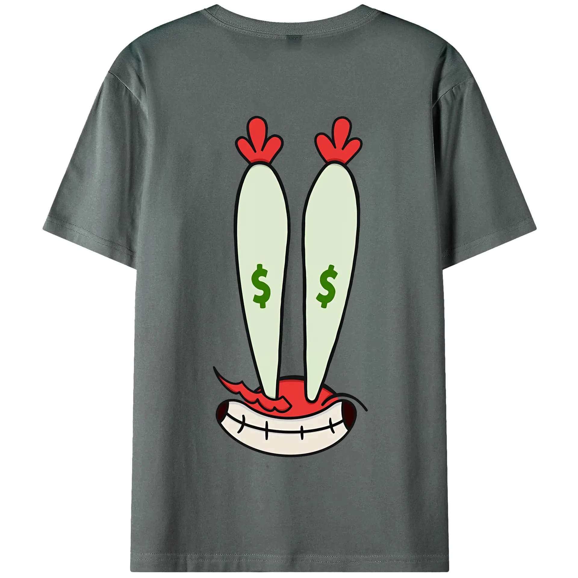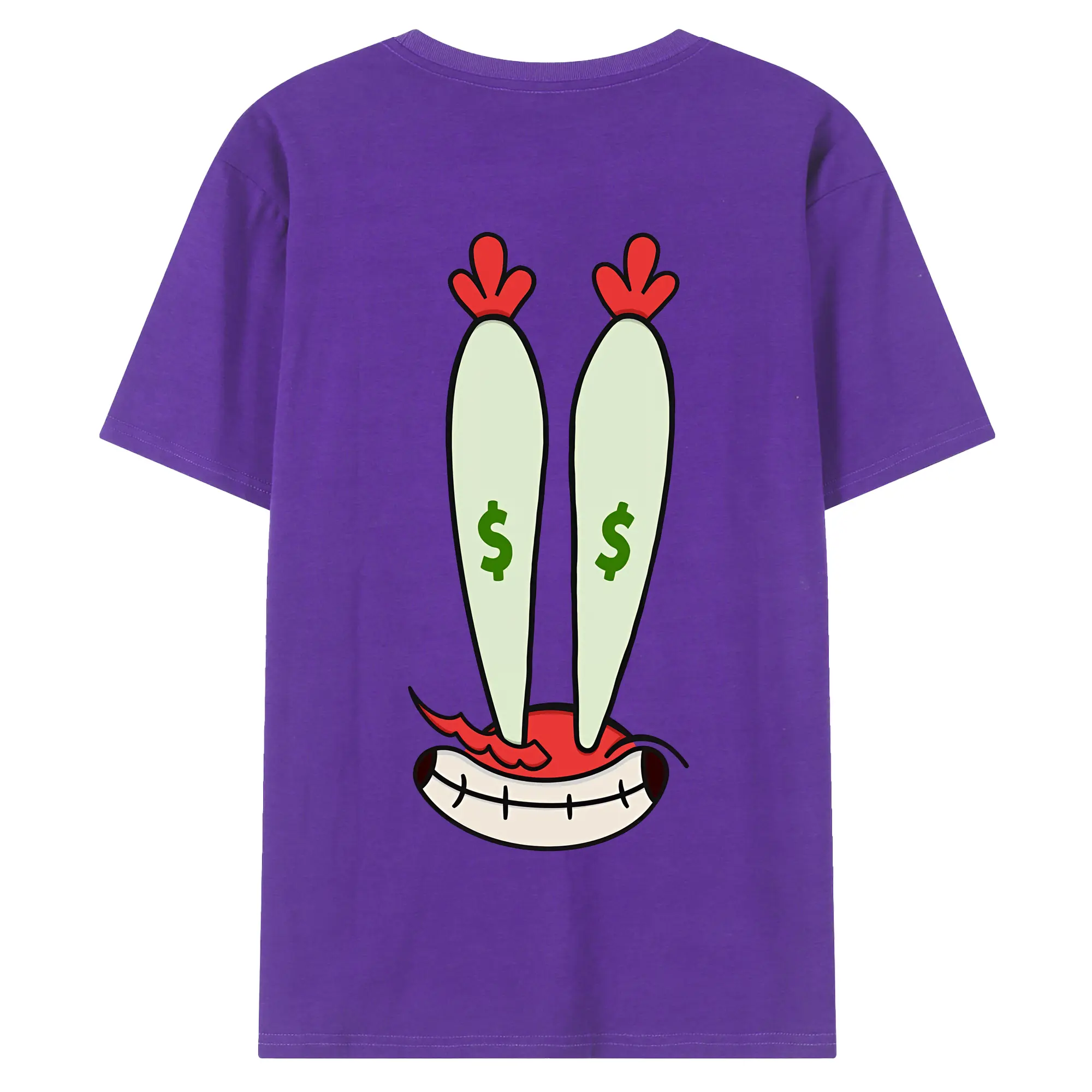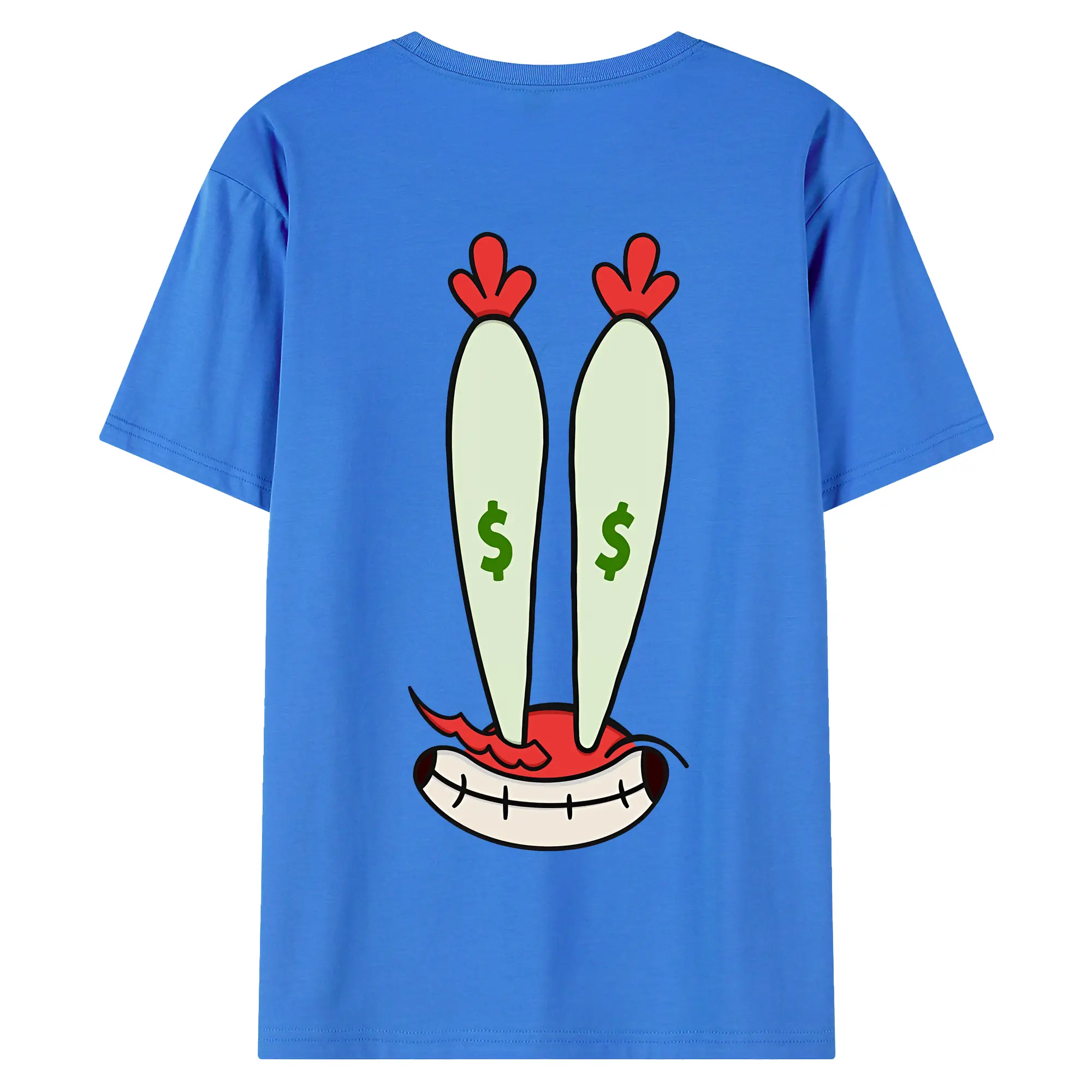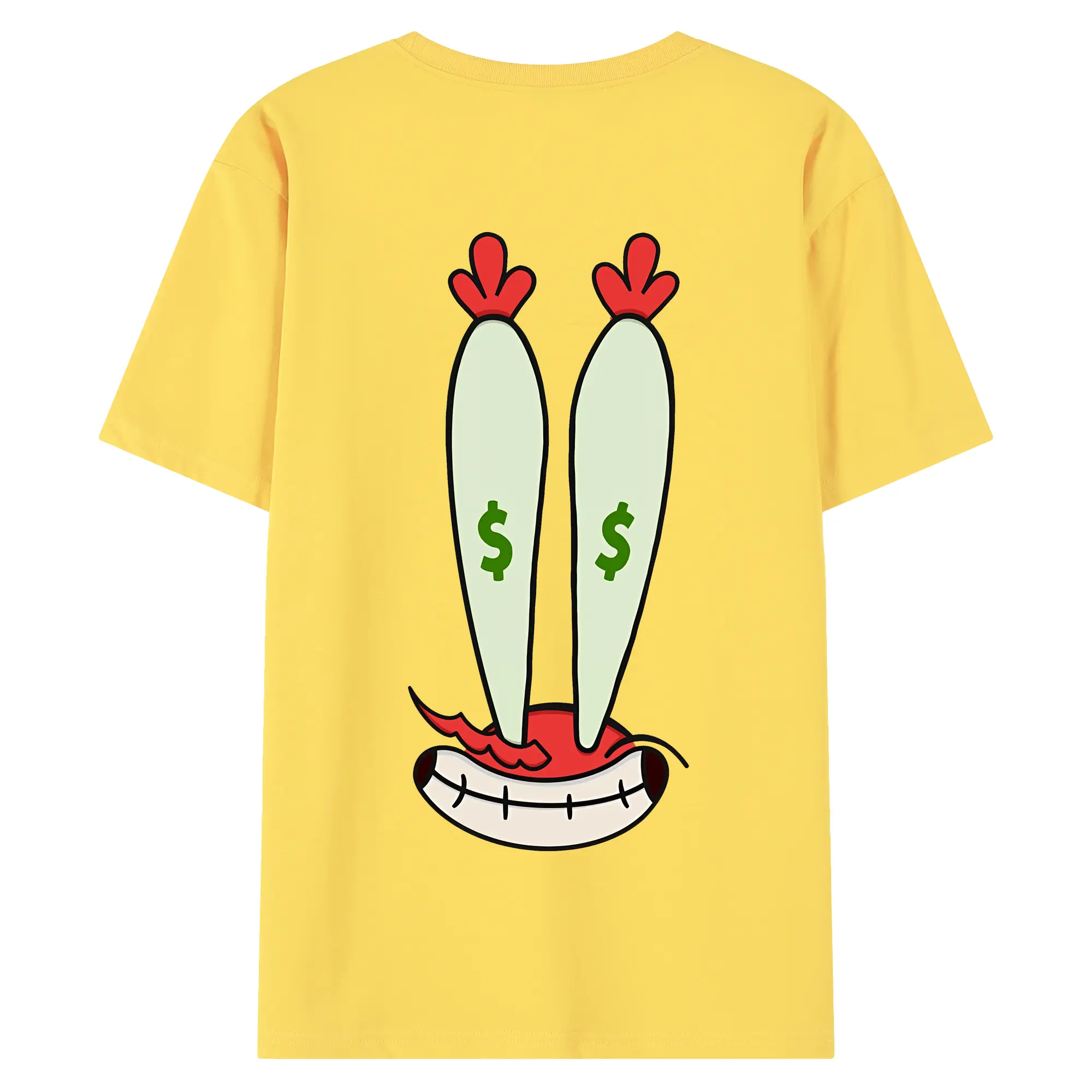 スポンジボブ グッズ ミスター・クラブ - 綿100% ヴィンテージ風 半袖Tシャツ ・ 背面プリント ・ 柔らか肌触り ・ 通気性 快適 ・ スポーツ カジュアル 外出用