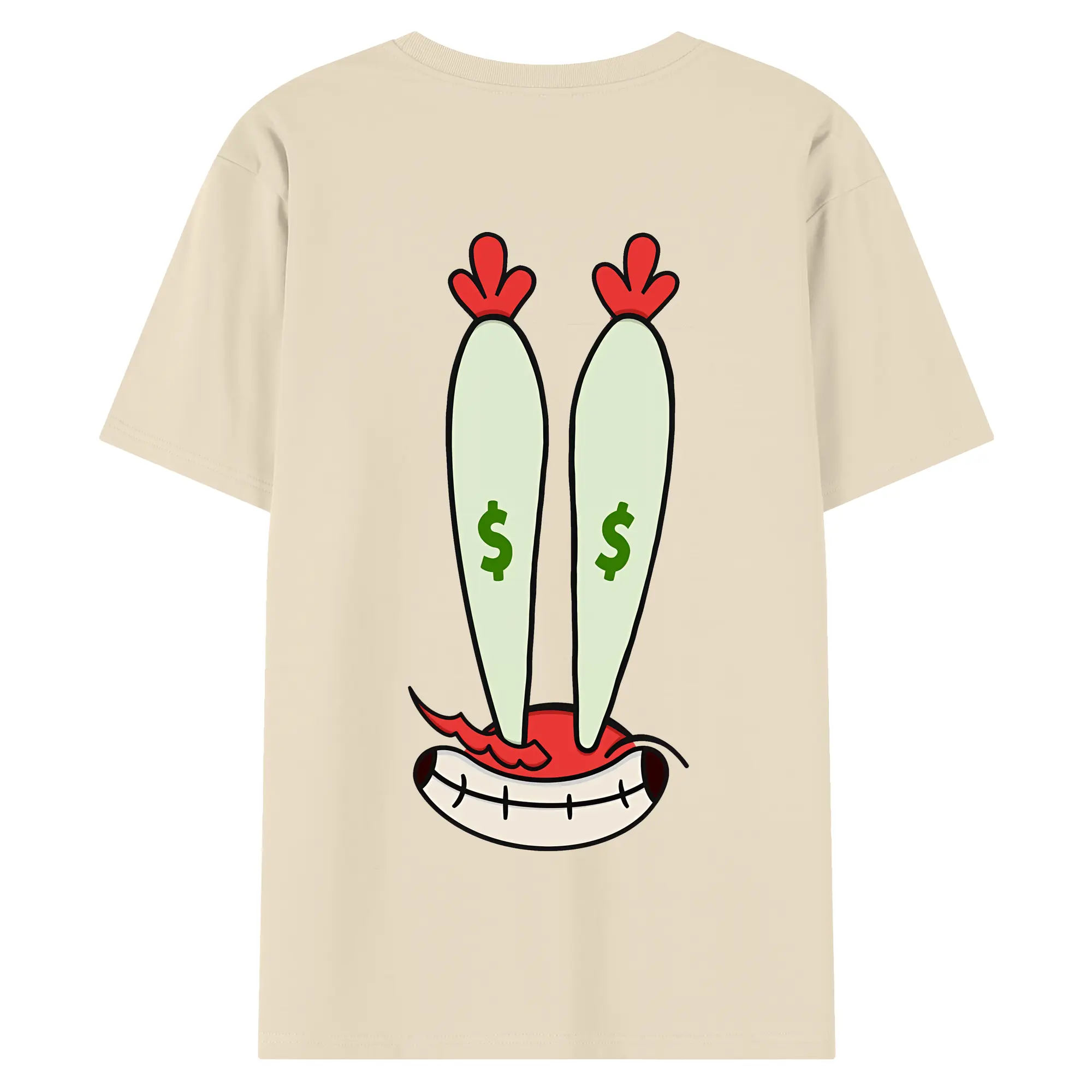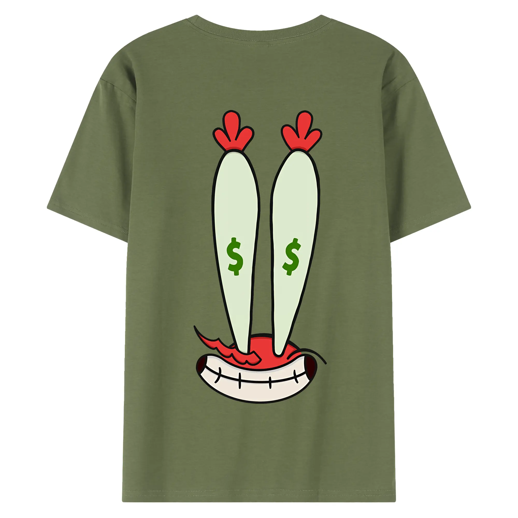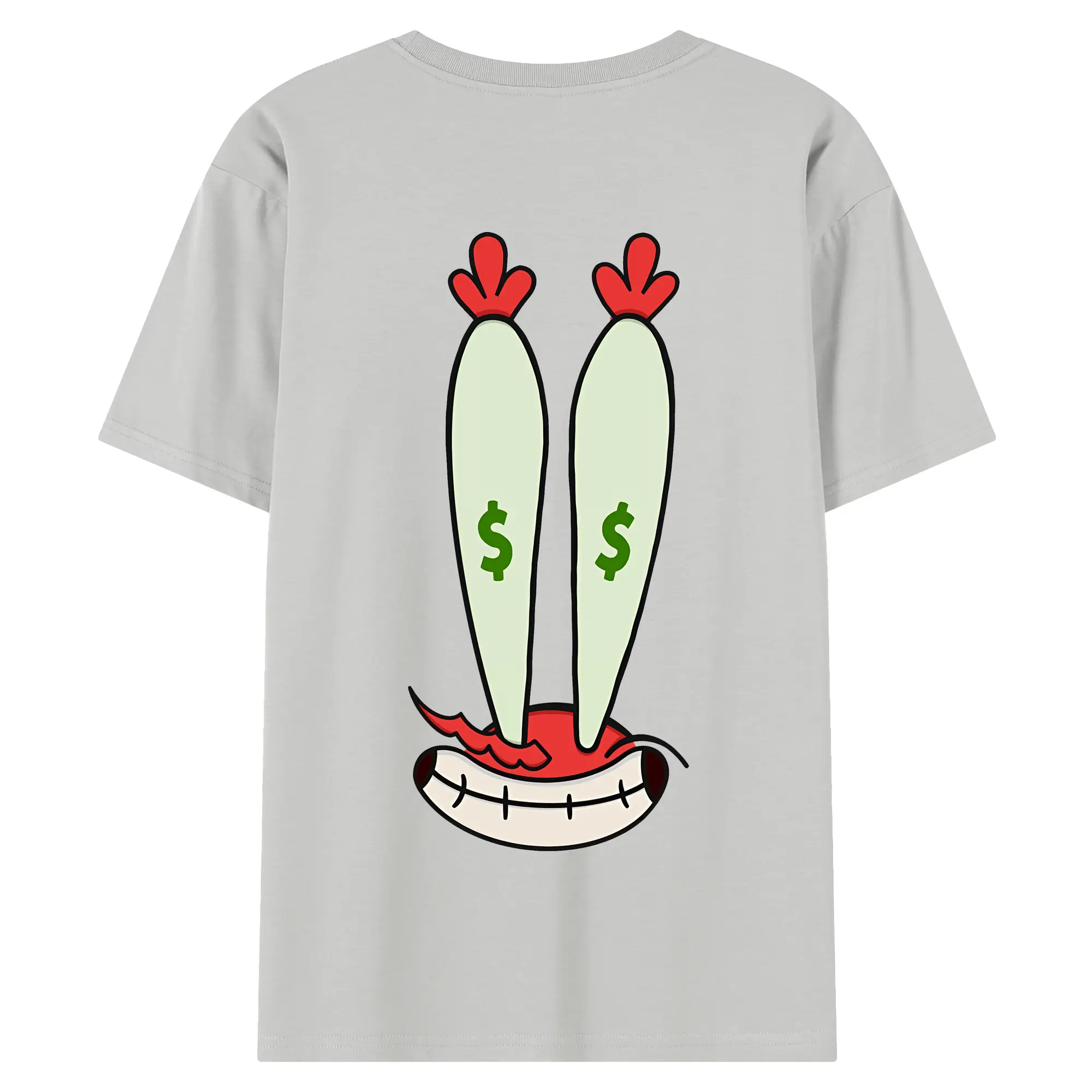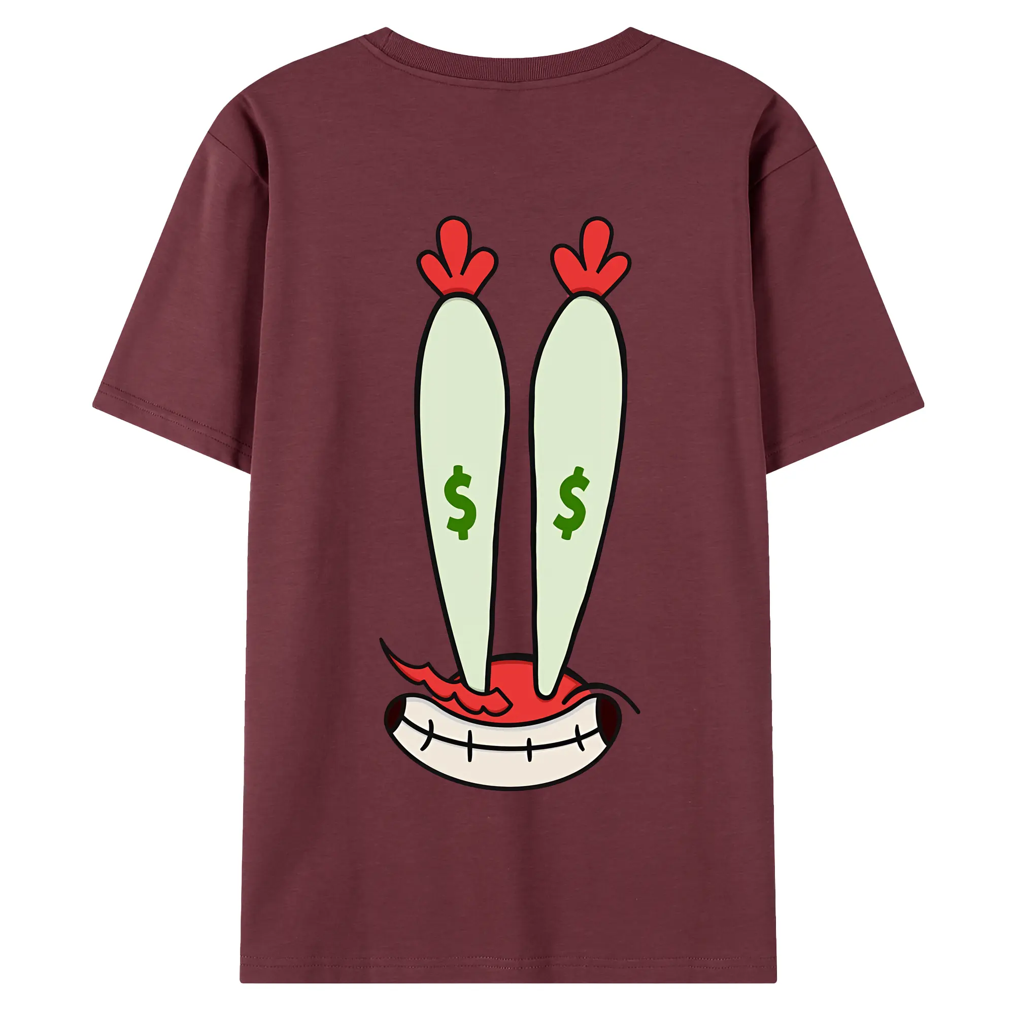 スポンジボブ グッズ ミスター・クラブ - 綿100% ヴィンテージ風 半袖Tシャツ ・ 背面プリント ・ 柔らか肌触り ・ 通気性 快適 ・ スポーツ カジュアル 外出用
