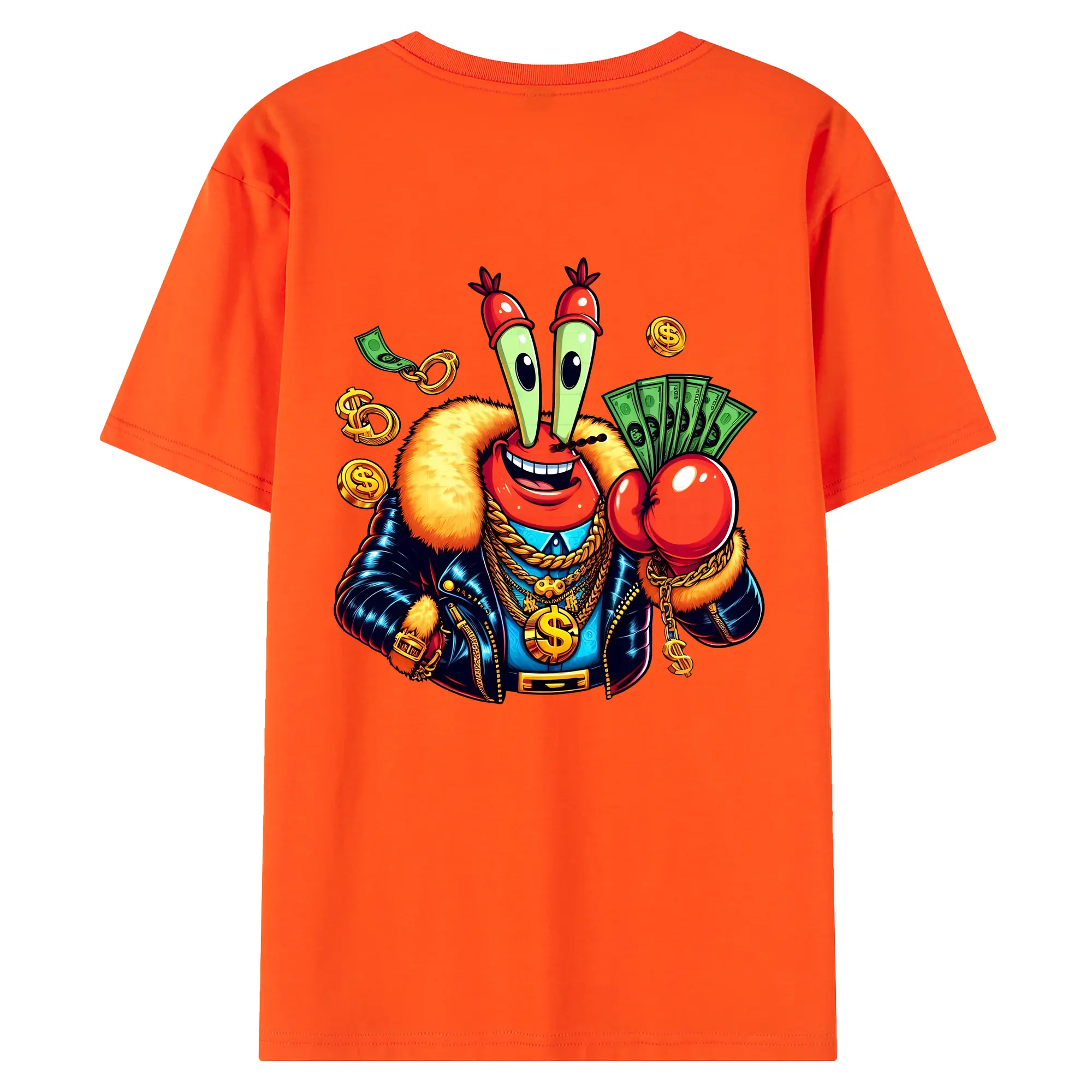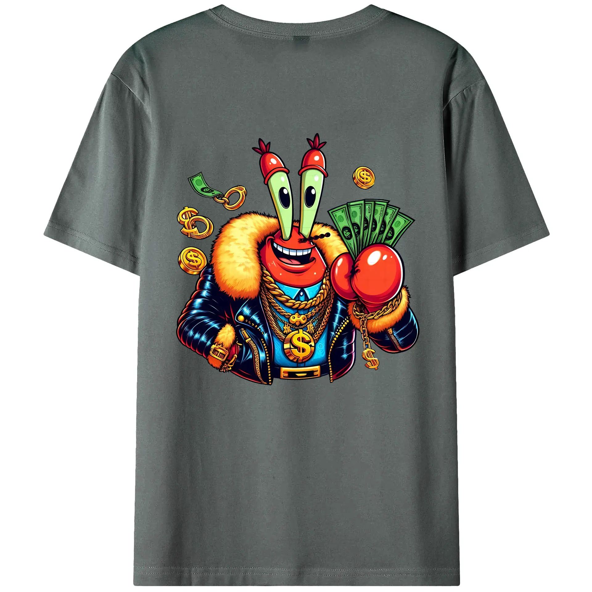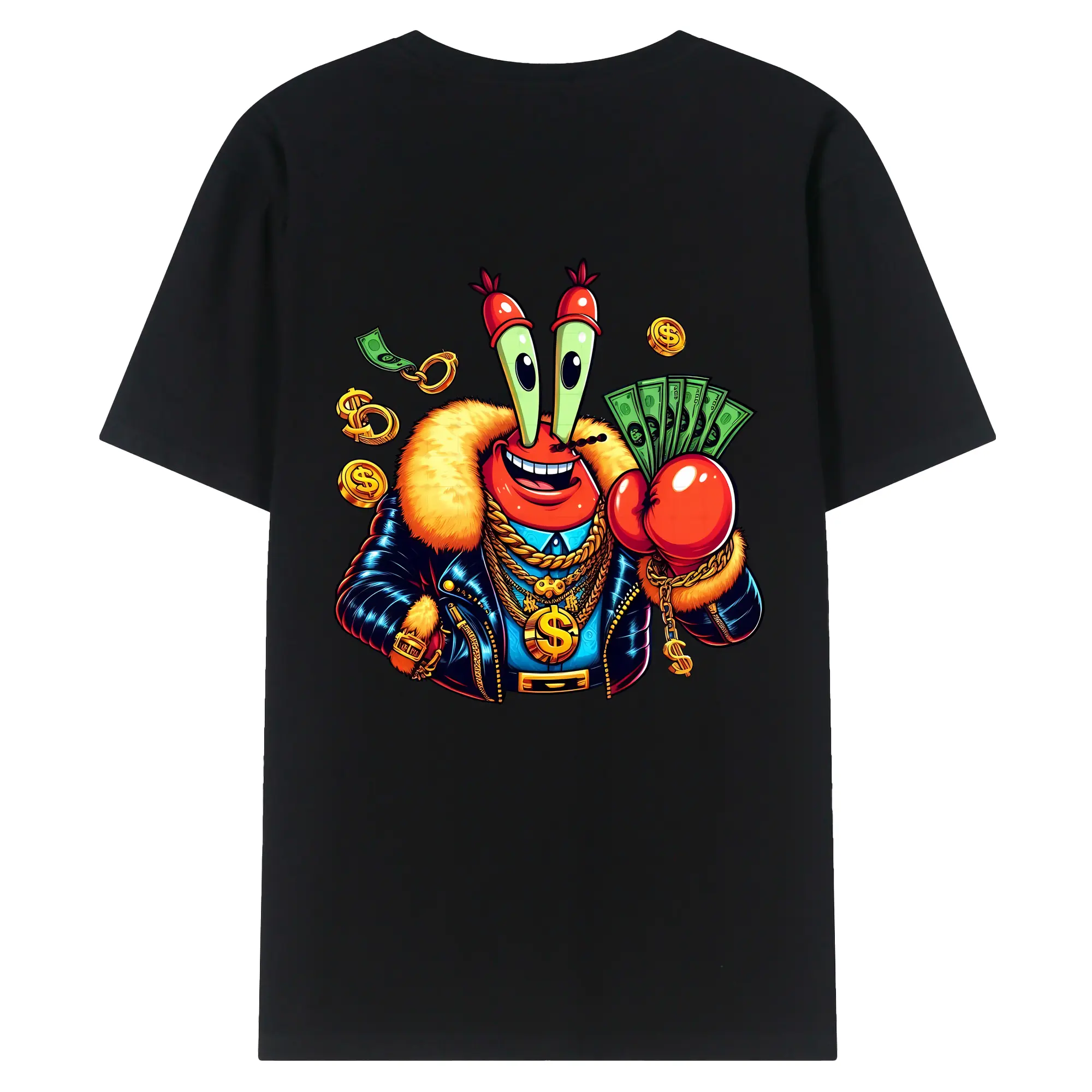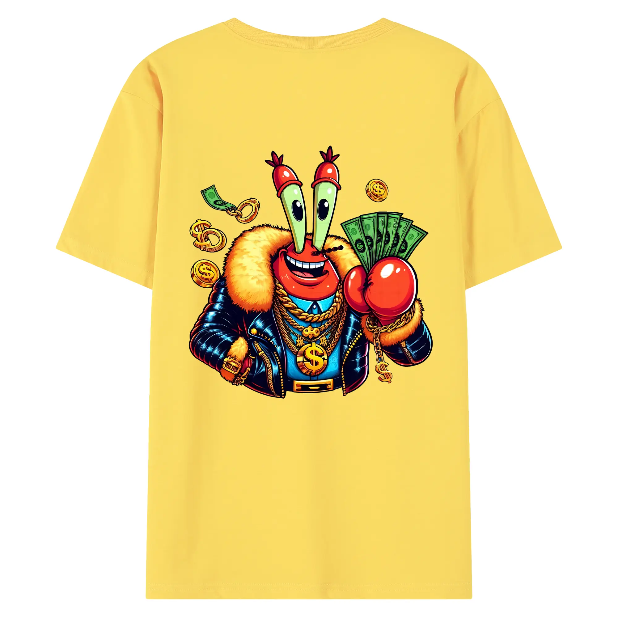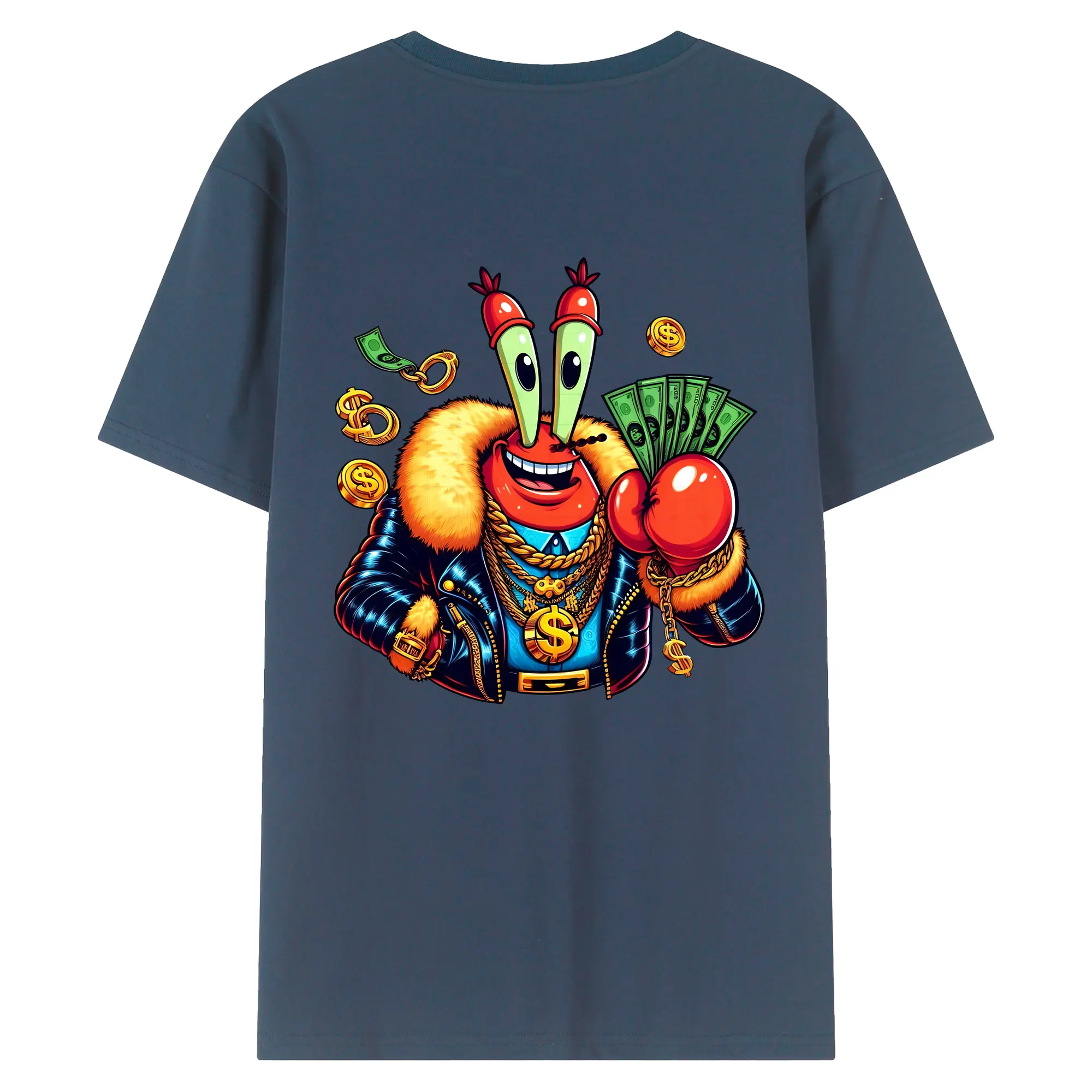 スポンジボブ グッズ ミスター・クラブ - 綿100% ヴィンテージ風 半袖Tシャツ ・ 背面プリント ・ 柔らか肌触り ・ 通気性 快適 ・ スポーツ カジュアル 外出用