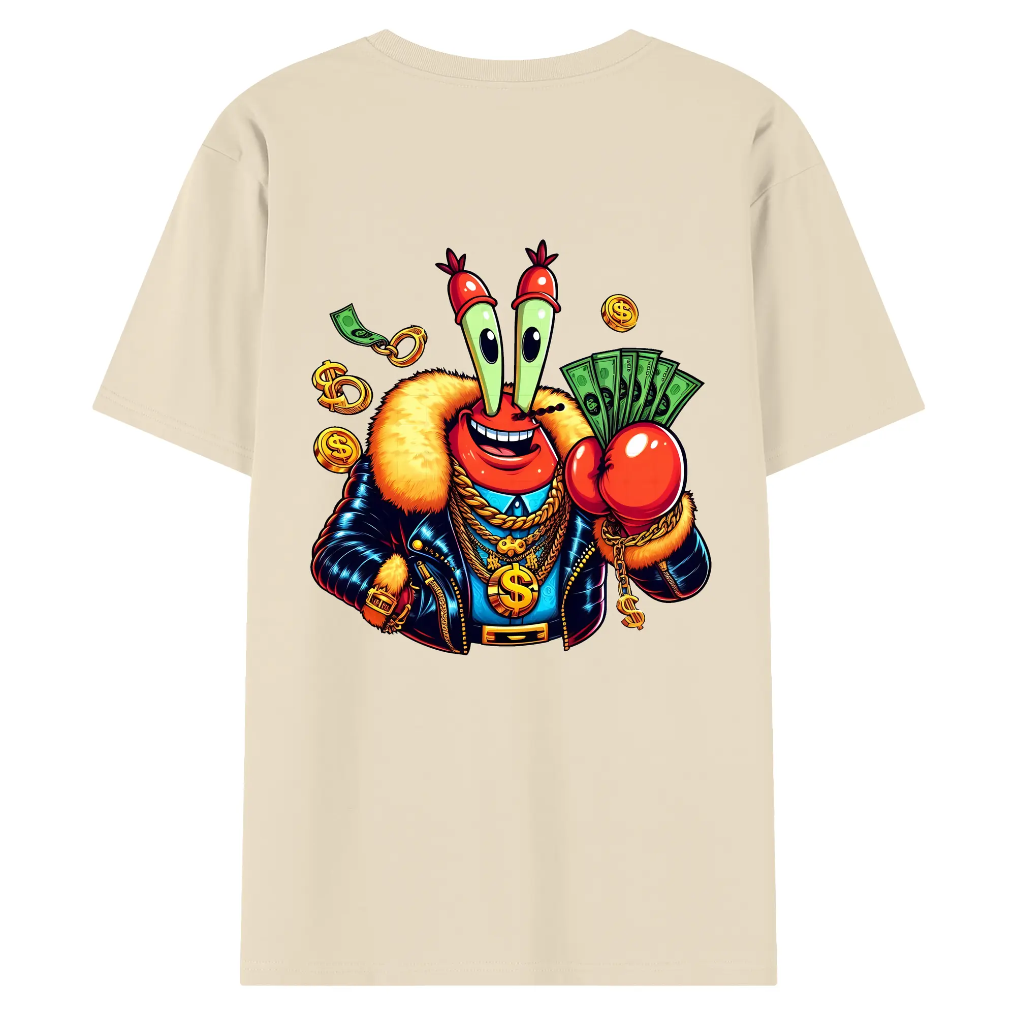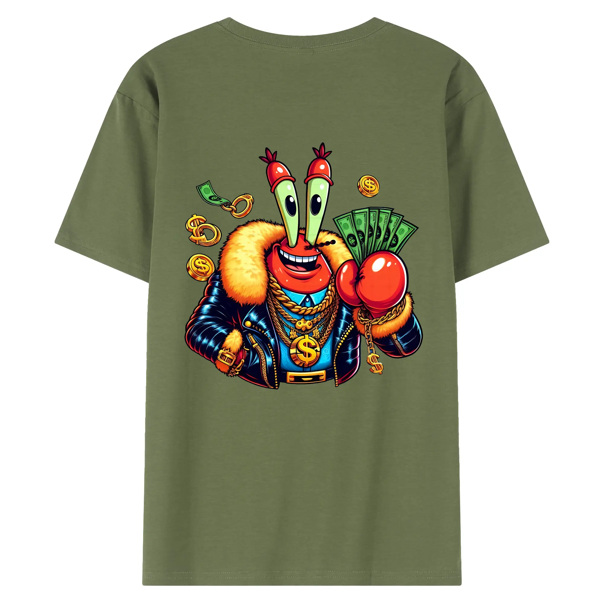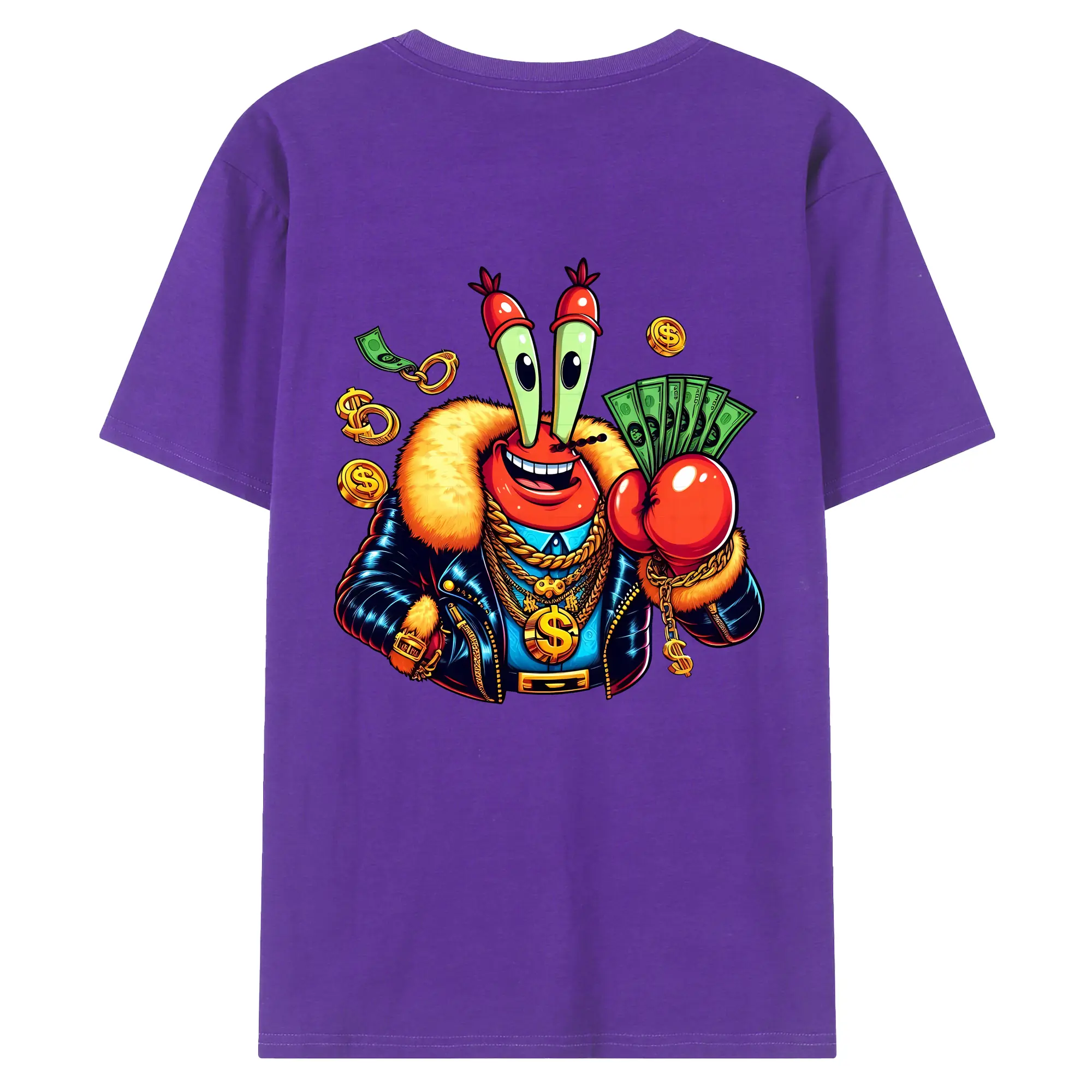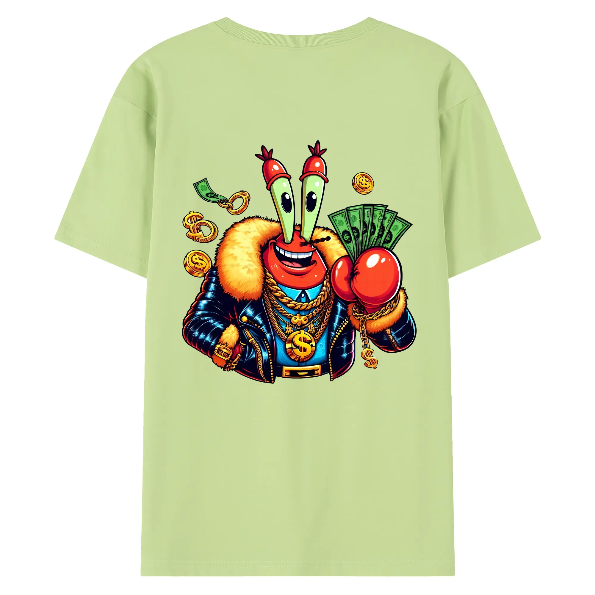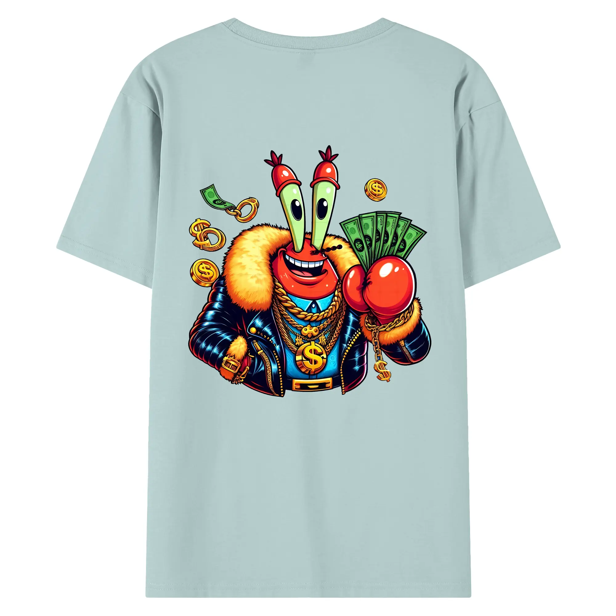 スポンジボブ グッズ ミスター・クラブ - 綿100% ヴィンテージ風 半袖Tシャツ ・ 背面プリント ・ 柔らか肌触り ・ 通気性 快適 ・ スポーツ カジュアル 外出用