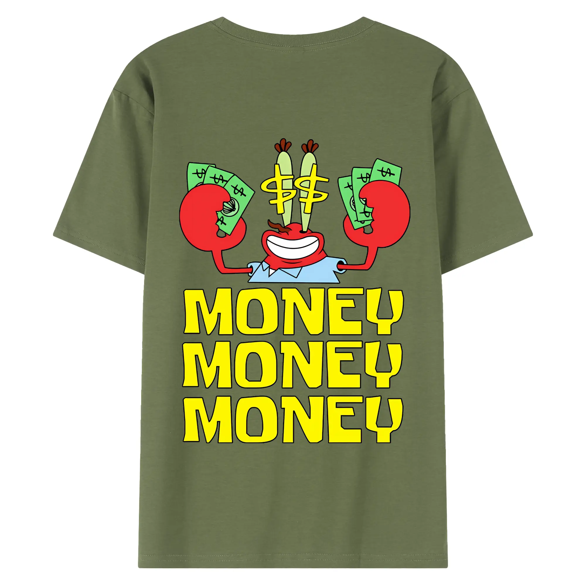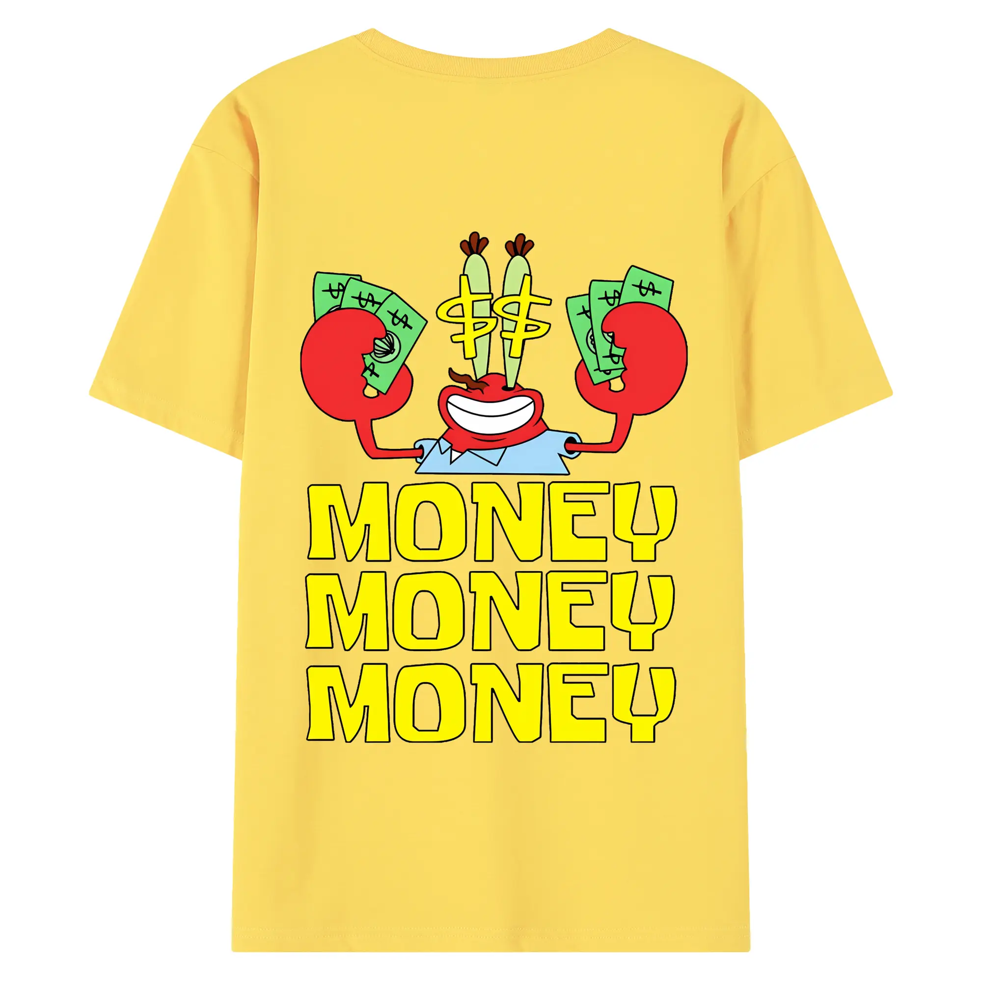 スポンジボブ グッズ ミスター・クラブ - 綿100% ヴィンテージ風 半袖Tシャツ ・ 背面プリント ・ 柔らか肌触り ・ 通気性 快適 ・ スポーツ カジュアル 外出用