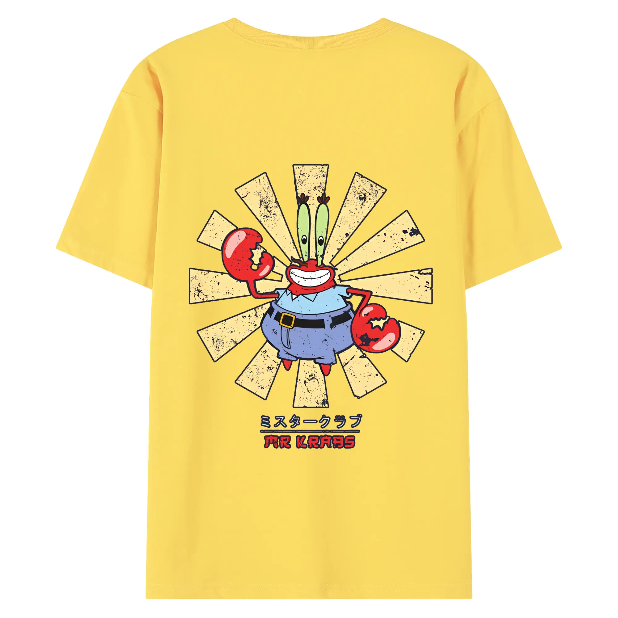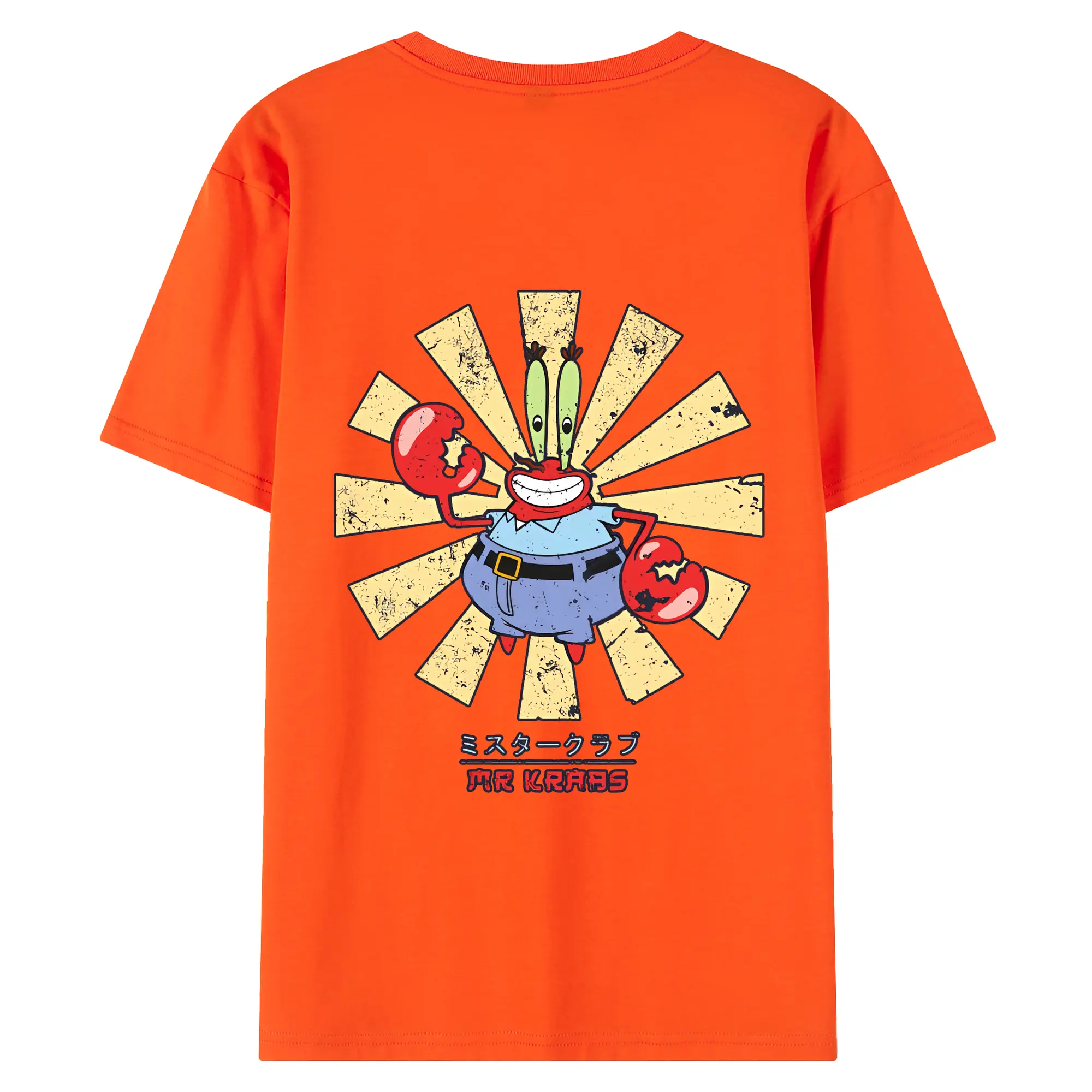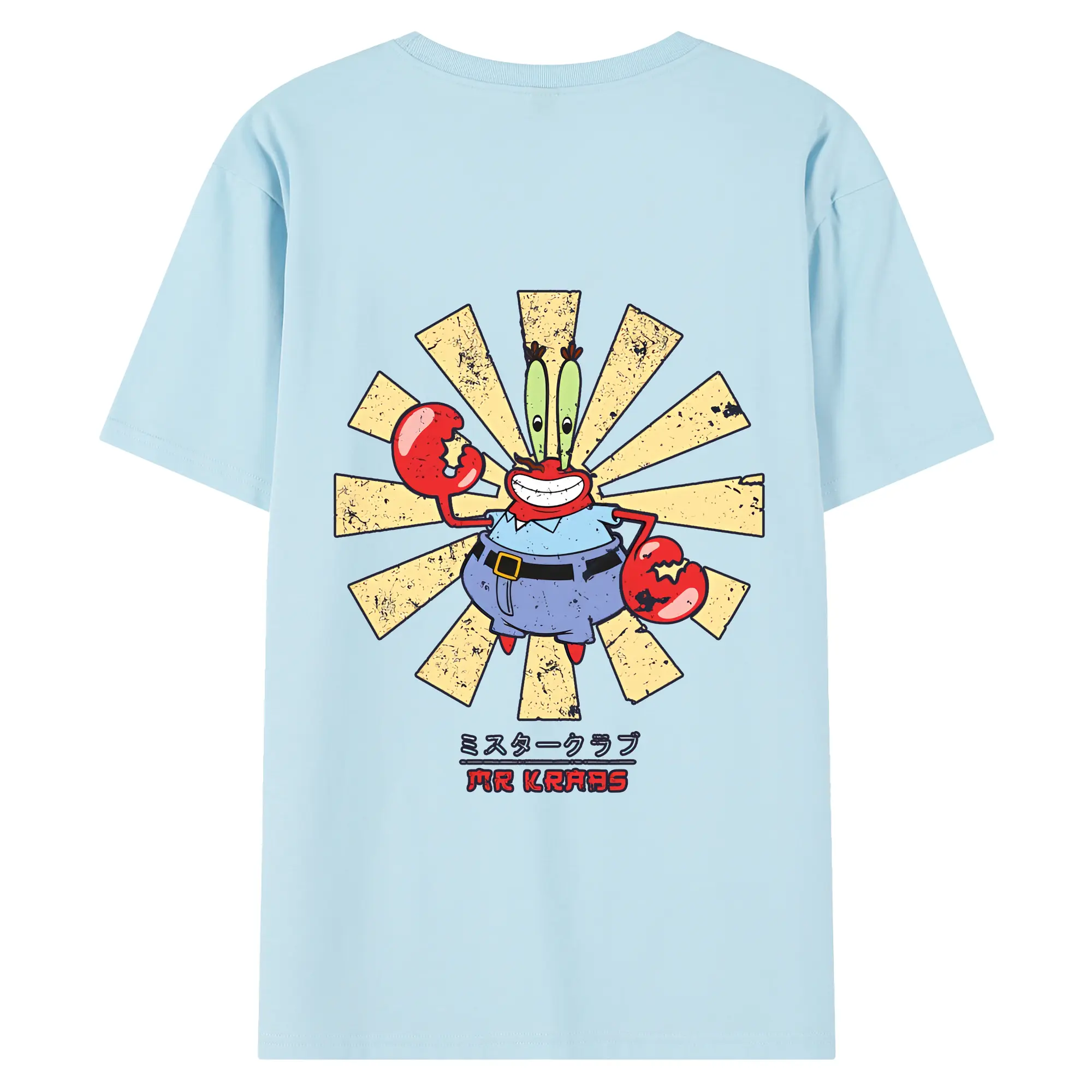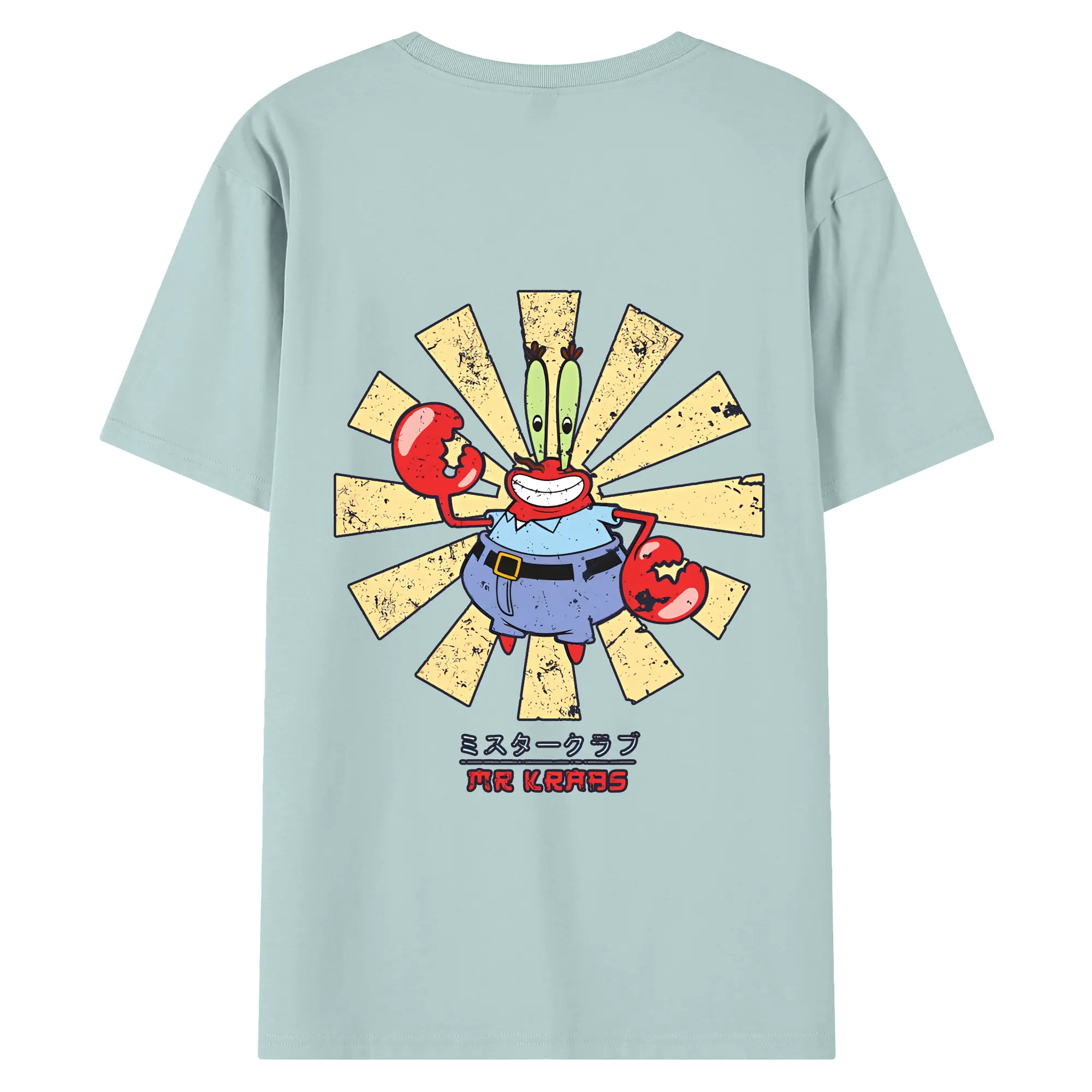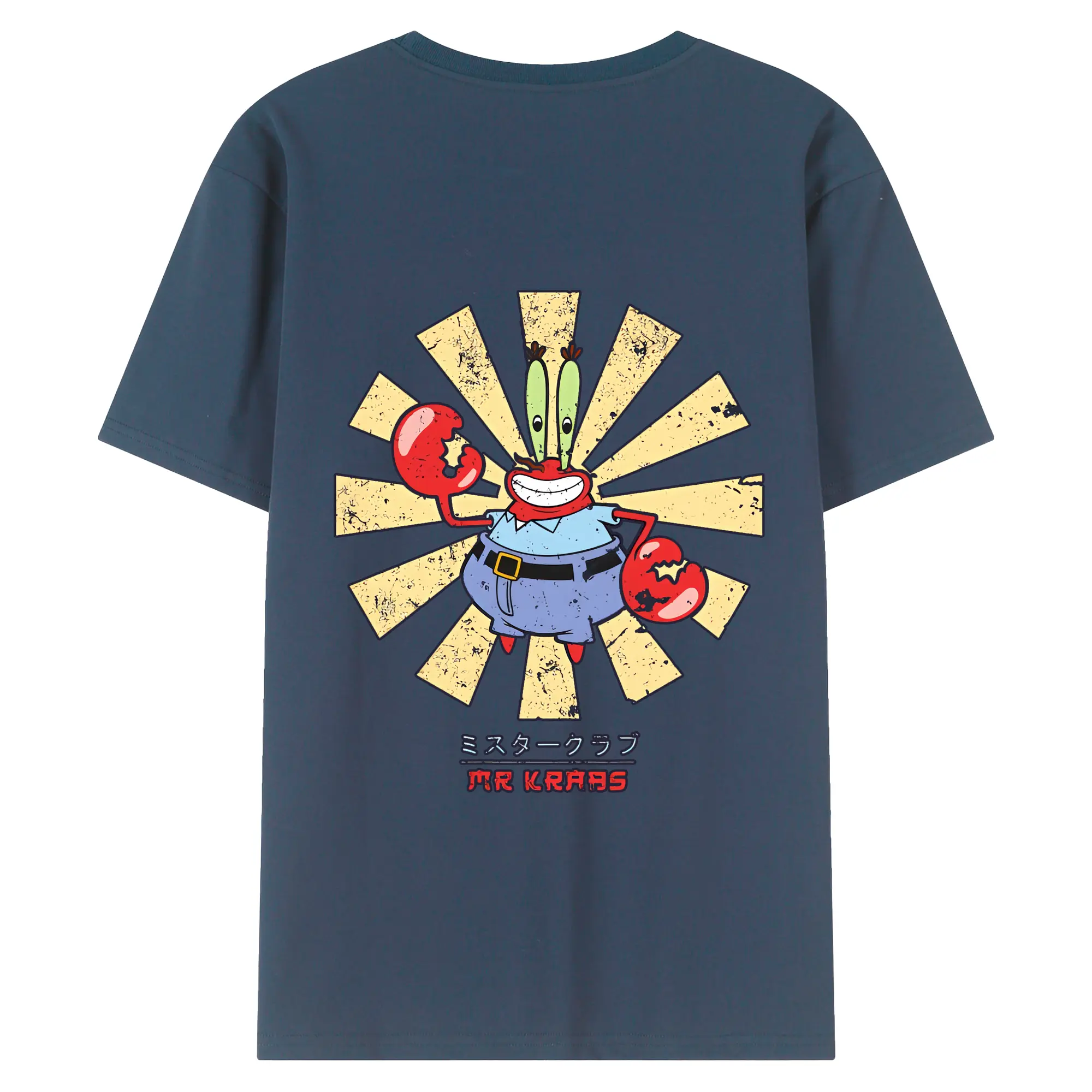 スポンジボブ グッズ ミスター・クラブ - 綿100% ヴィンテージ風 半袖Tシャツ ・ 背面プリント ・ 柔らか肌触り ・ 通気性 快適 ・ スポーツ カジュアル 外出用