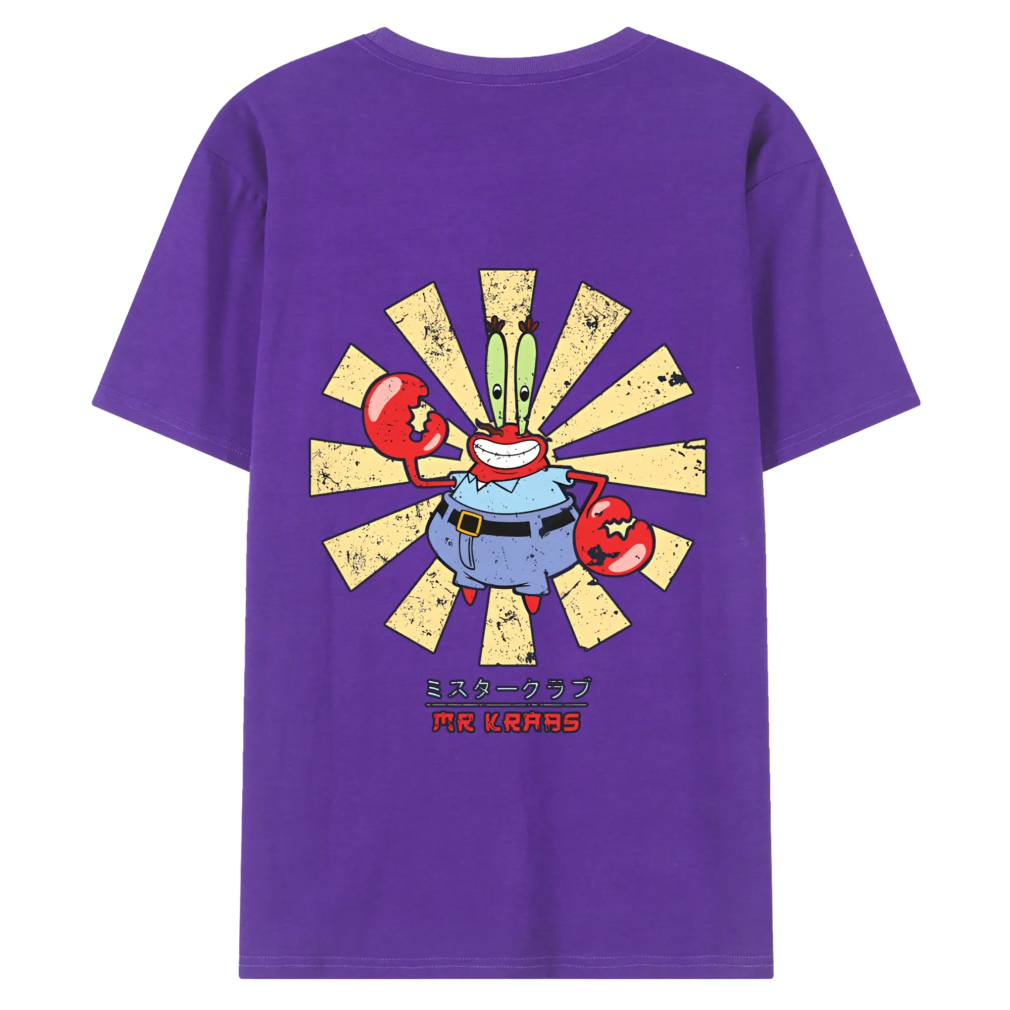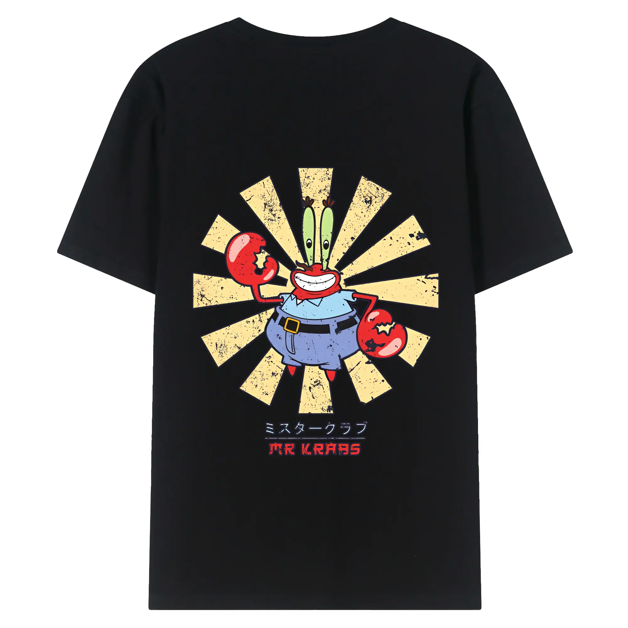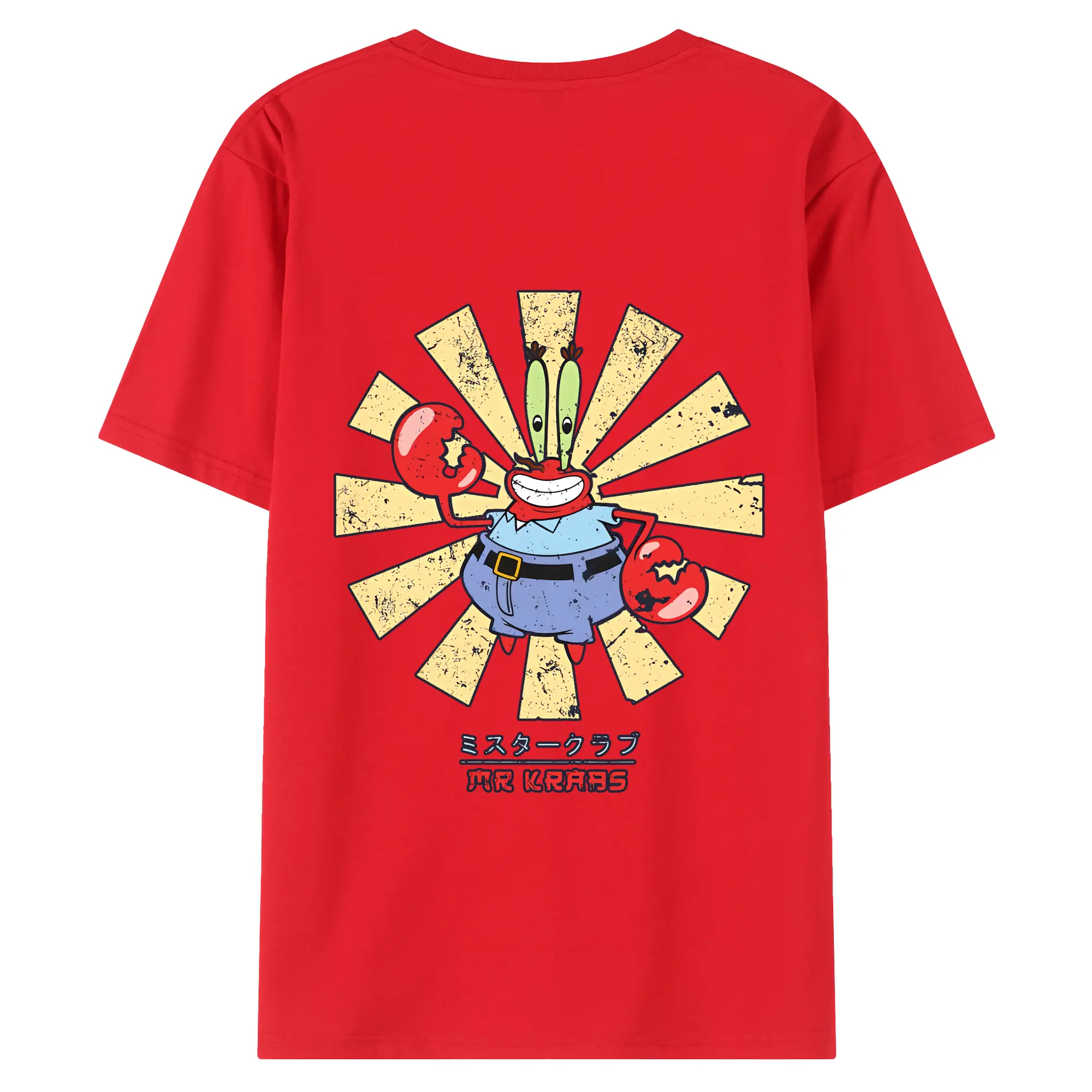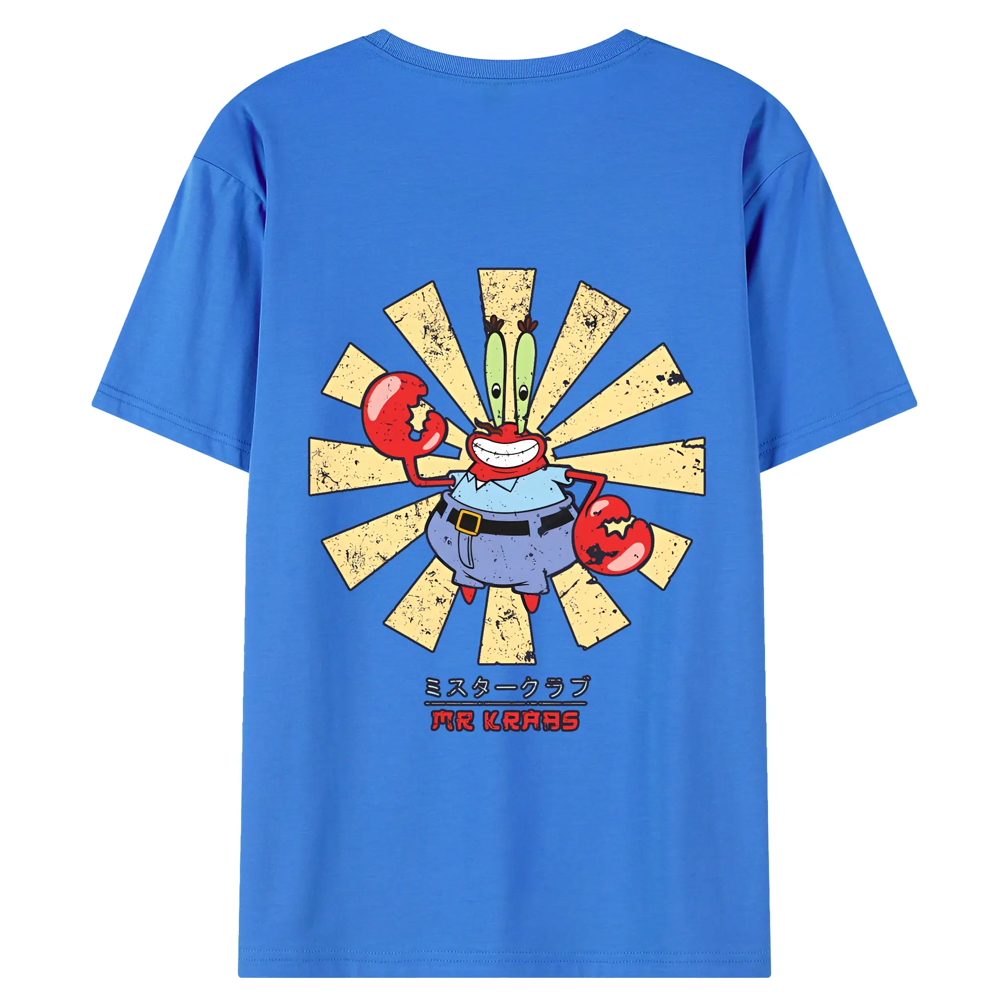スポンジボブ グッズ ミスター・クラブ - 綿100% ヴィンテージ風 半袖Tシャツ ・ 背面プリント ・ 柔らか肌触り ・ 通気性 快適 ・ スポーツ カジュアル 外出用