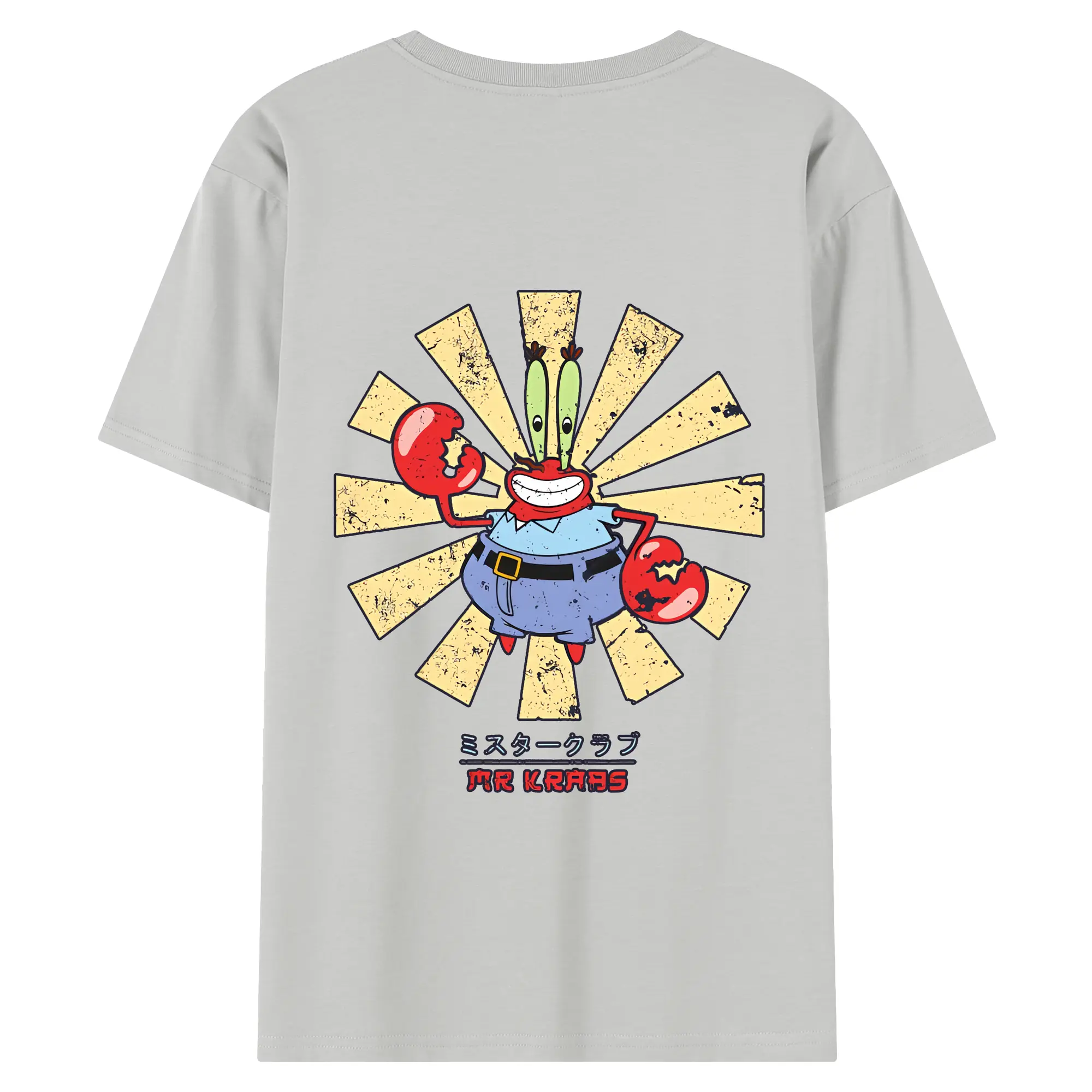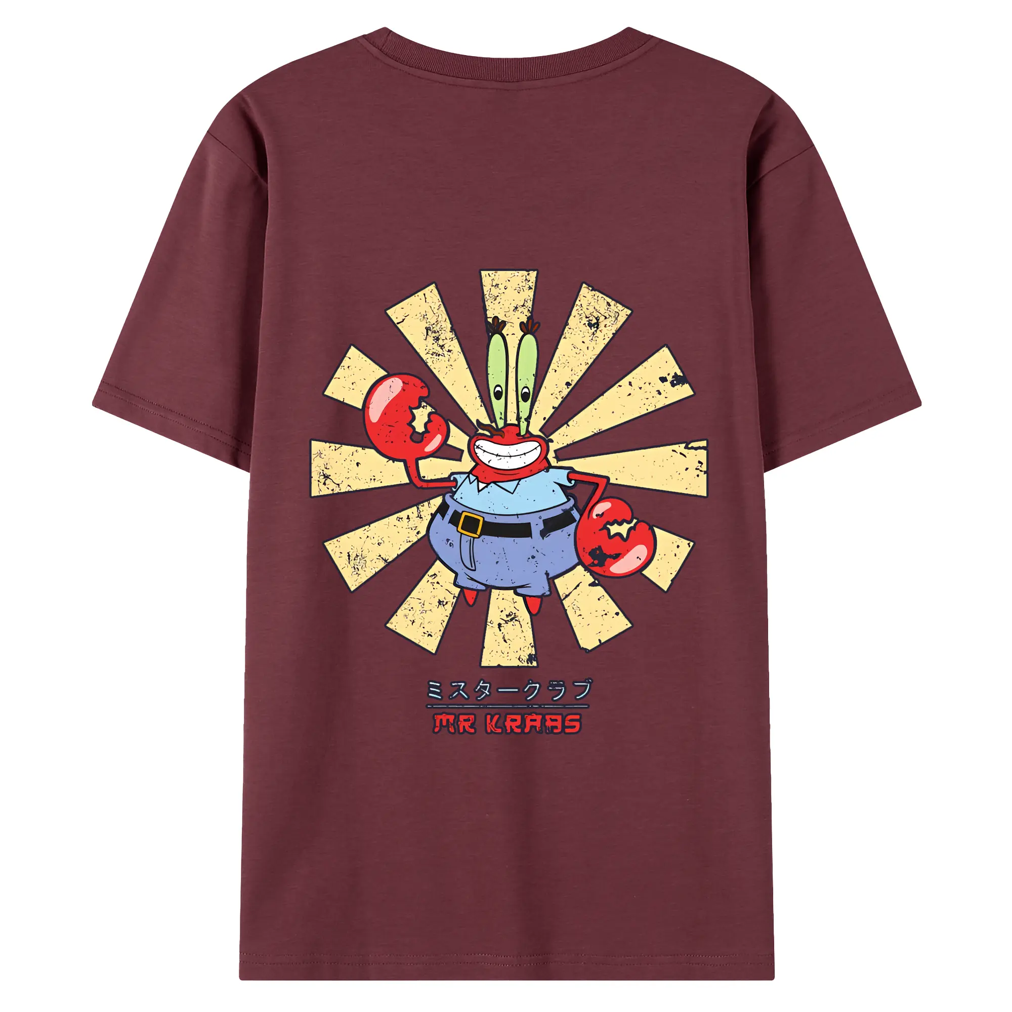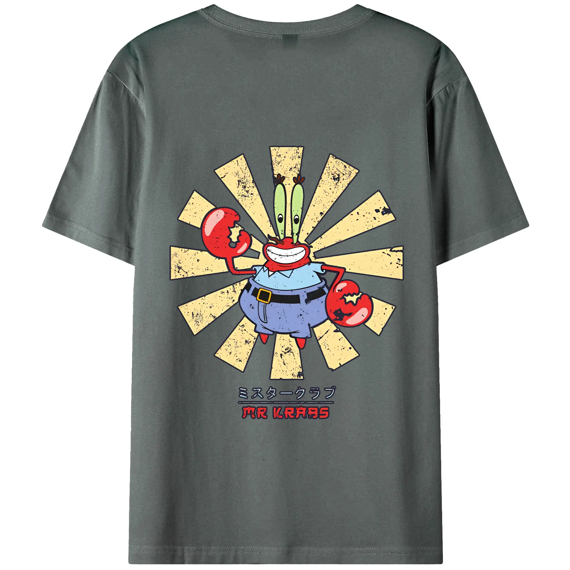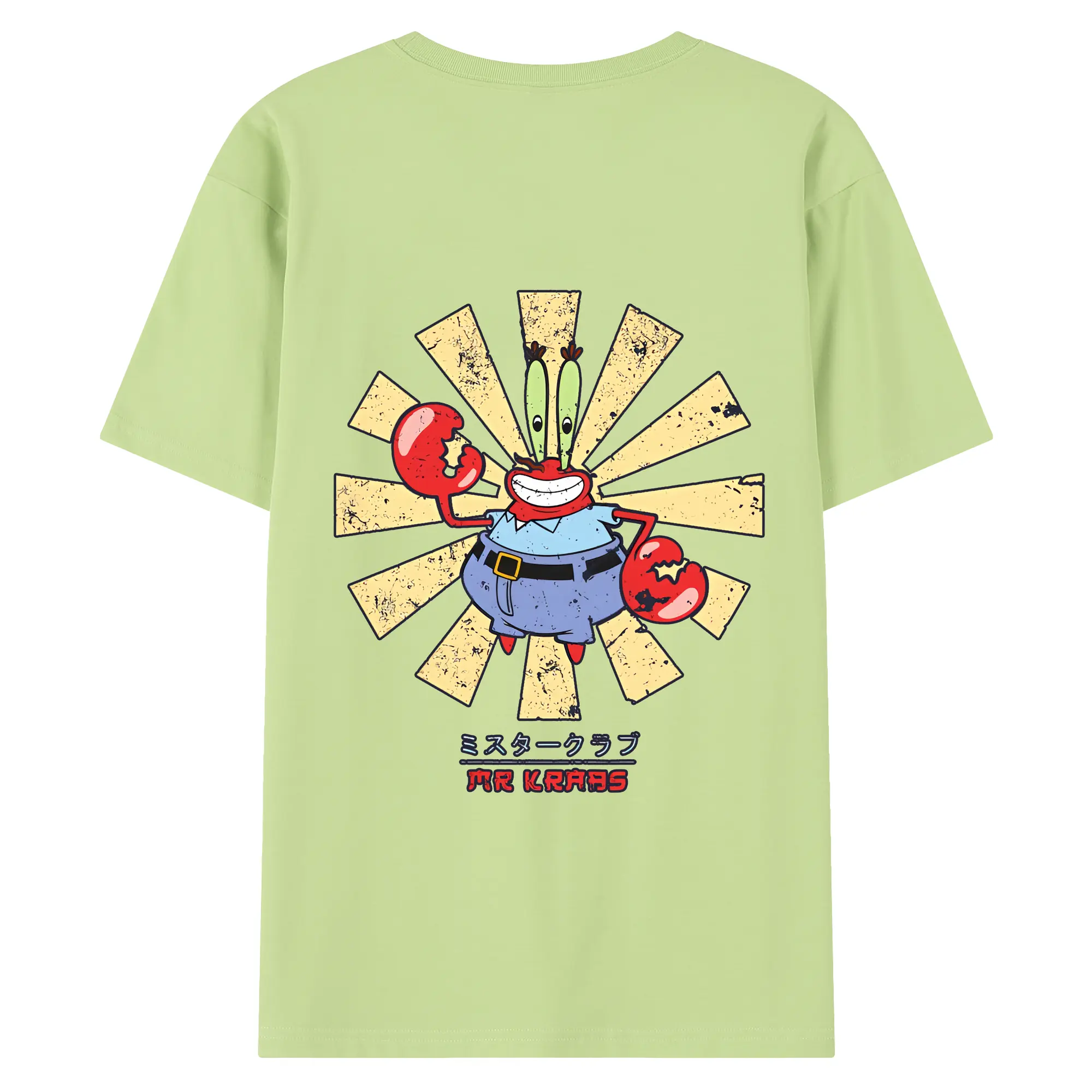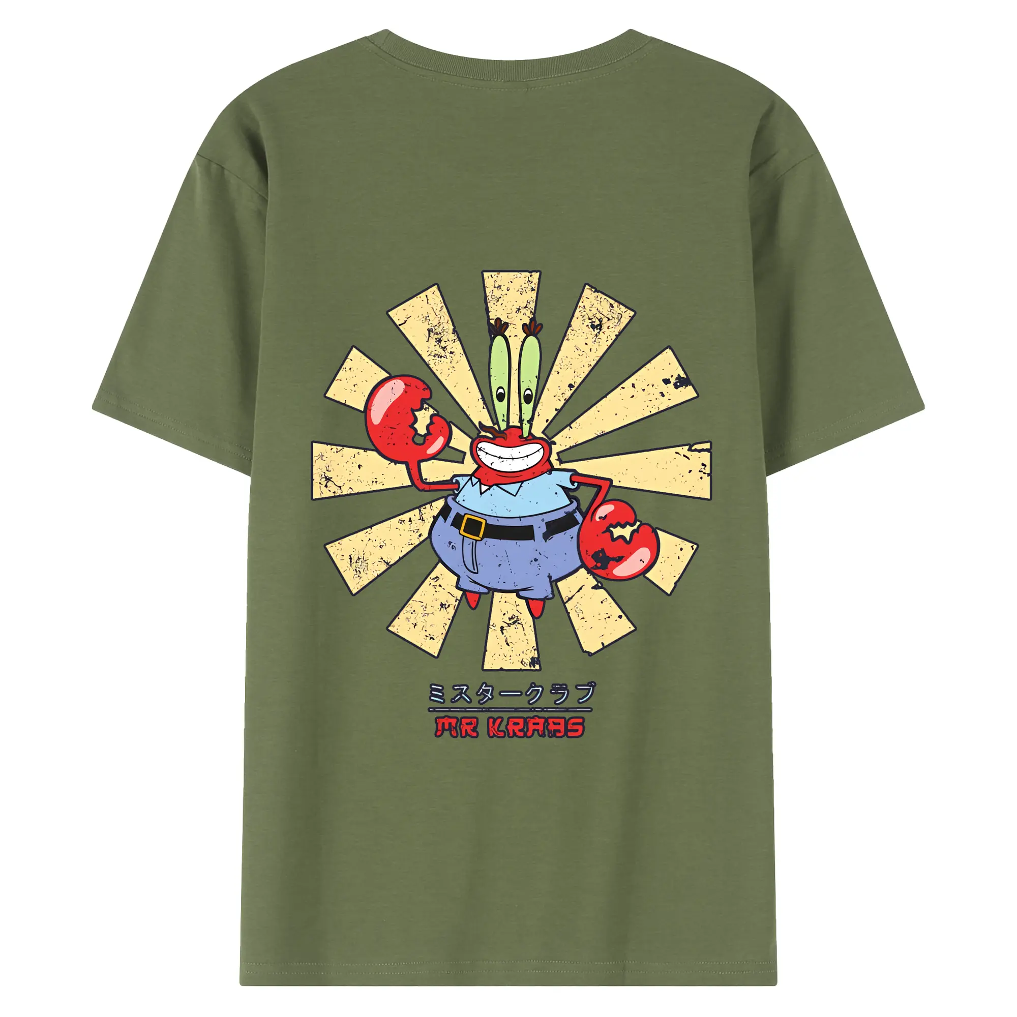 スポンジボブ グッズ ミスター・クラブ - 綿100% ヴィンテージ風 半袖Tシャツ ・ 背面プリント ・ 柔らか肌触り ・ 通気性 快適 ・ スポーツ カジュアル 外出用