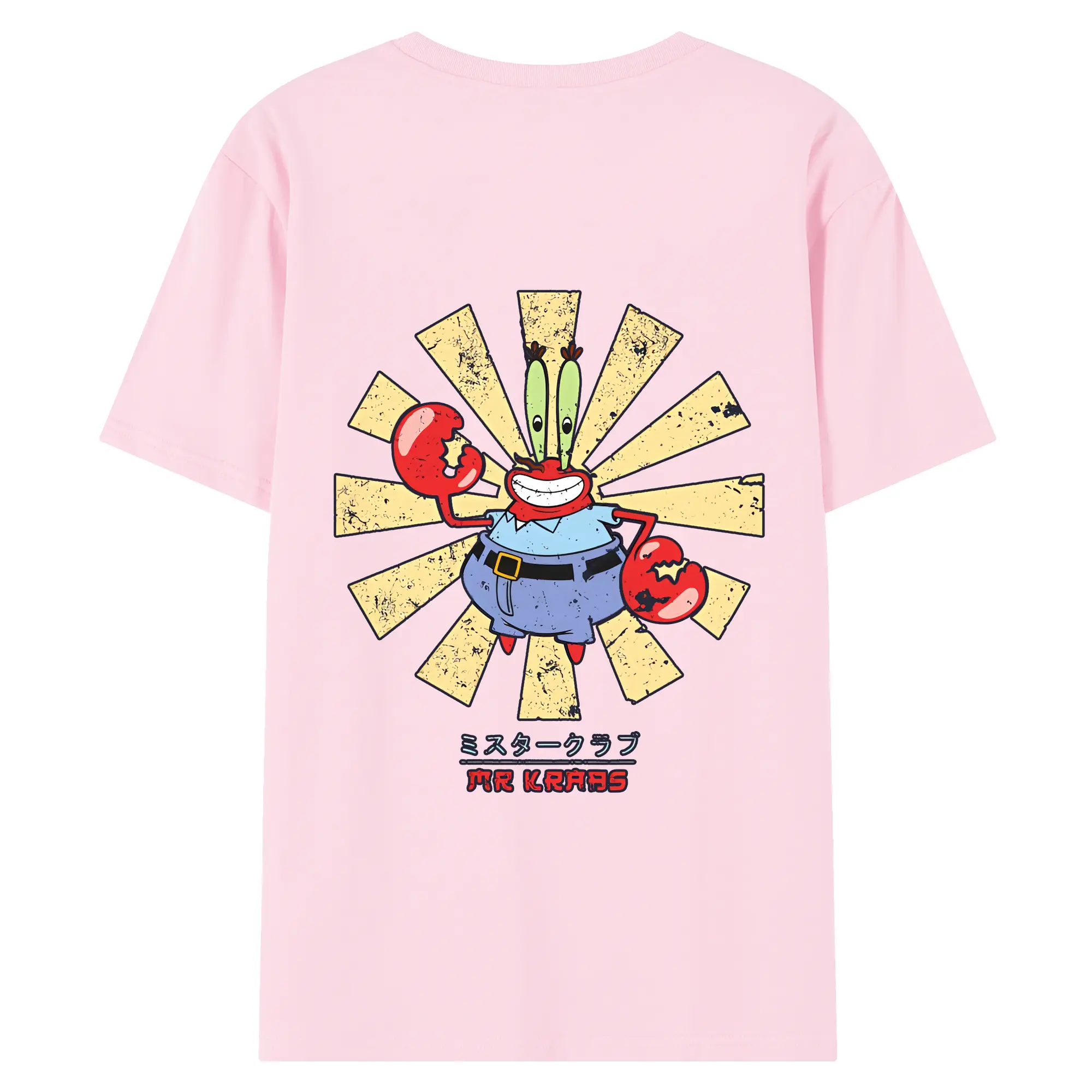 スポンジボブ グッズ ミスター・クラブ - 綿100% ヴィンテージ風 半袖Tシャツ ・ フロントプリント ・ 柔らか肌触り ・ 通気性 快適 ・ スポーツ カジュアル 外出用