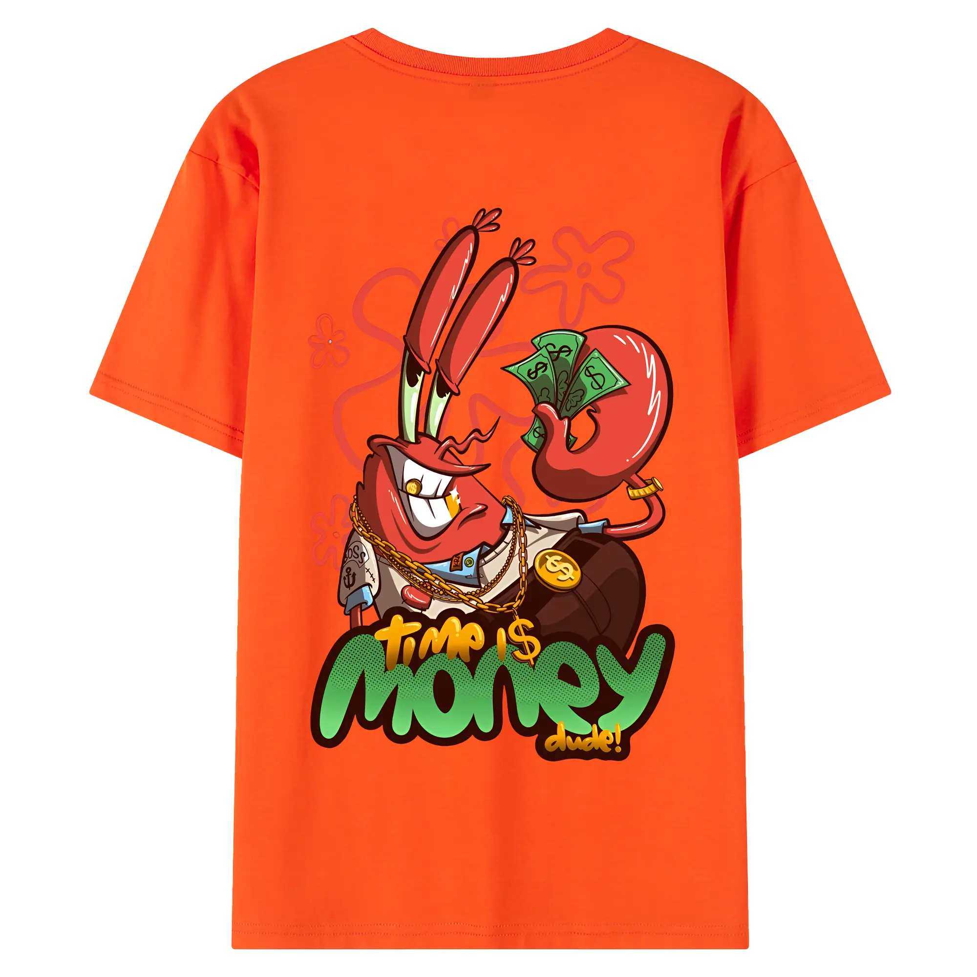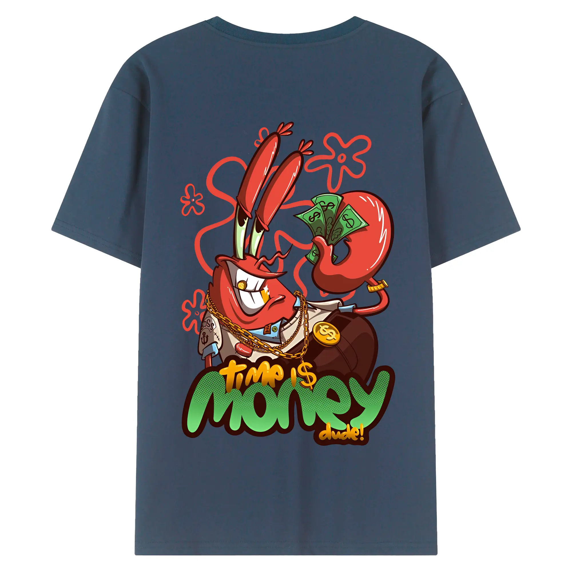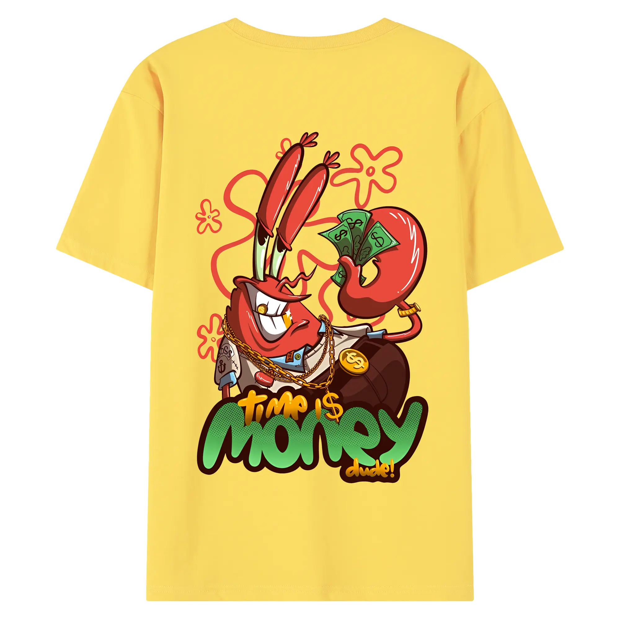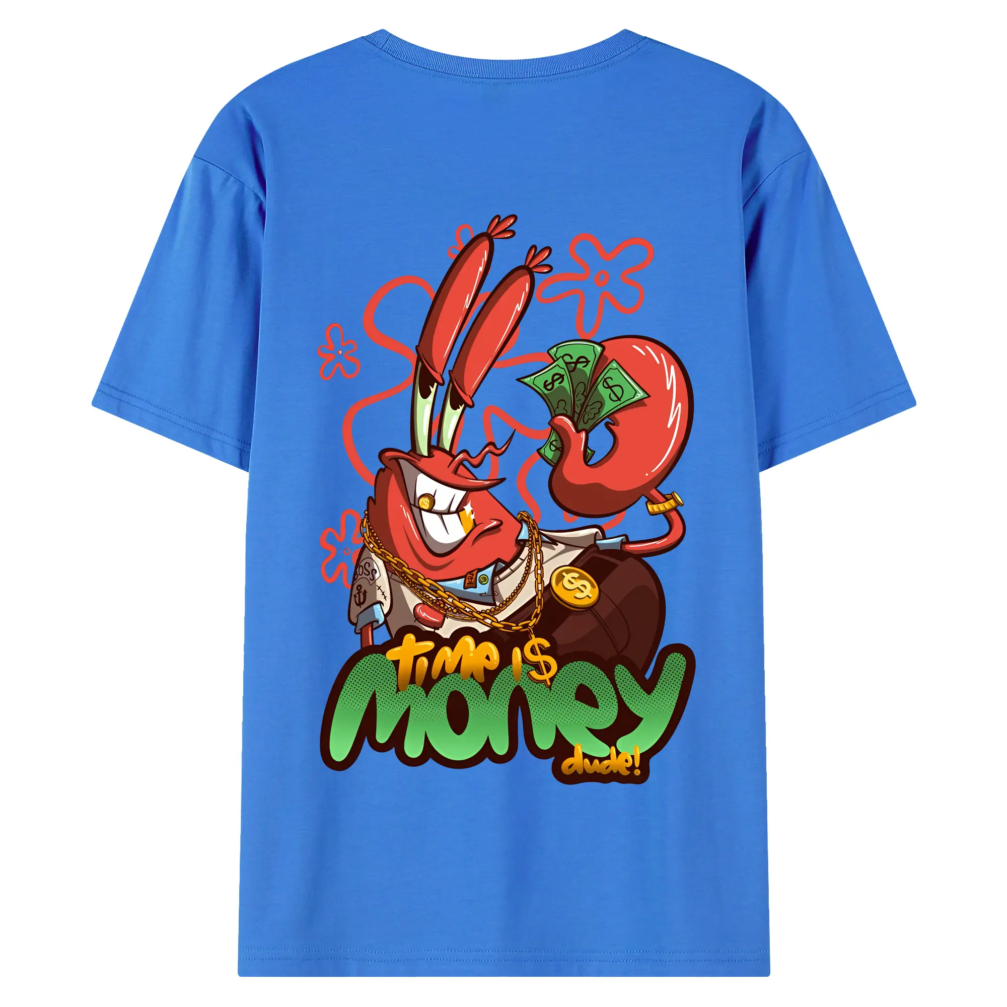スポンジボブ グッズ ミスター・クラブ - 綿100% ヴィンテージ風 半袖Tシャツ ・ 背面プリント ・ 柔らか肌触り ・ 通気性 快適 ・ スポーツ カジュアル 外出用
