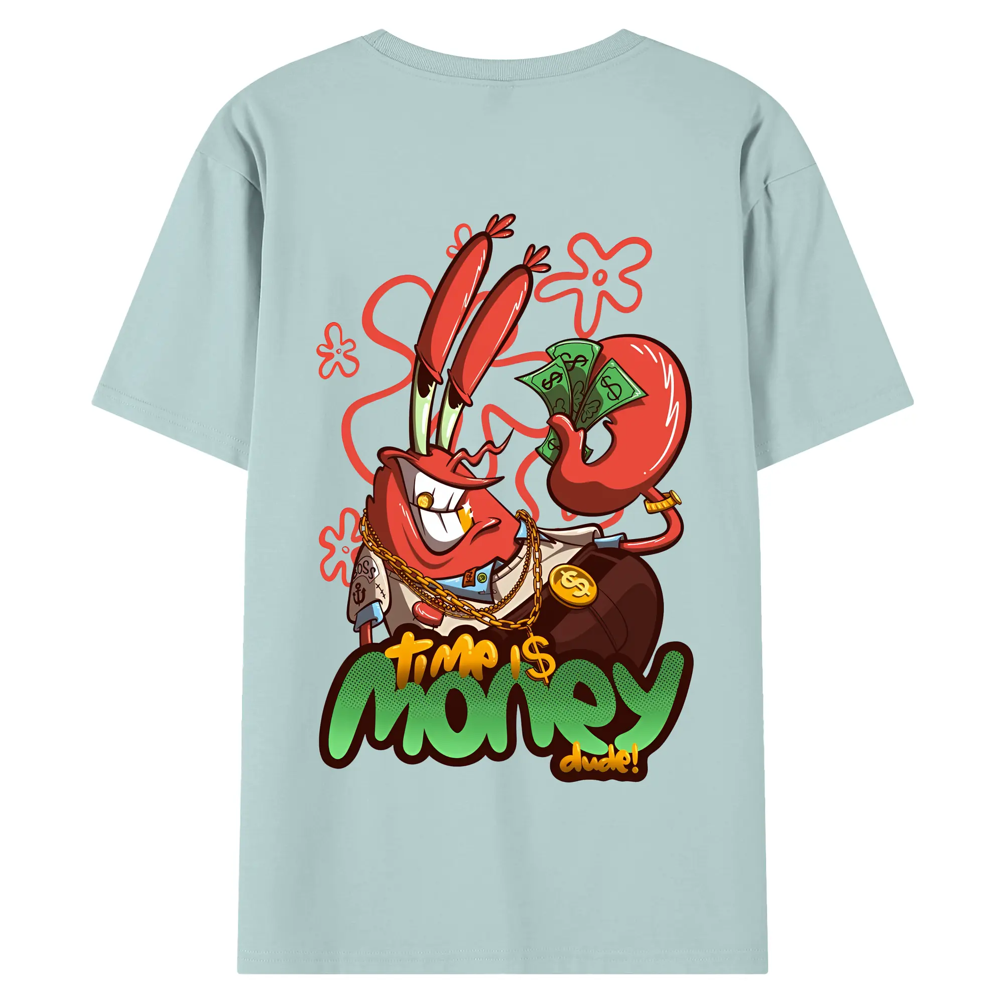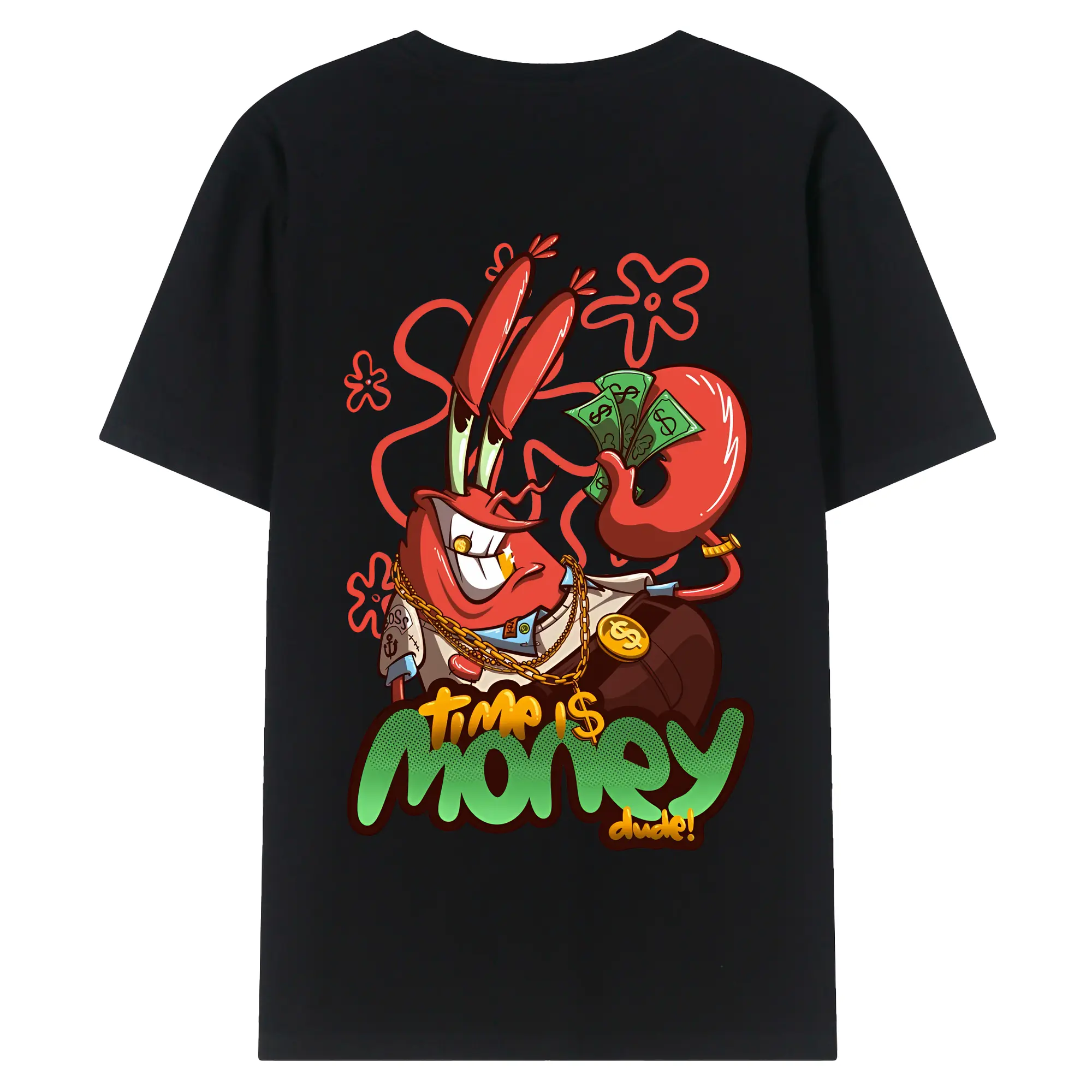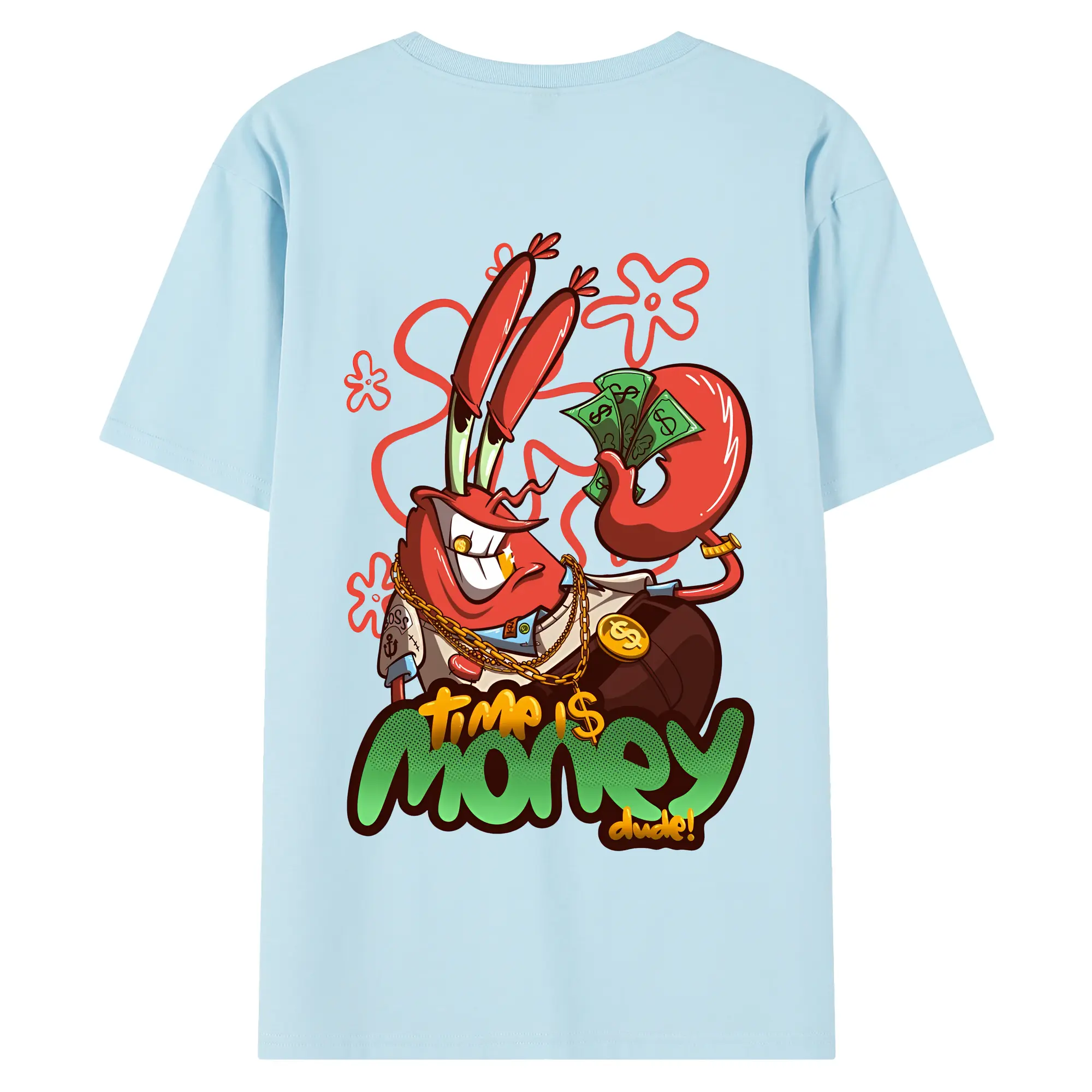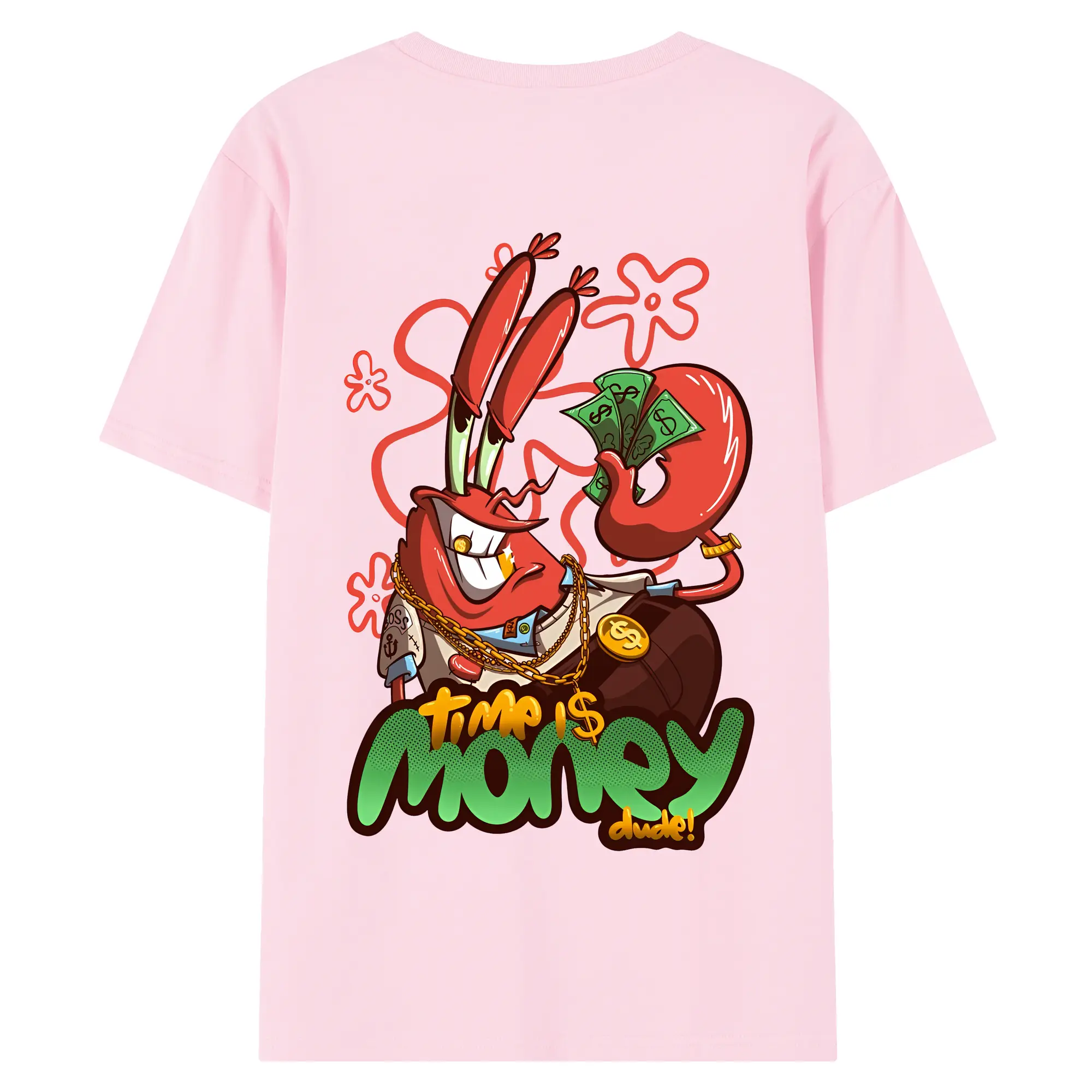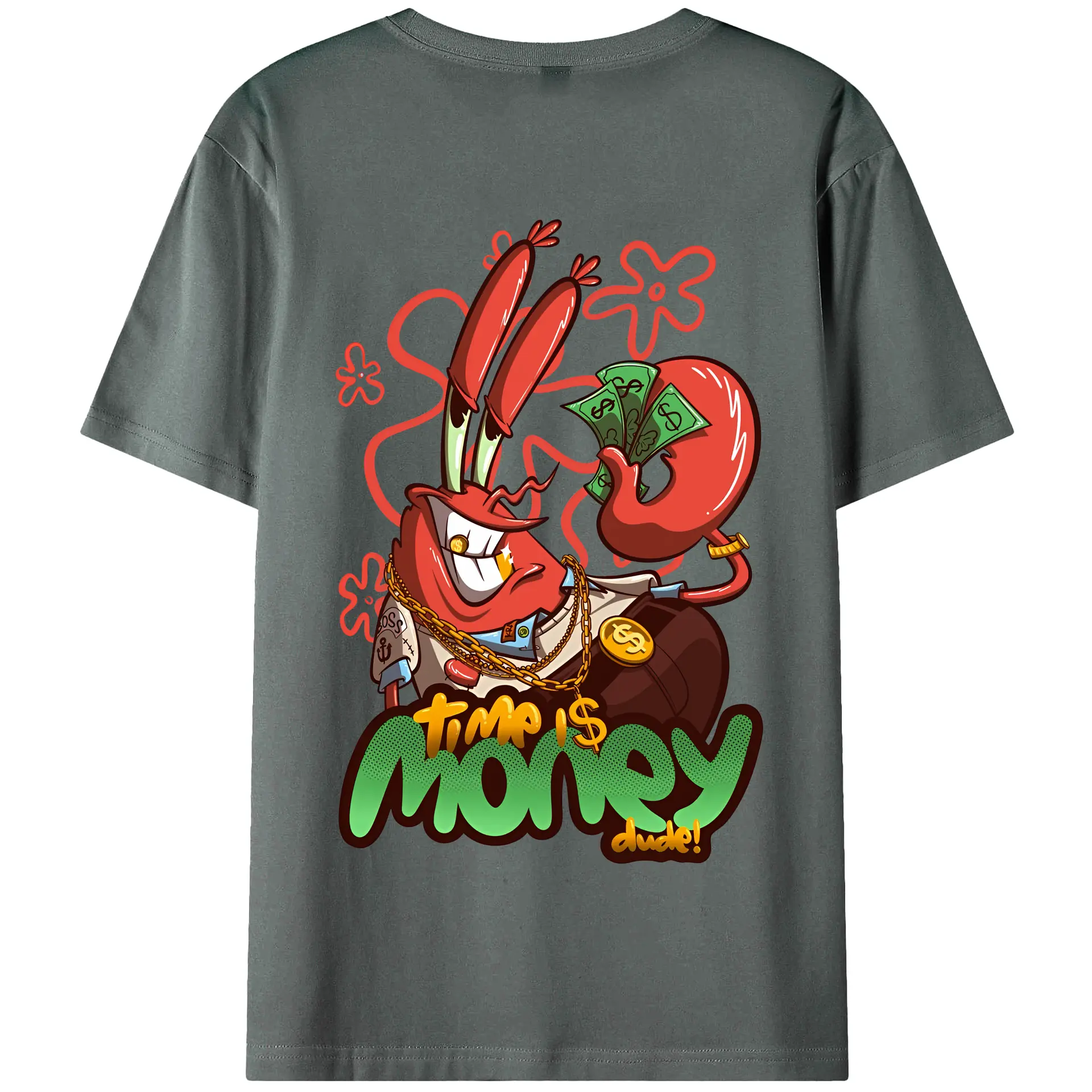 スポンジボブ グッズ ミスター・クラブ - 綿100% ヴィンテージ風 半袖Tシャツ ・ 背面プリント ・ 柔らか肌触り ・ 通気性 快適 ・ スポーツ カジュアル 外出用