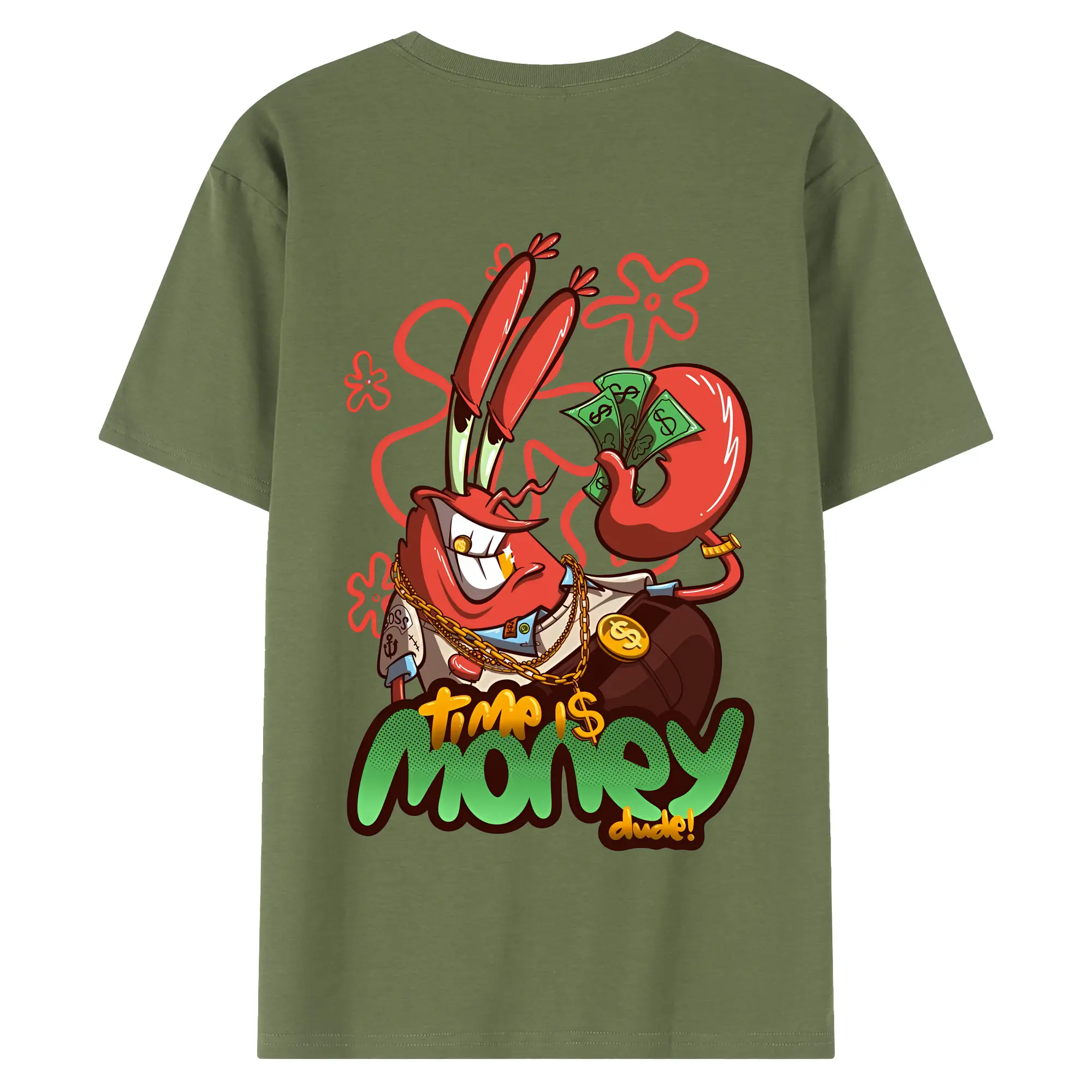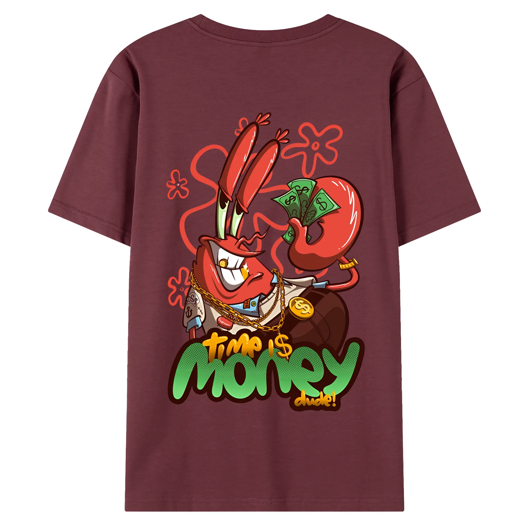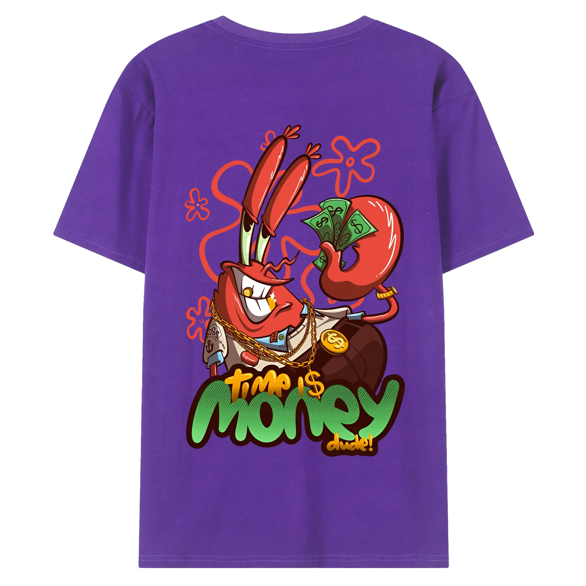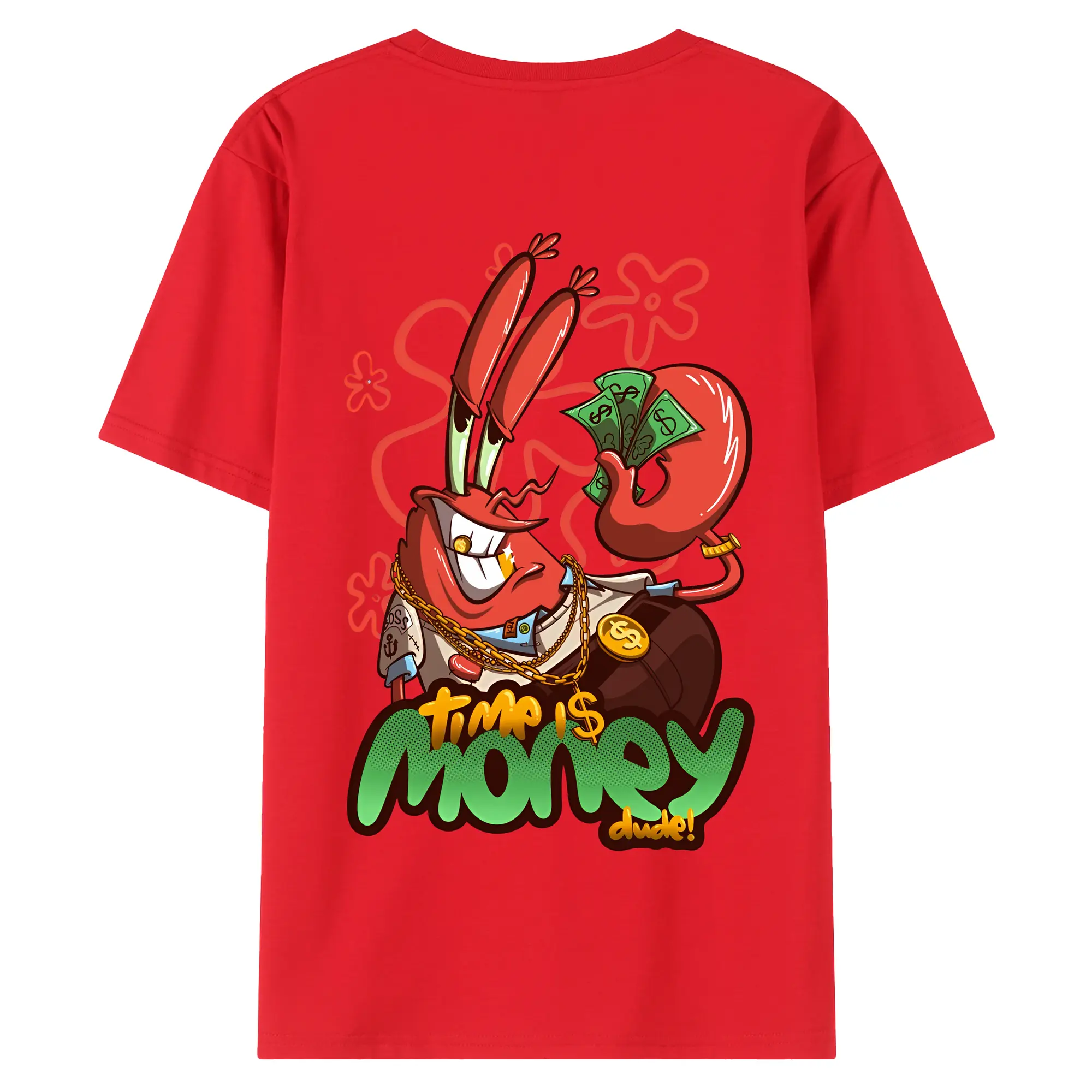 スポンジボブ グッズ ミスター・クラブ - 綿100% ヴィンテージ風 半袖Tシャツ ・ 背面プリント ・ 柔らか肌触り ・ 通気性 快適 ・ スポーツ カジュアル 外出用