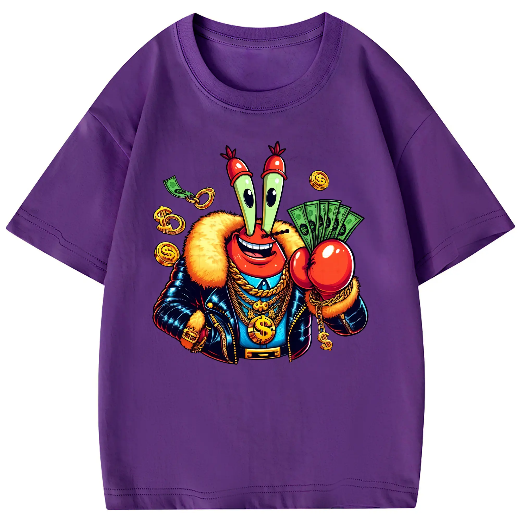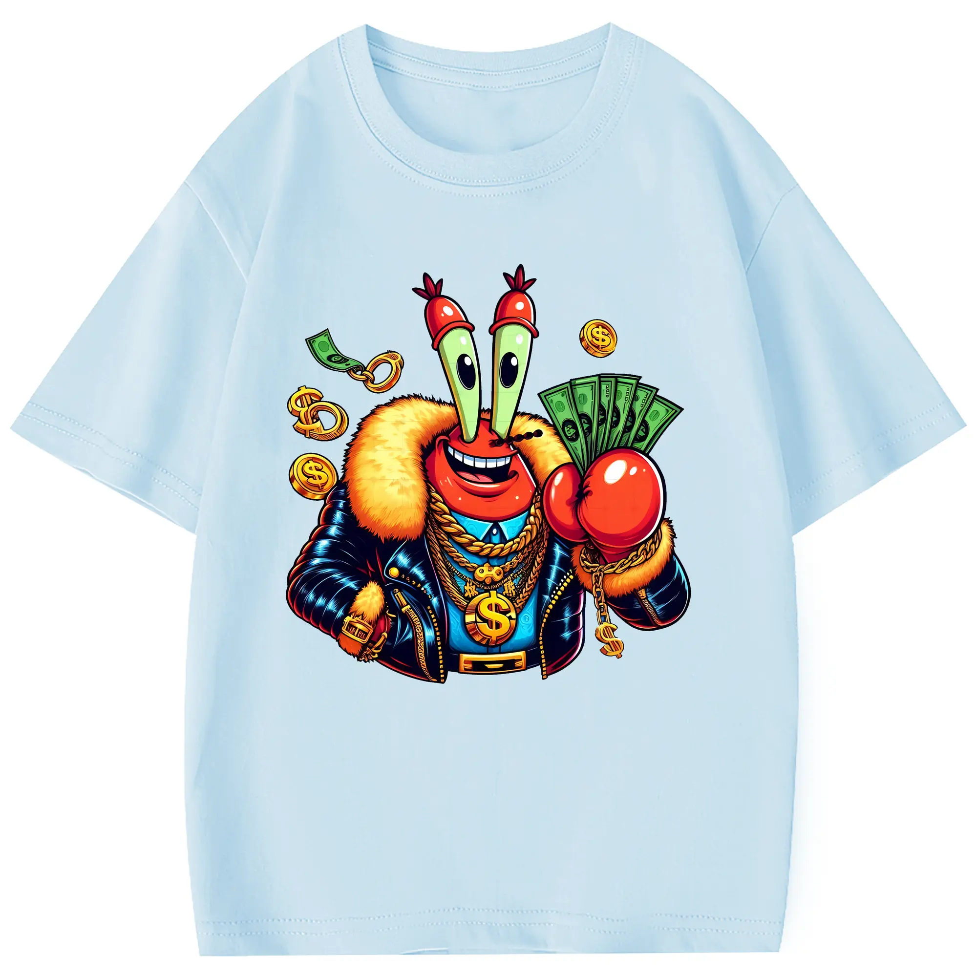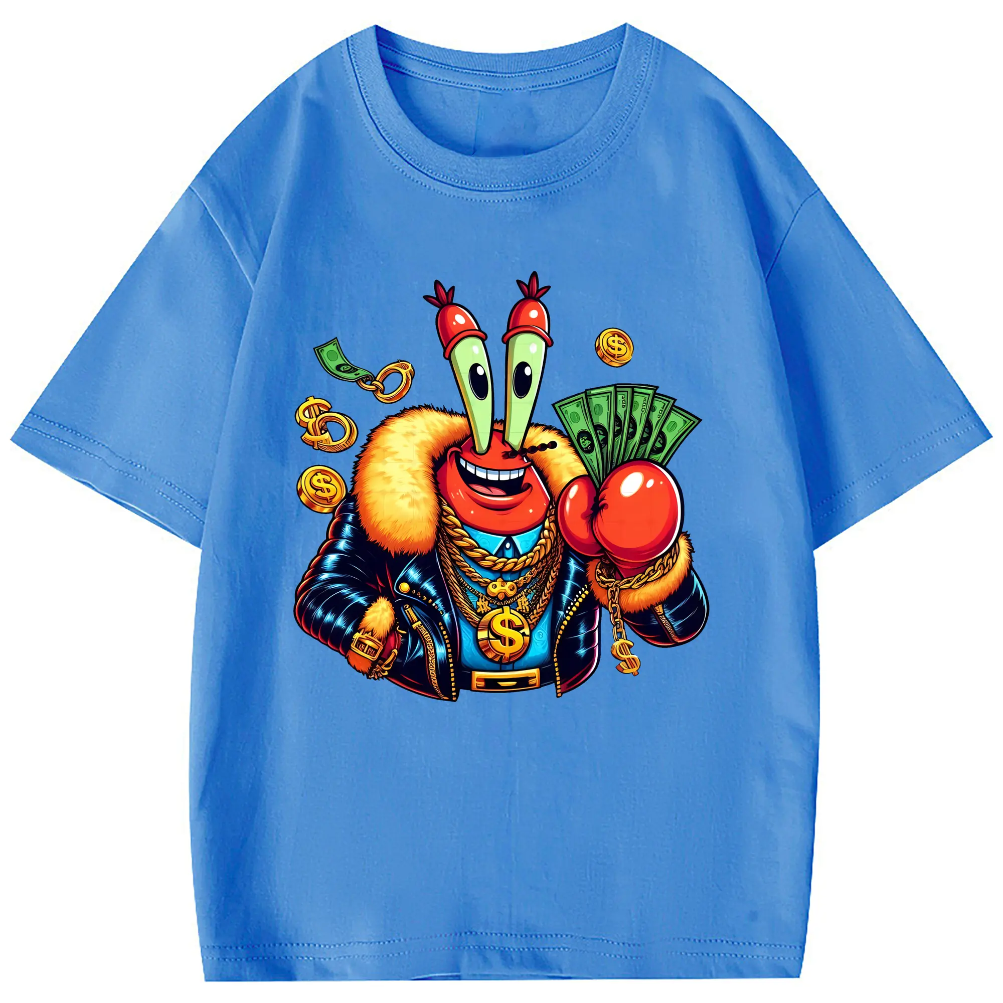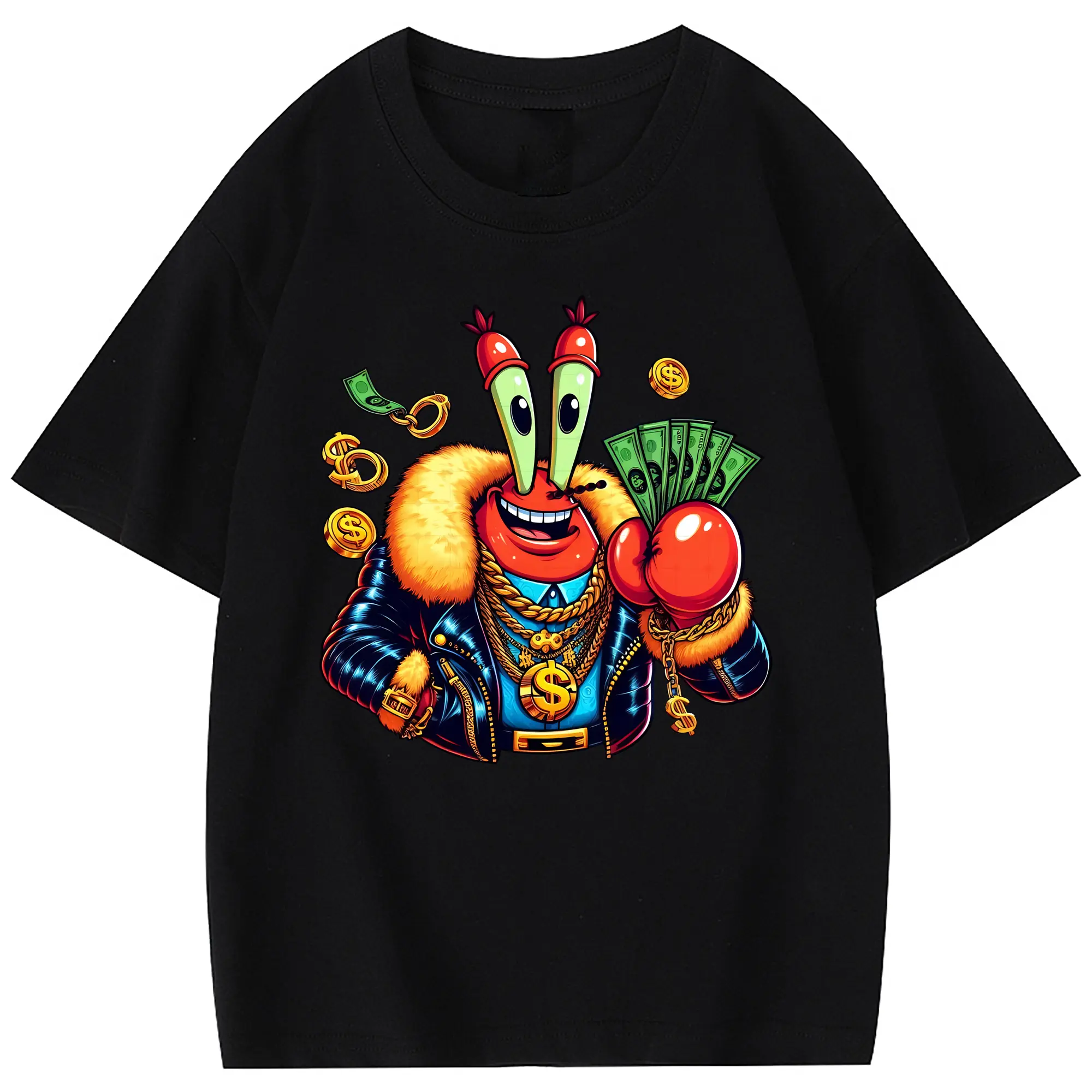 スポンジボブ グッズ ミスター・クラブ - 綿100% ヴィンテージ風 半袖Tシャツ ・ フロントプリント ・ 柔らか肌触り ・ 通気性 快適 ・ スポーツ カジュアル 外出用